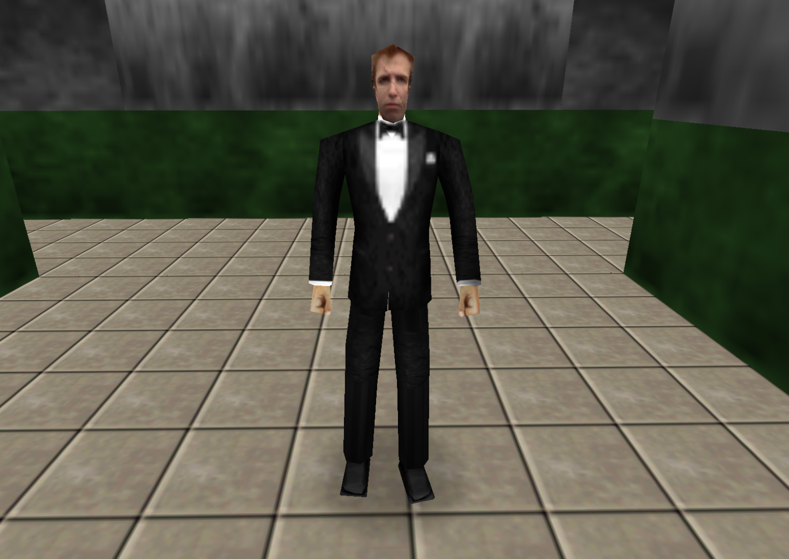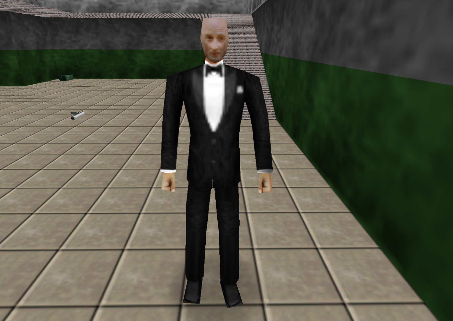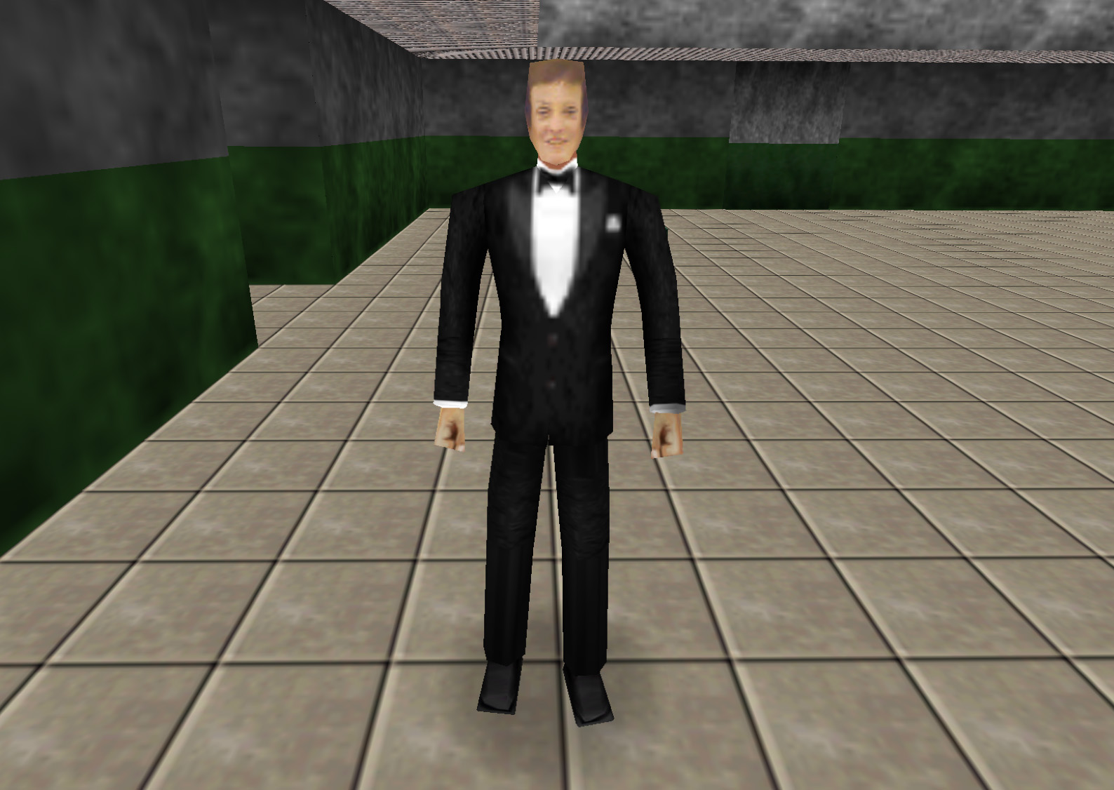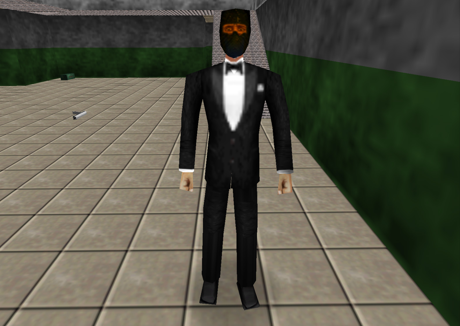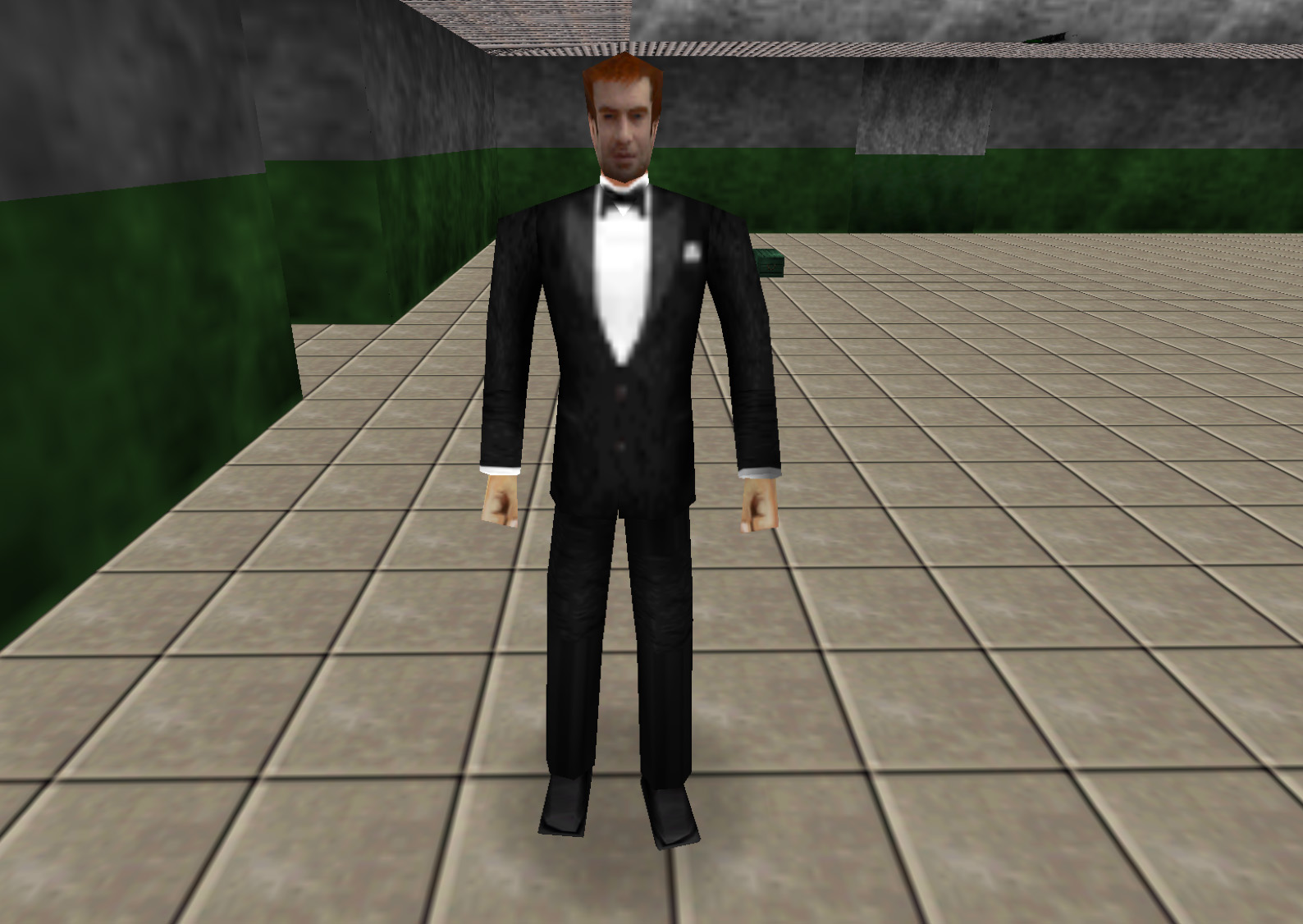Curiously, Bond uses a different face texture for the bonus levels Aztec and Egyptian. This is because Brett Jones wanted Bond to have slicked-back hair to go with his formal outfit. (Source: GoldenEye 007 by Alyse Knorr, p. 58)