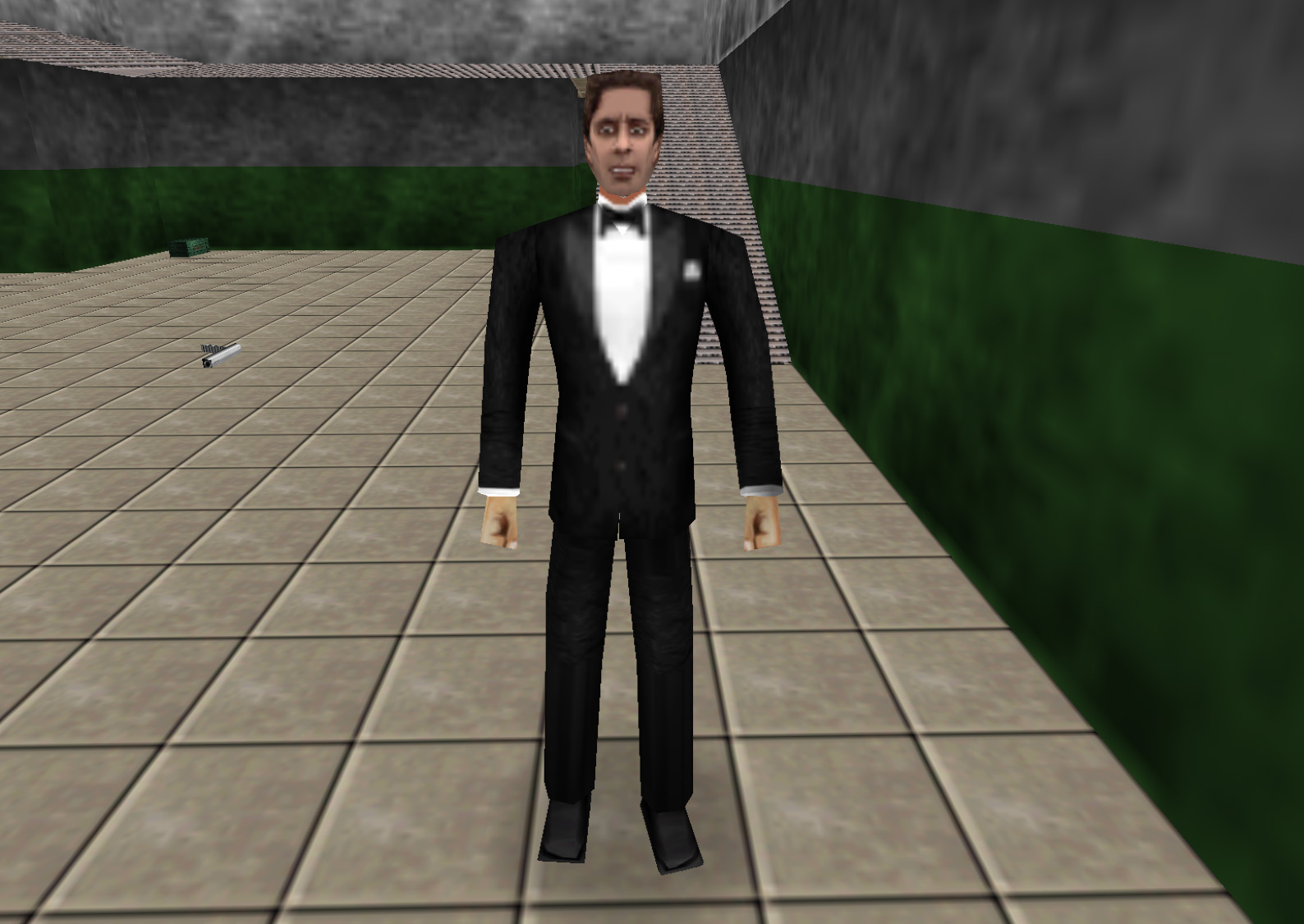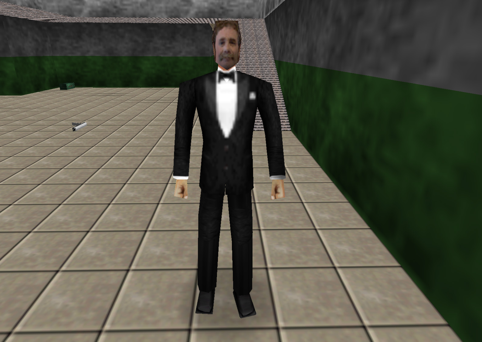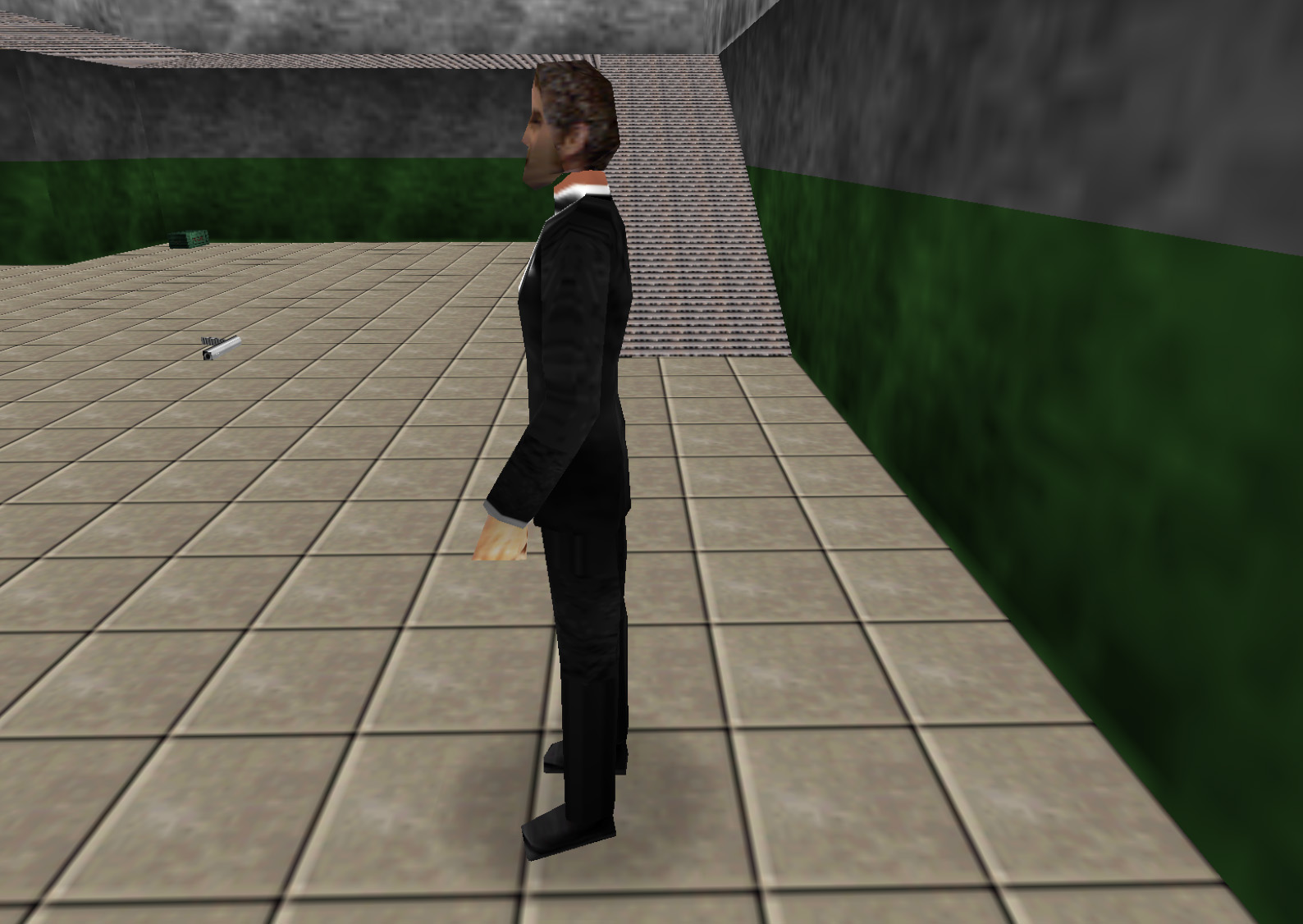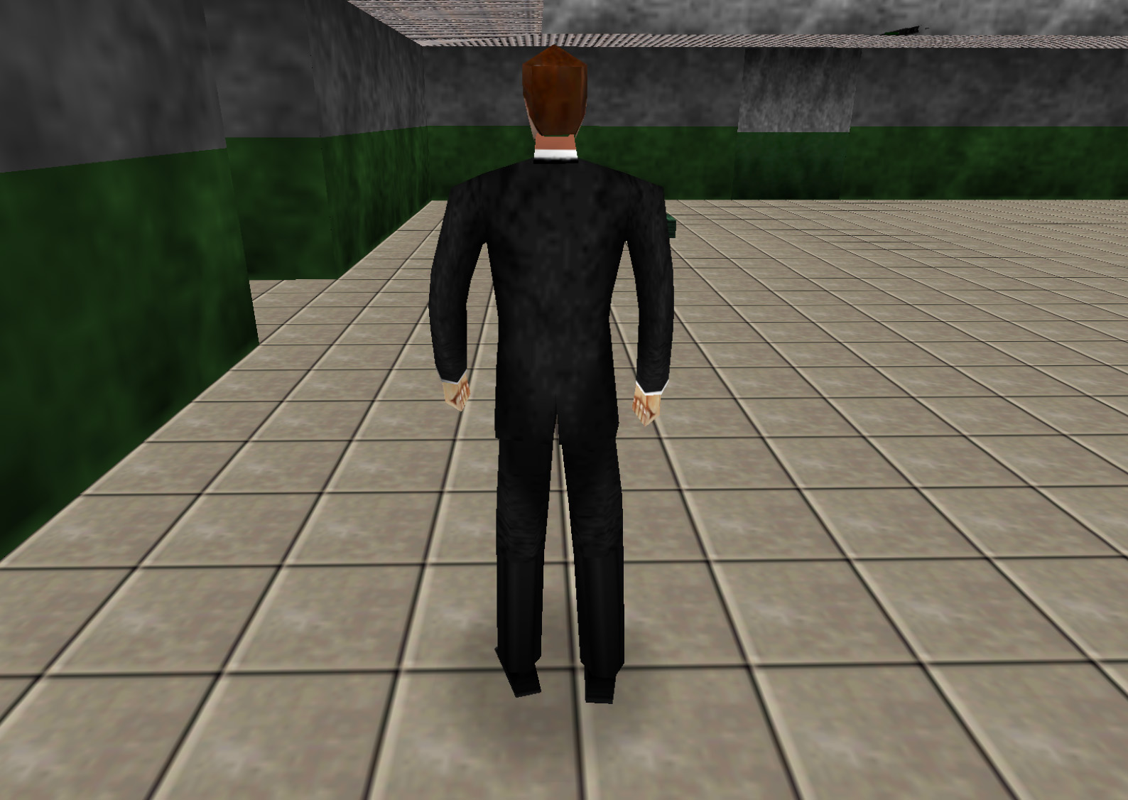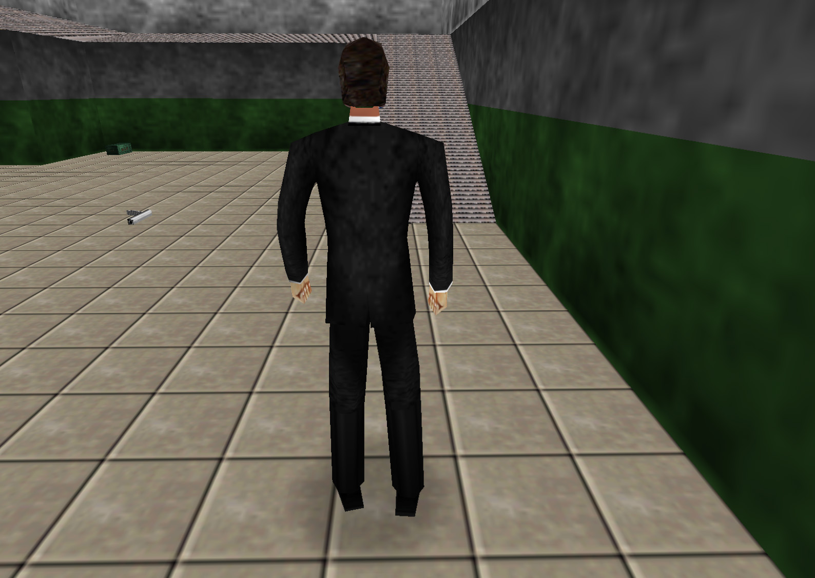 Curiously, Bond uses a different face texture for the bonus levels Aztec and Egyptian. This is because Brett Jones wanted Bond to have slicked-back hair to go with his formal outfit. (Source: GoldenEye 007 by Alyse Knorr, p. 58)