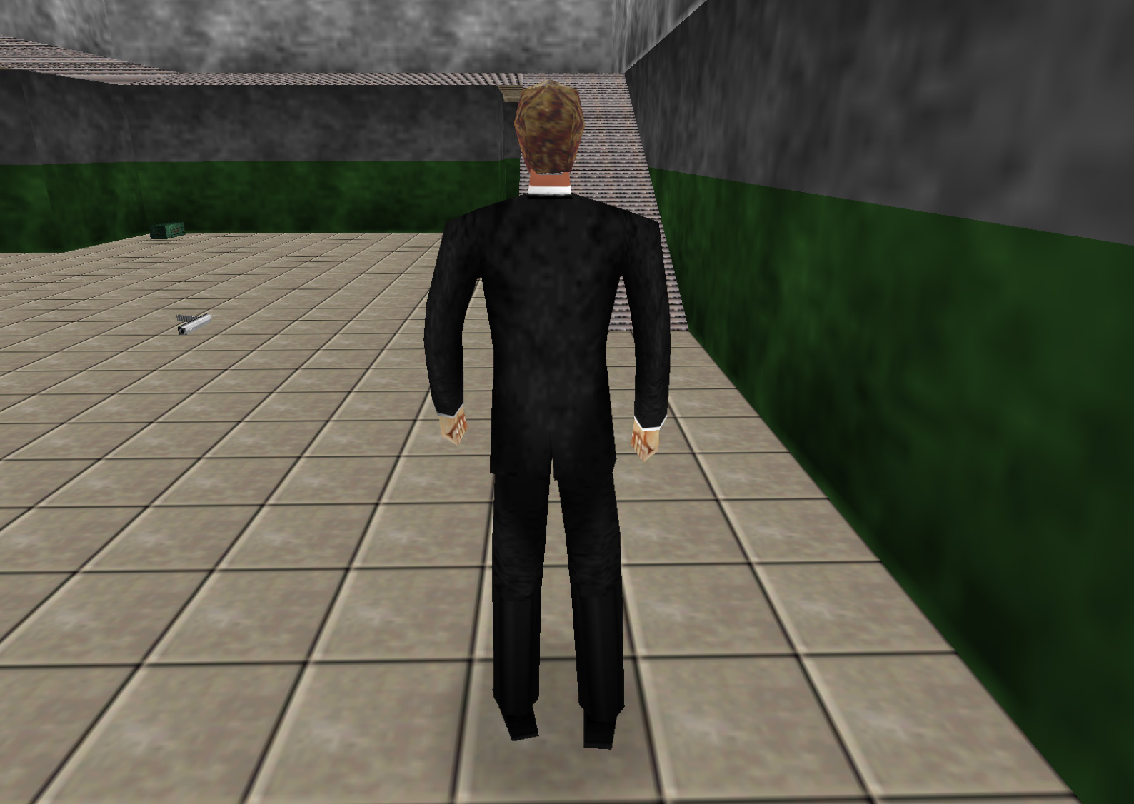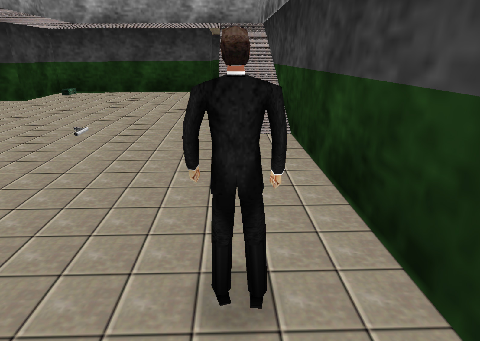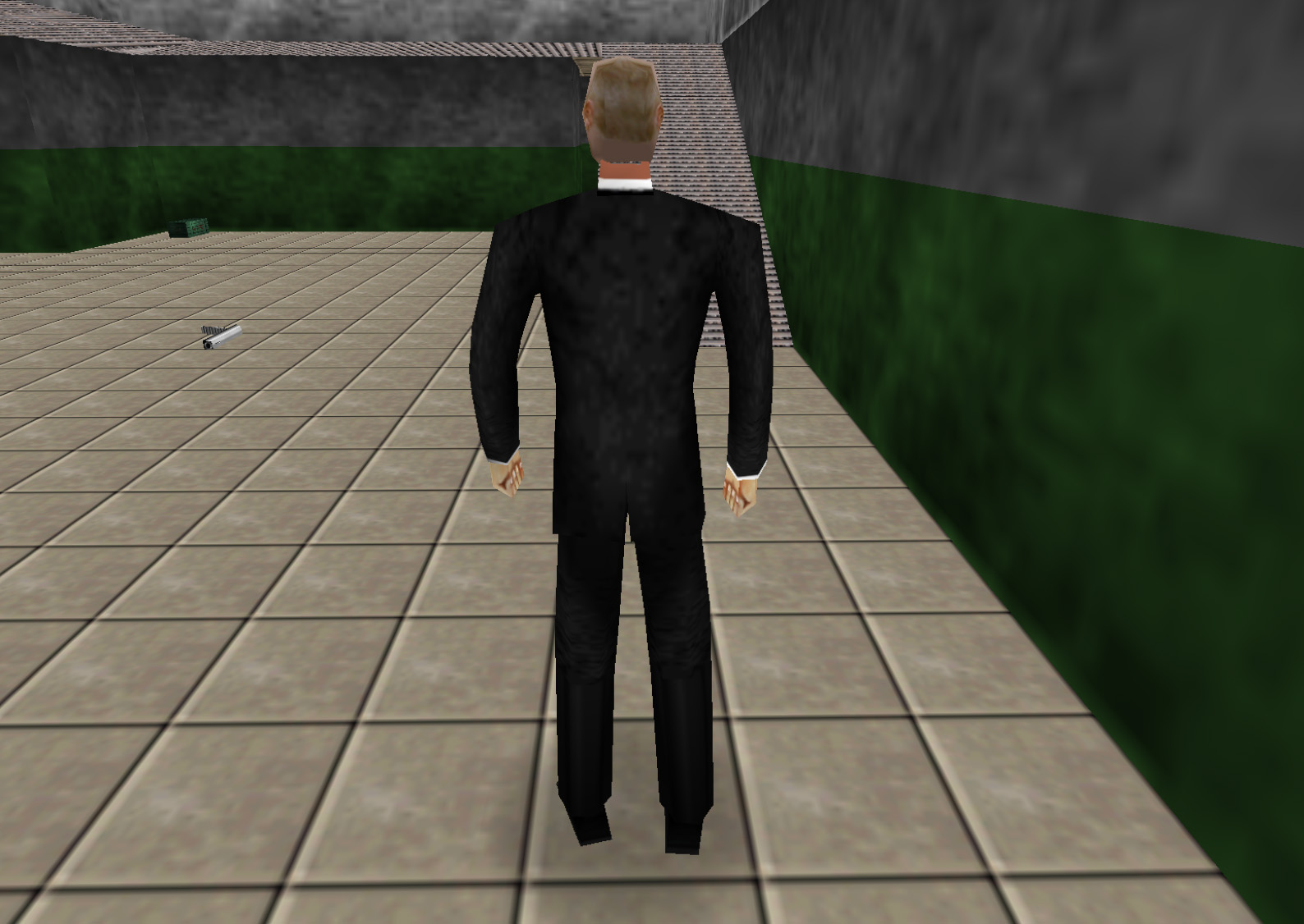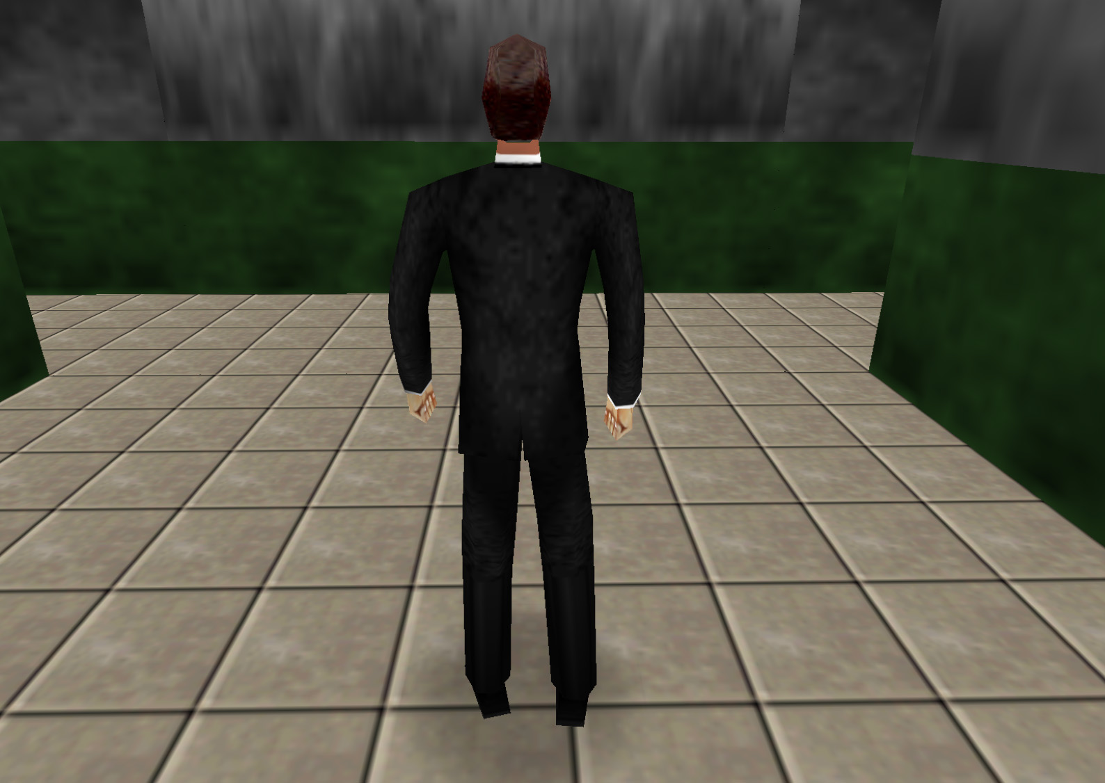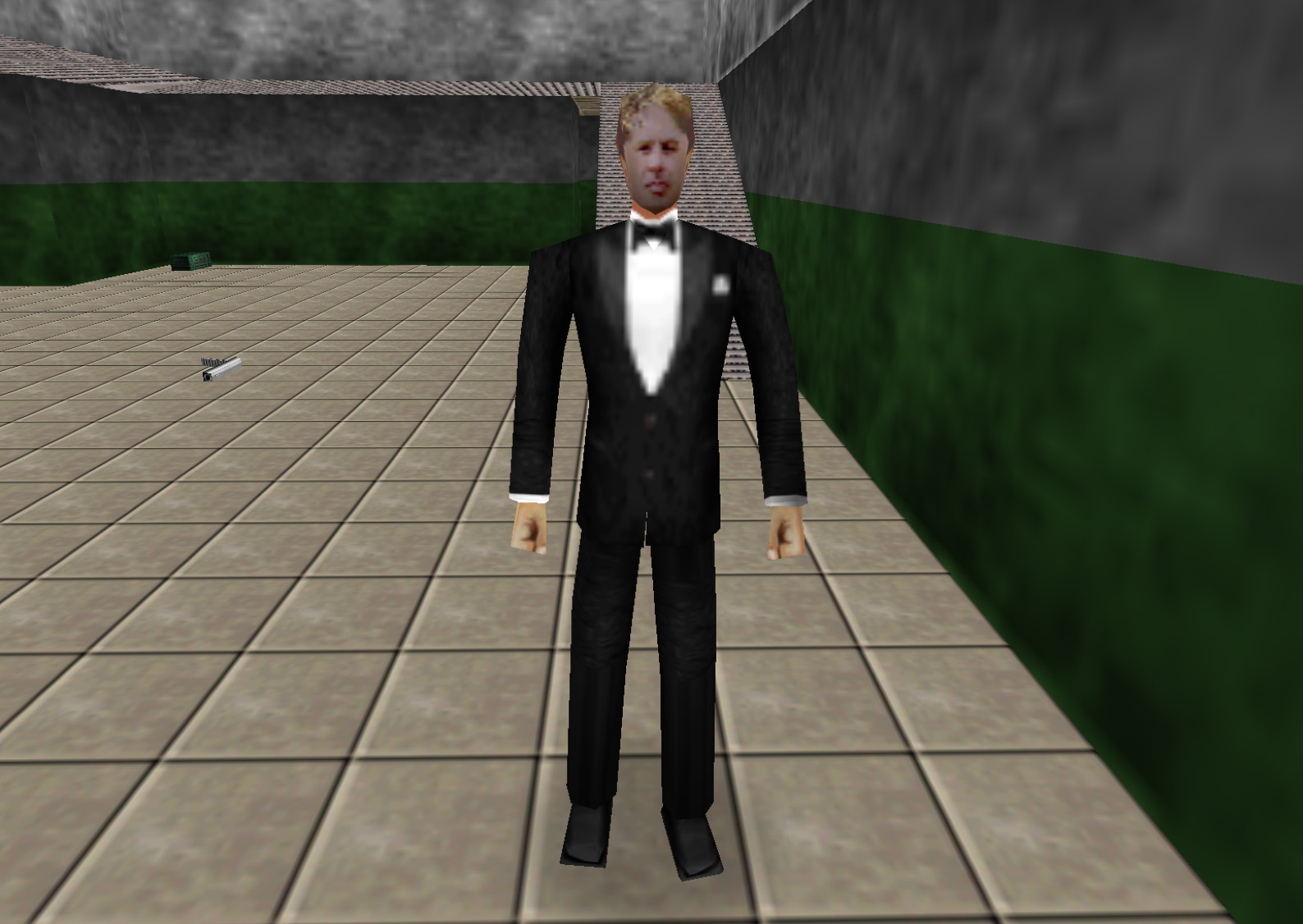 Curiously, Bond uses a different face texture for the bonus levels Aztec and Egyptian. This is because Brett Jones wanted Bond to have slicked-back hair to go with his formal outfit. (Source: GoldenEye 007 by Alyse Knorr, p. 58)
