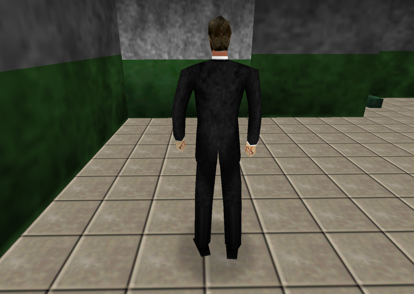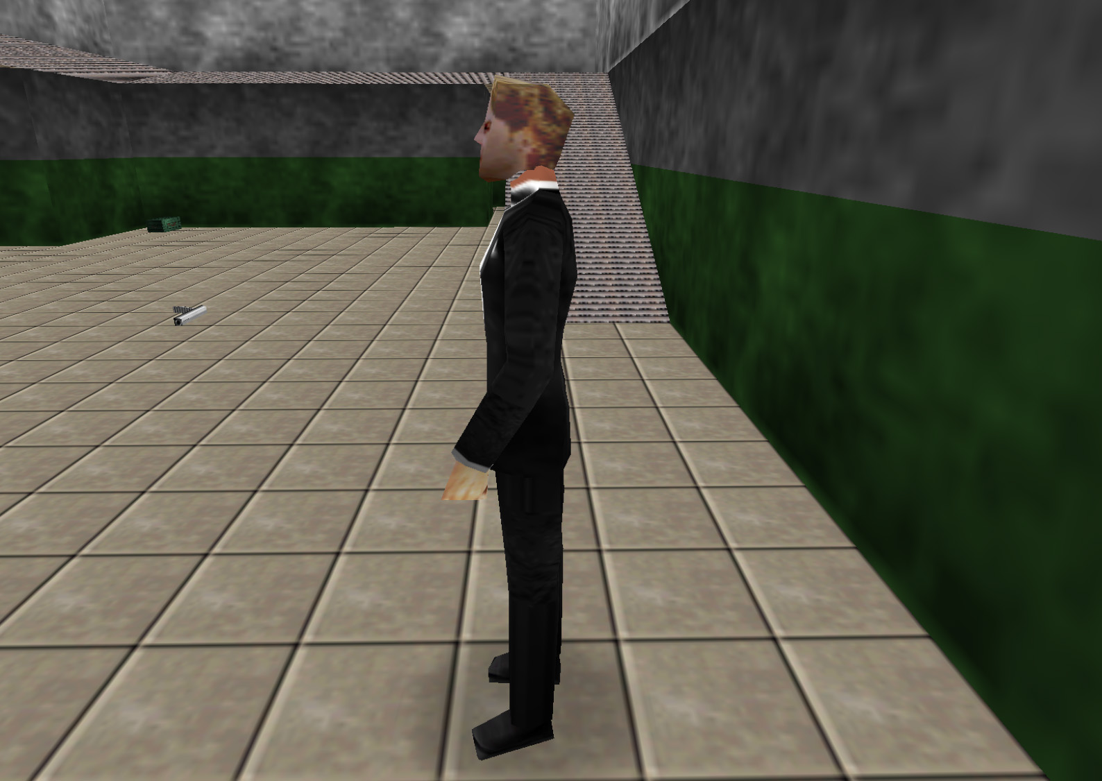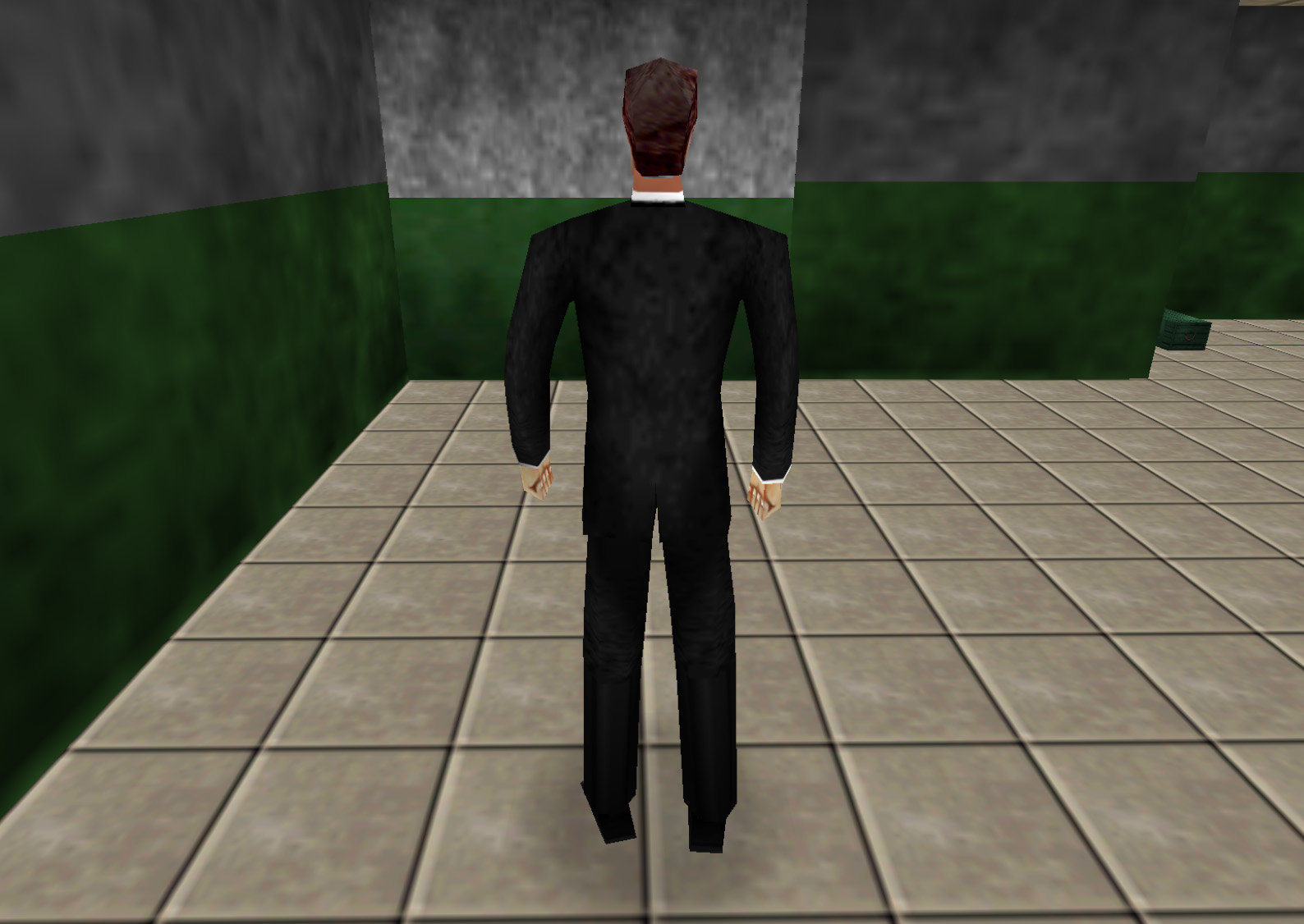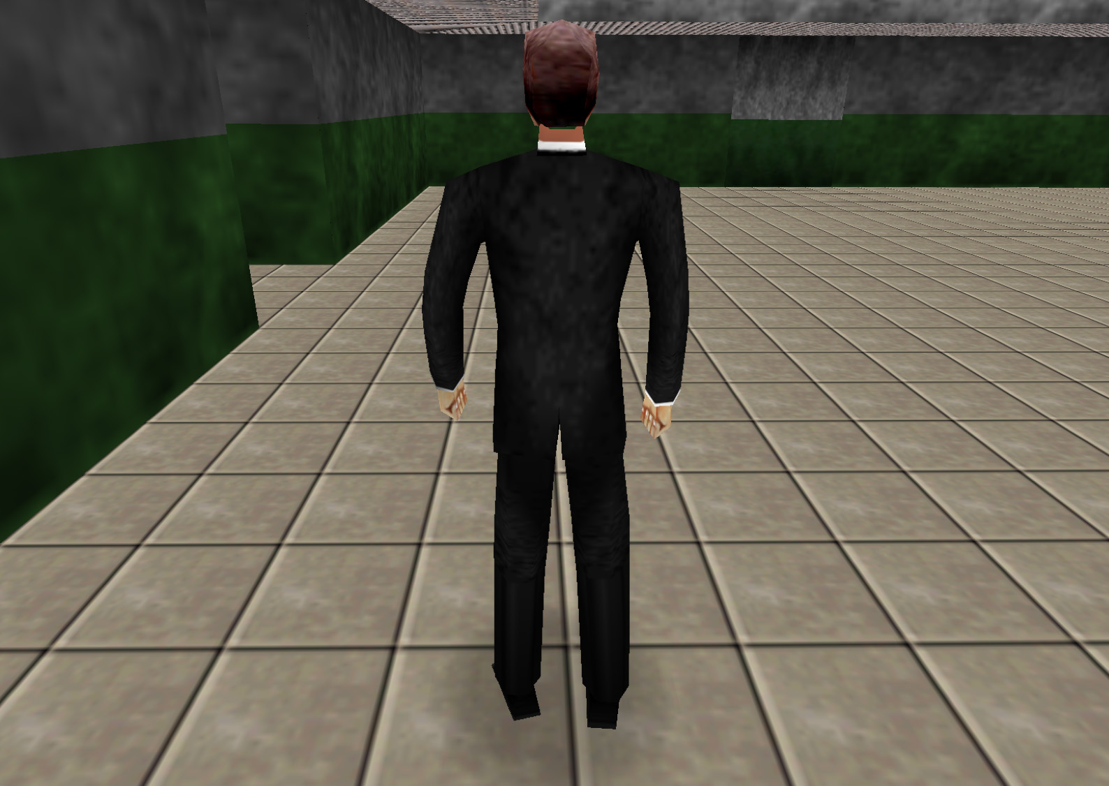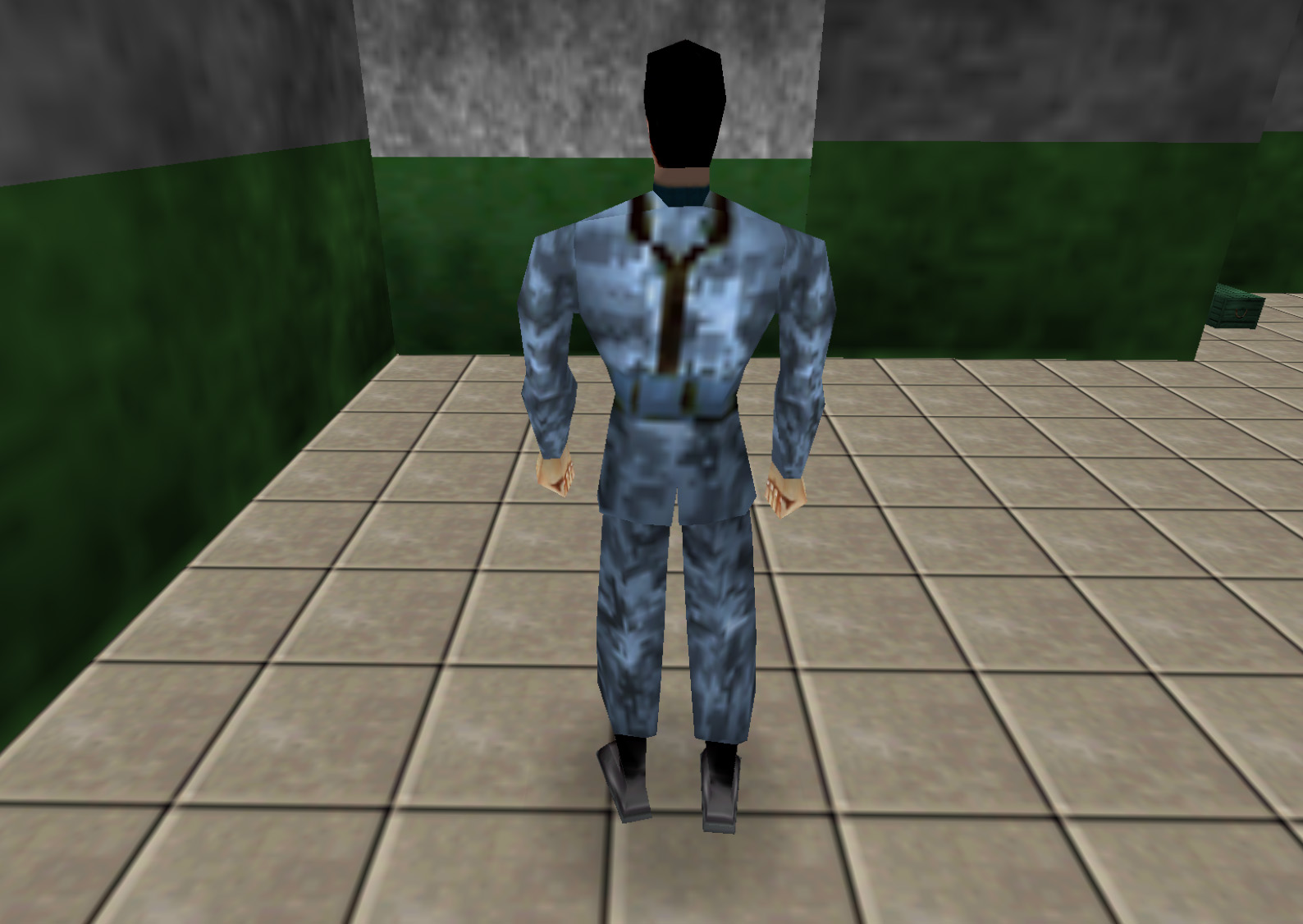 Curiously, Bond uses a different face texture for the bonus levels Aztec and Egyptian. This is because Brett Jones wanted Bond to have slicked-back hair to go with his formal outfit. (Source: GoldenEye 007 by Alyse Knorr, p. 58)