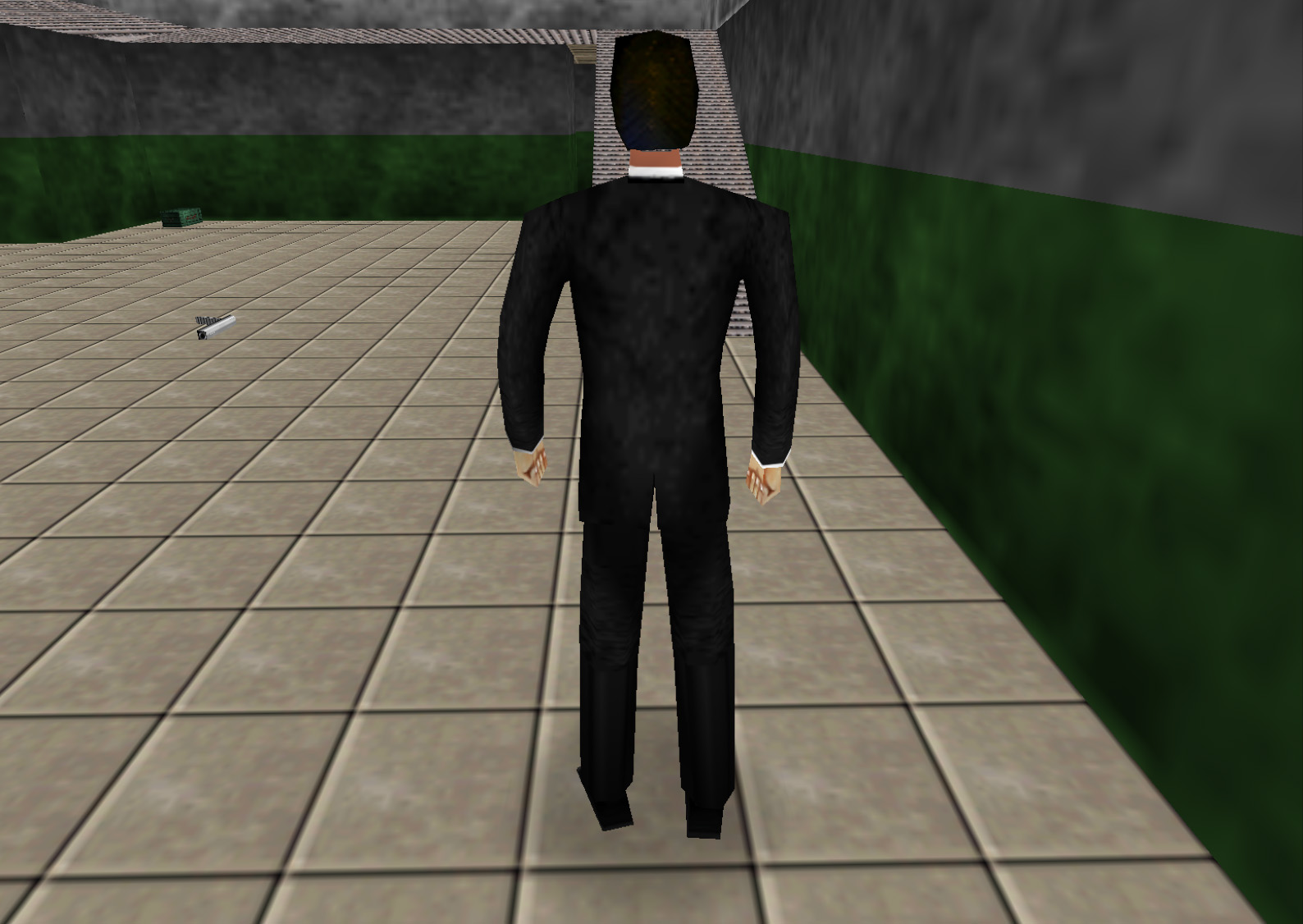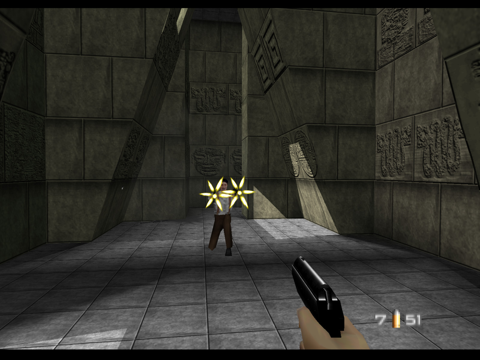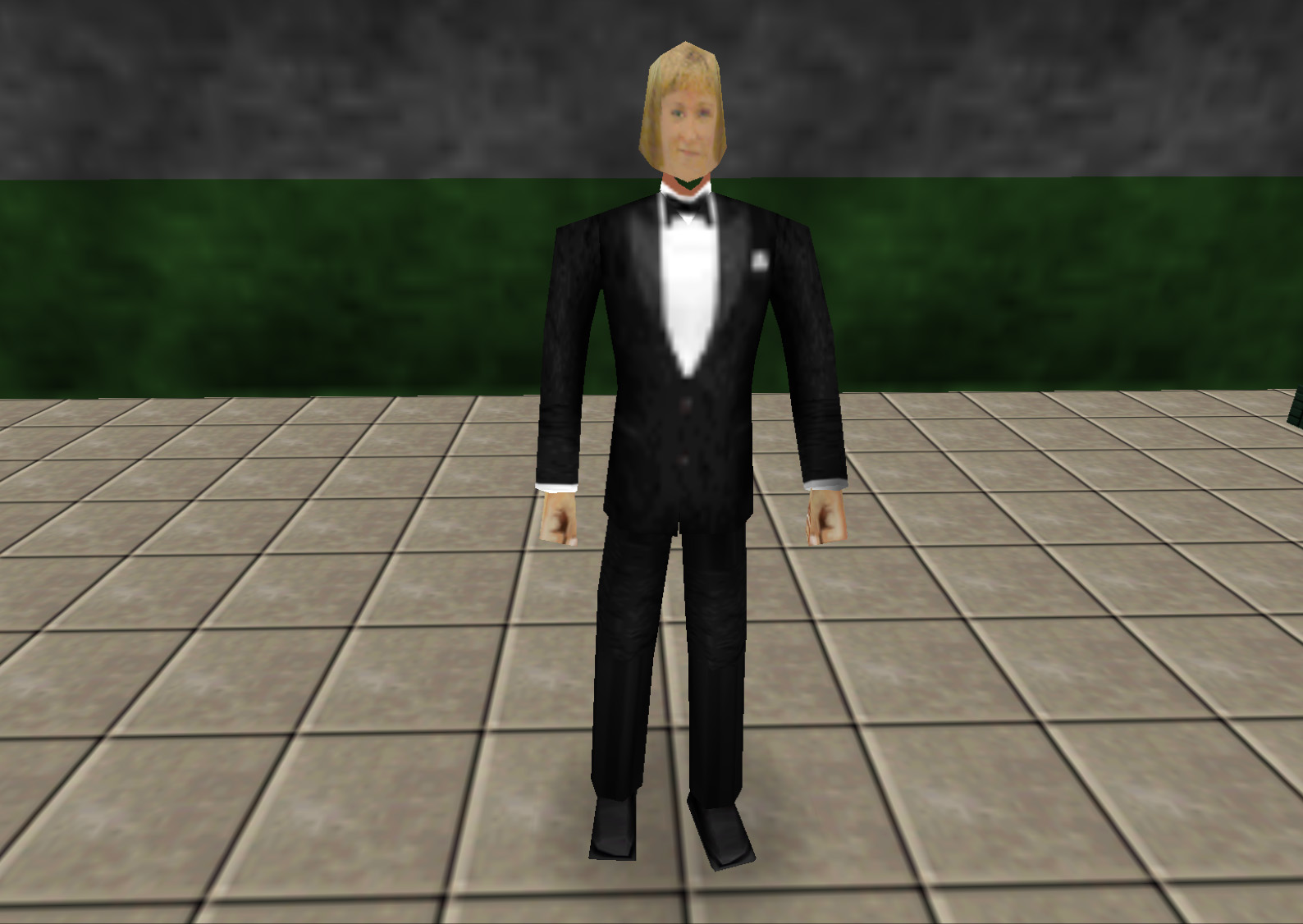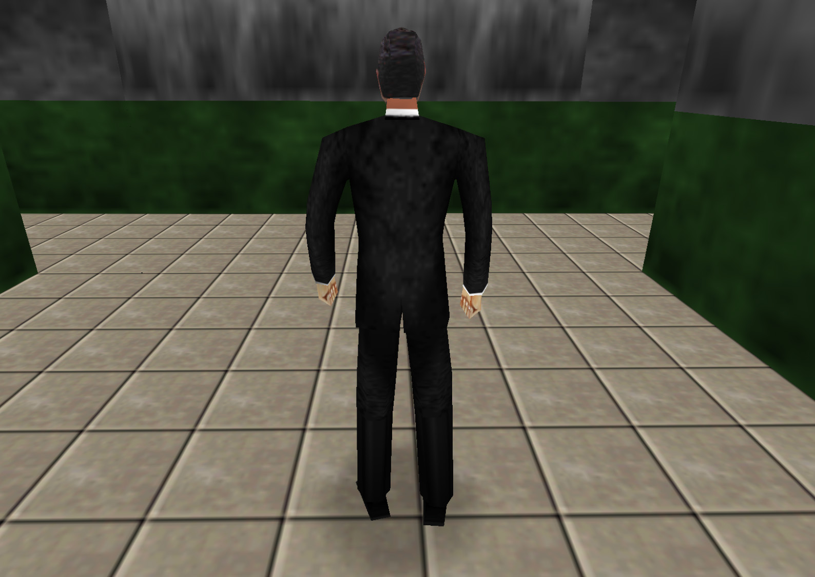 Curiously, Bond uses a different face texture for the bonus levels Aztec and Egyptian. This is because Brett Jones wanted Bond to have slicked-back hair to go with his formal outfit. (Source: GoldenEye 007 by Alyse Knorr, p. 58)