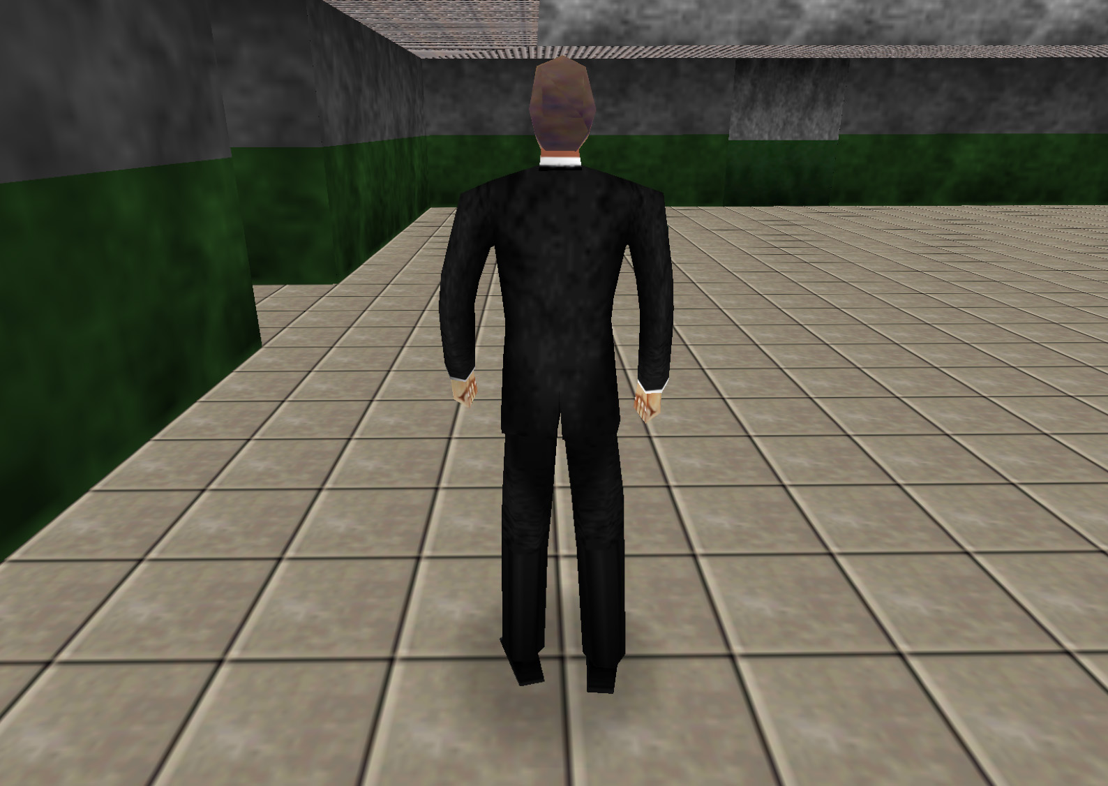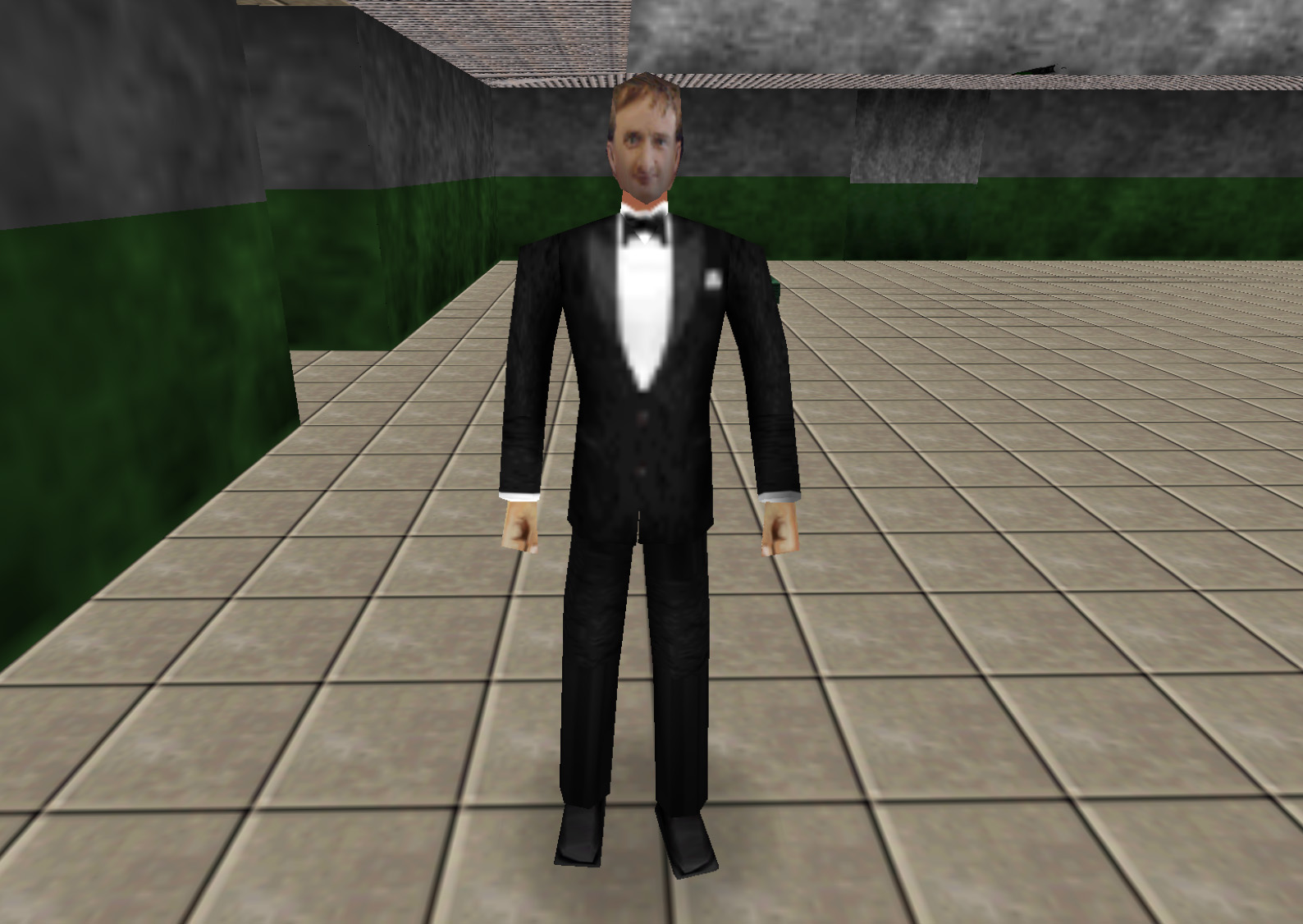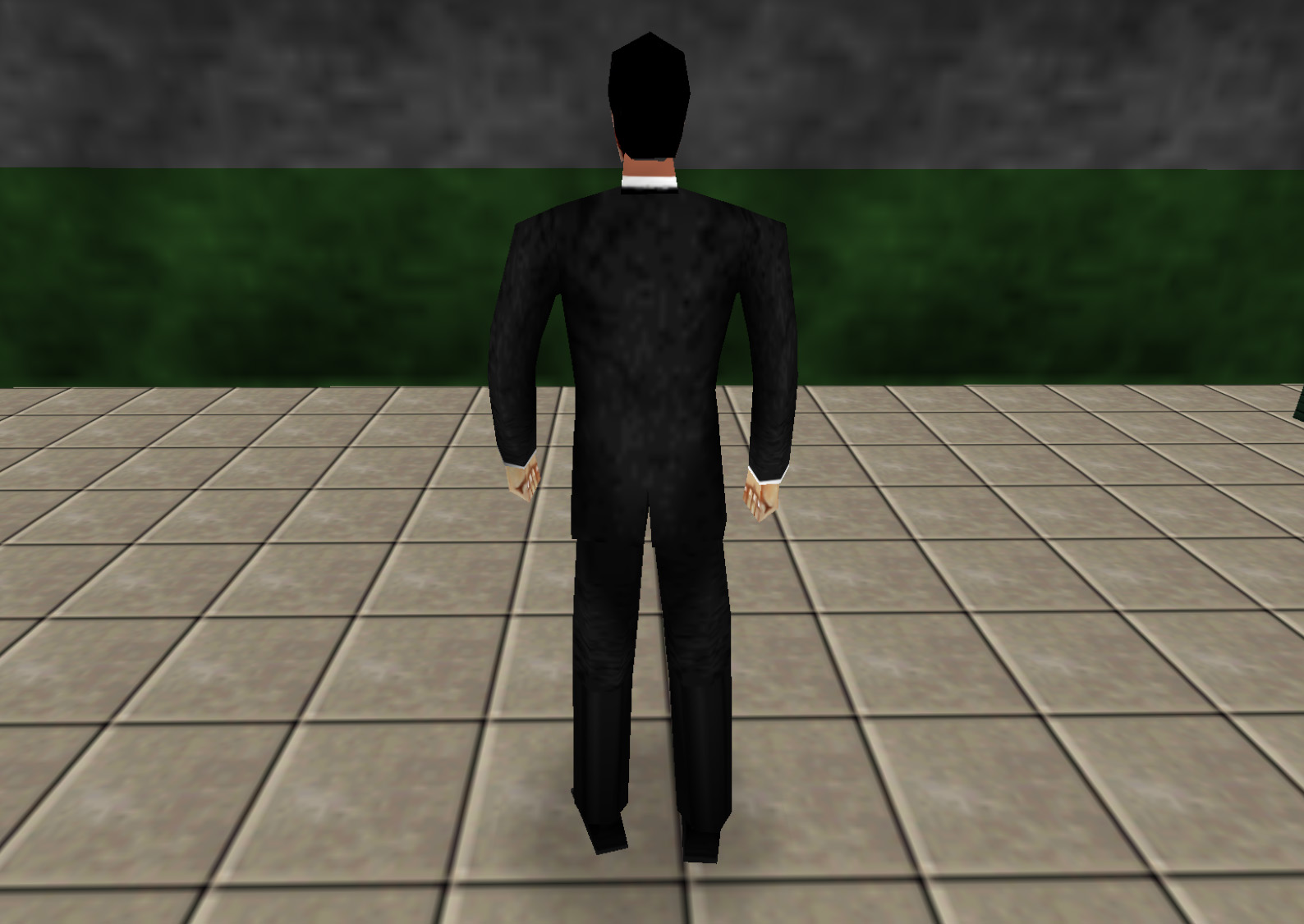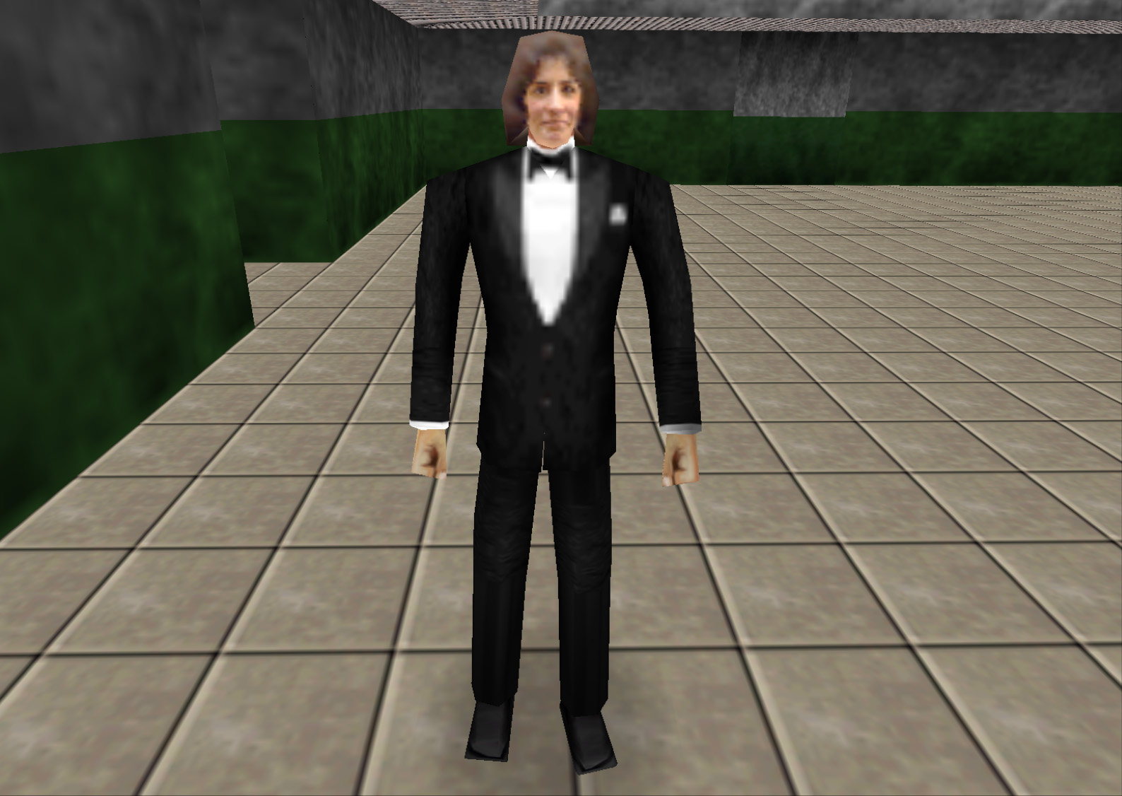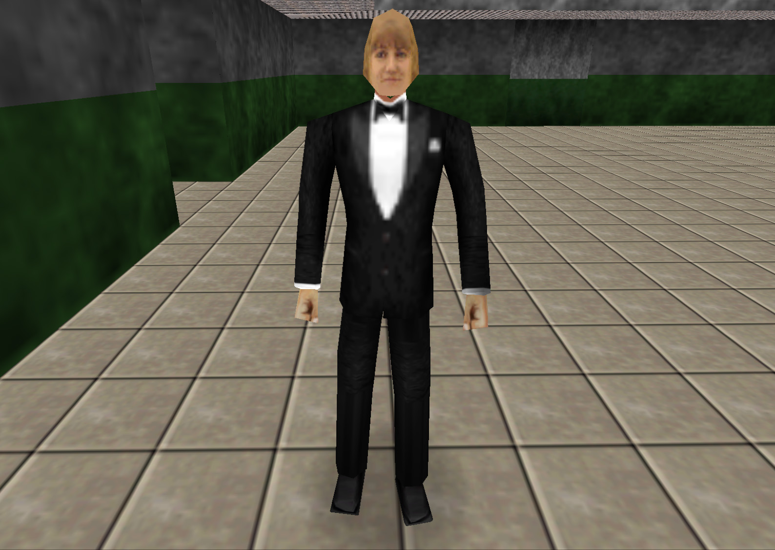 Curiously, Bond uses a different face texture for the bonus levels Aztec and Egyptian. This is because Brett Jones wanted Bond to have slicked-back hair to go with his formal outfit. (Source: GoldenEye 007 by Alyse Knorr, p. 58)