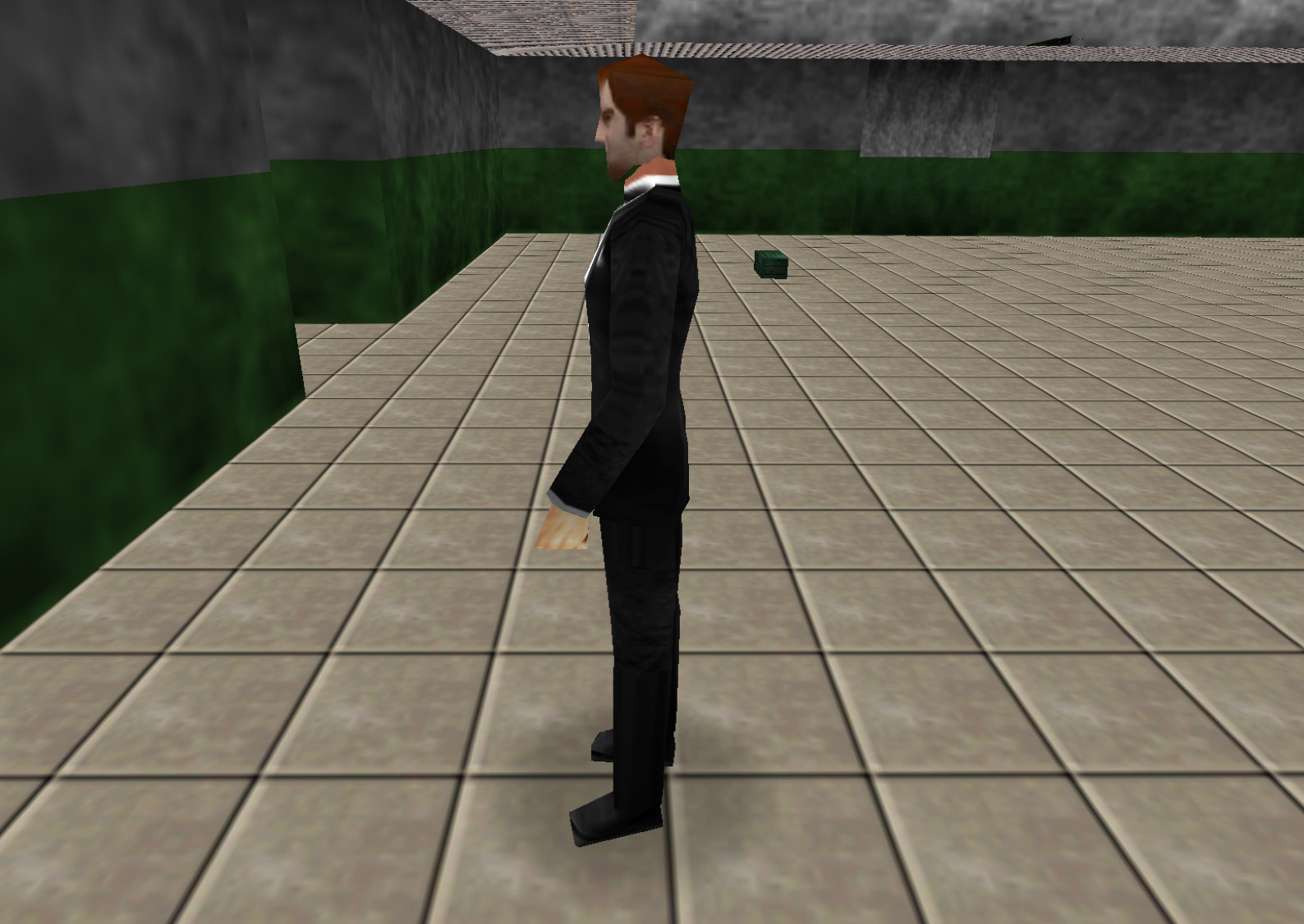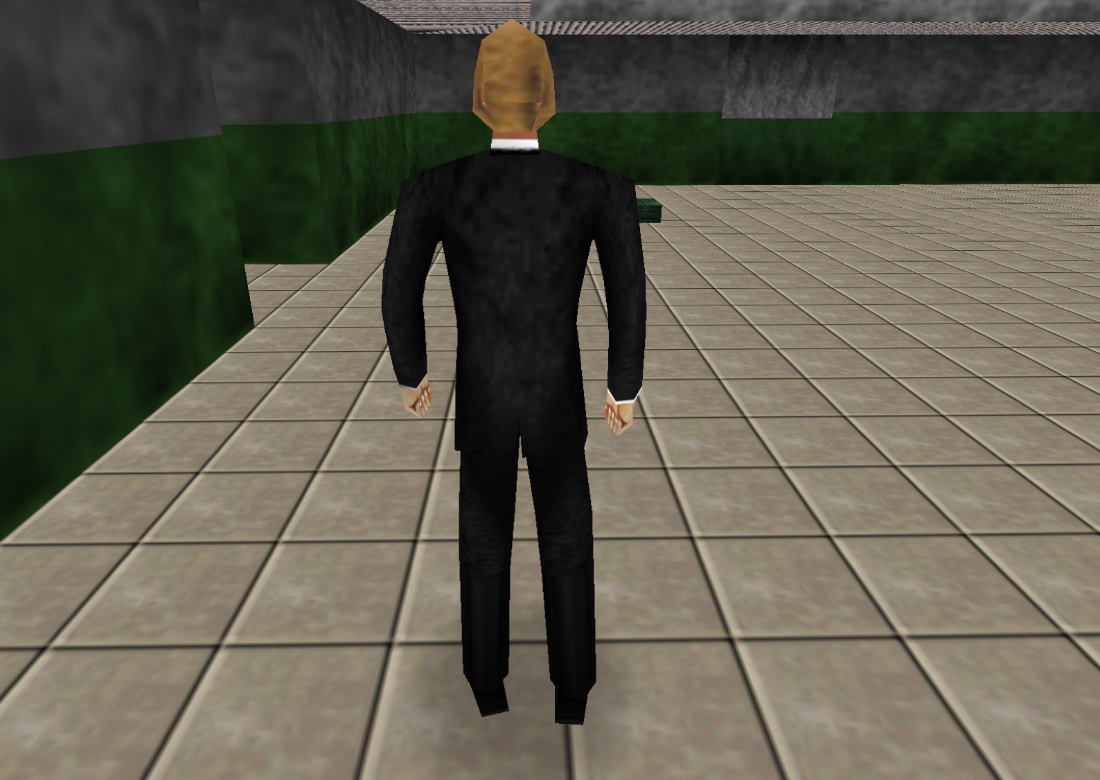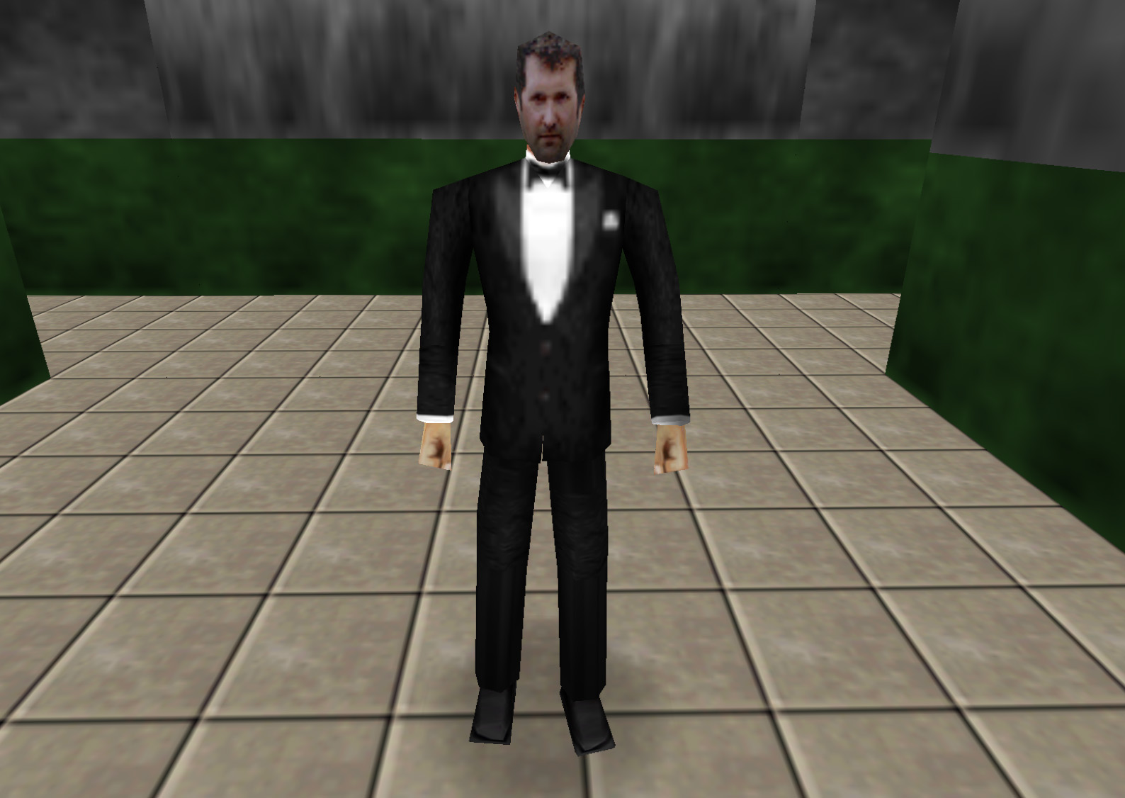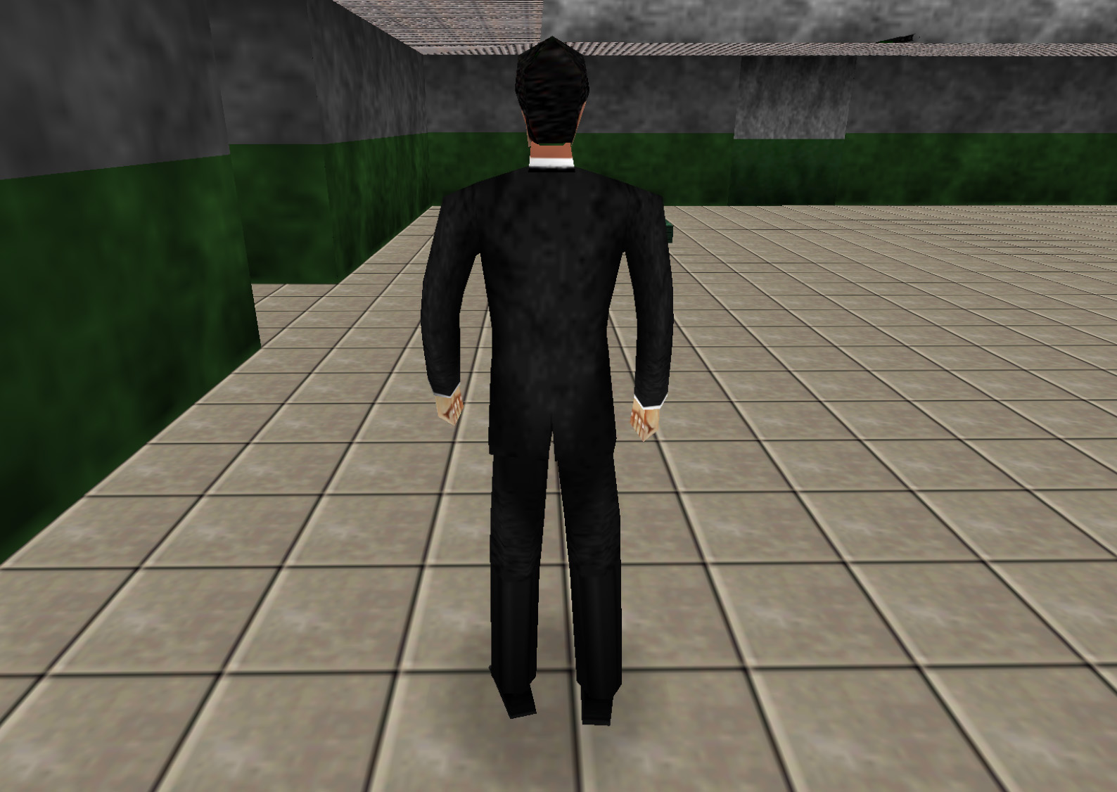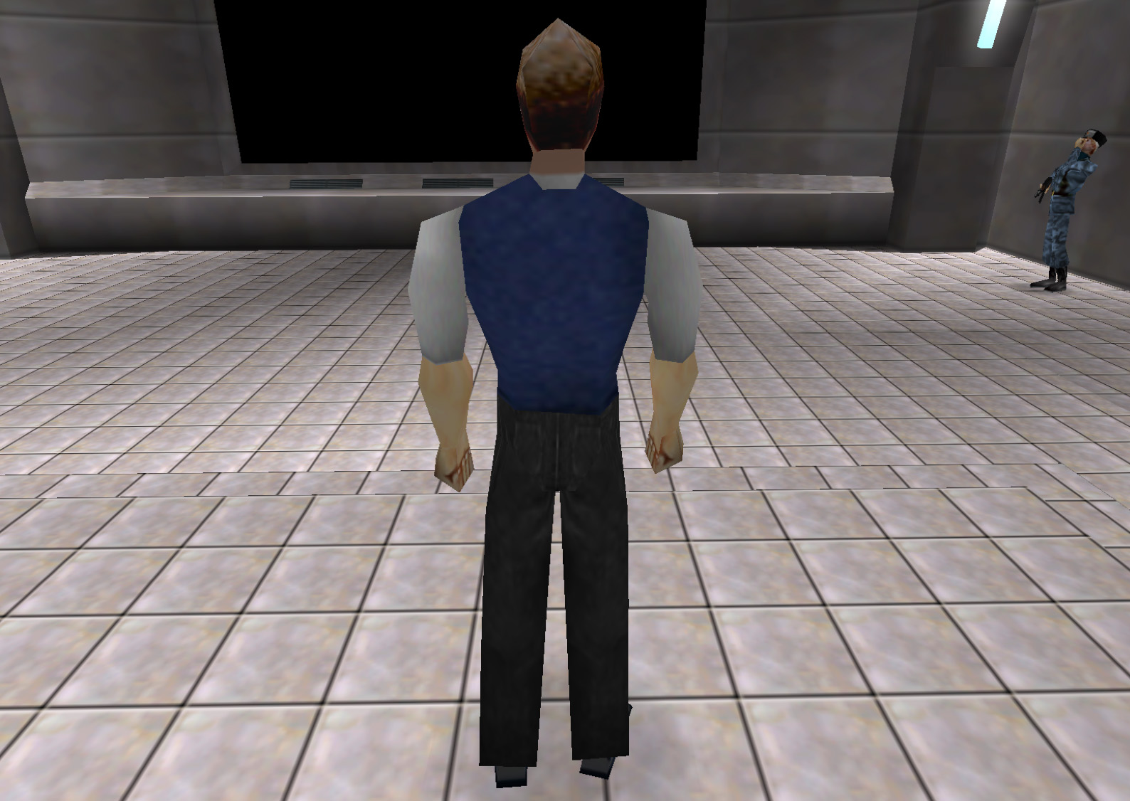 Curiously, Bond uses a different face texture for the bonus levels Aztec and Egyptian. This is because Brett Jones wanted Bond to have slicked-back hair to go with his formal outfit. (Source: GoldenEye 007 by Alyse Knorr, p. 58)