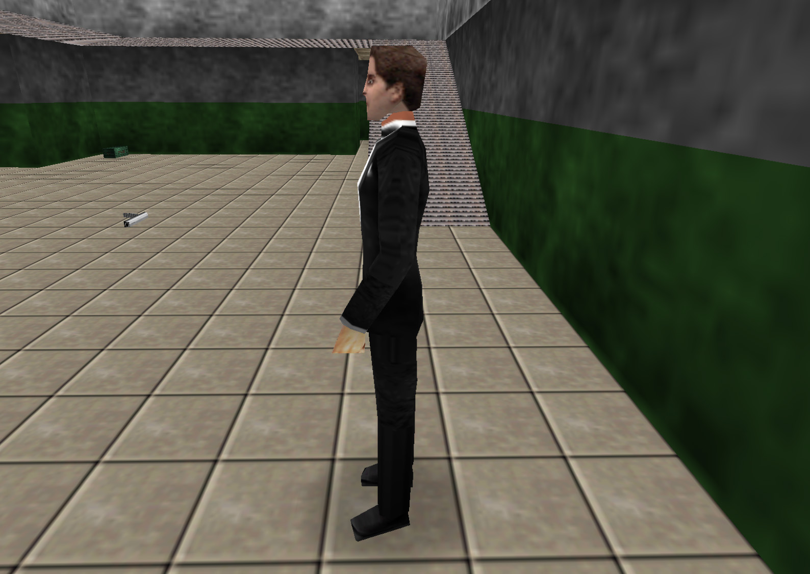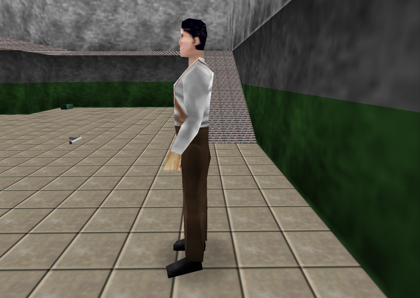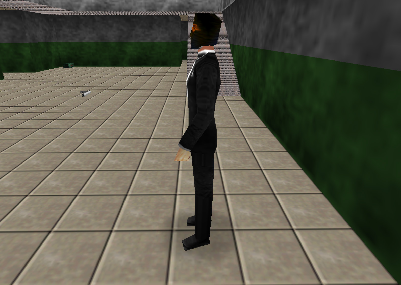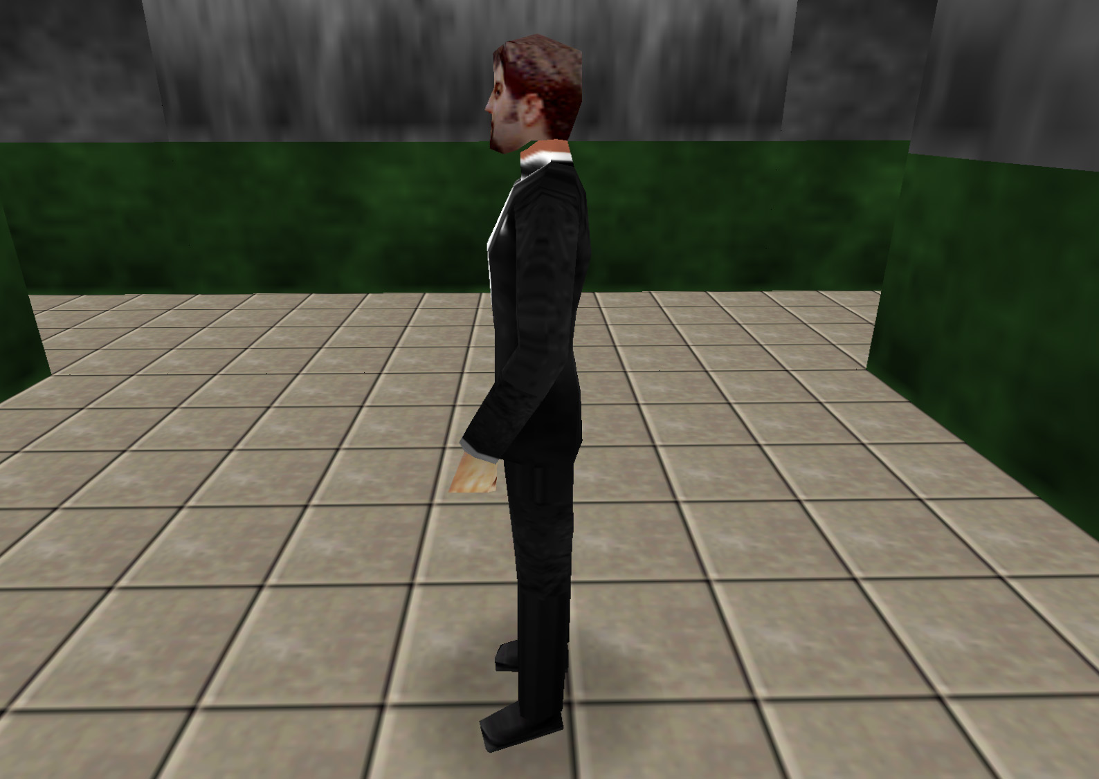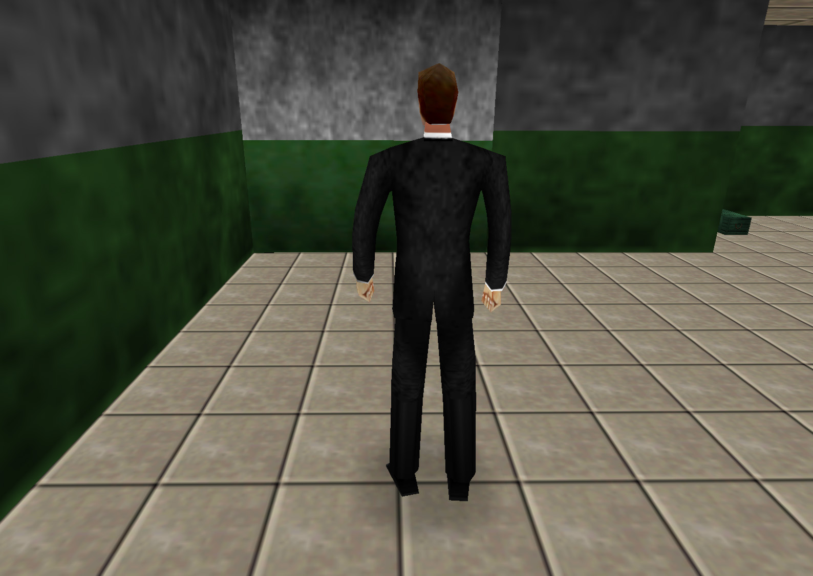 Curiously, Bond uses a different face texture for the bonus levels Aztec and Egyptian. This is because Brett Jones wanted Bond to have slicked-back hair to go with his formal outfit. (Source: GoldenEye 007 by Alyse Knorr, p. 58)