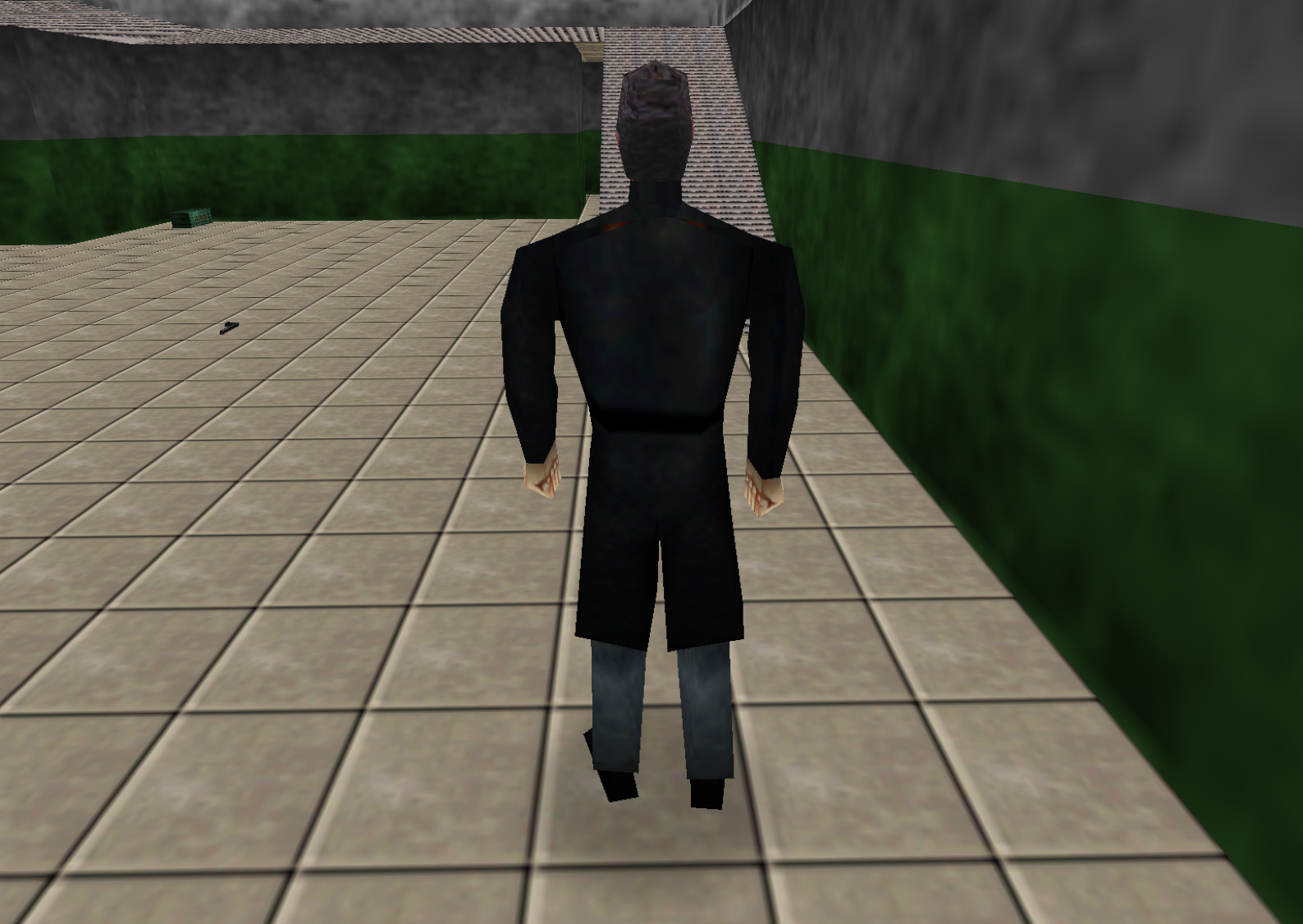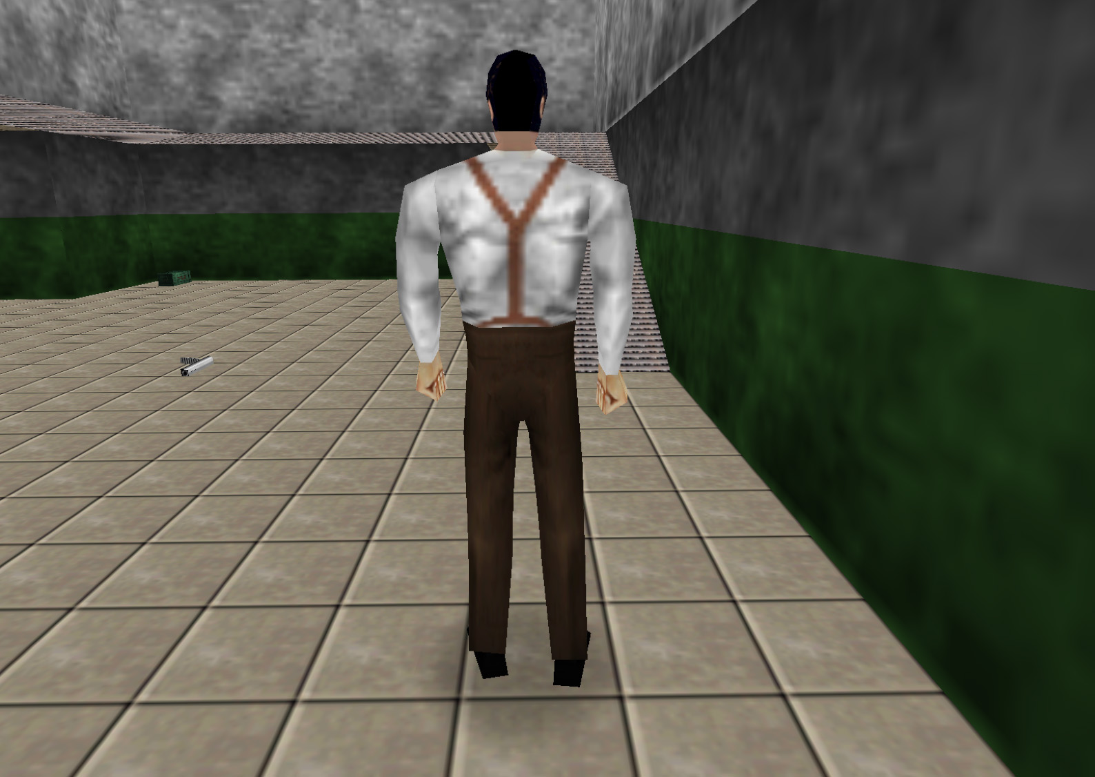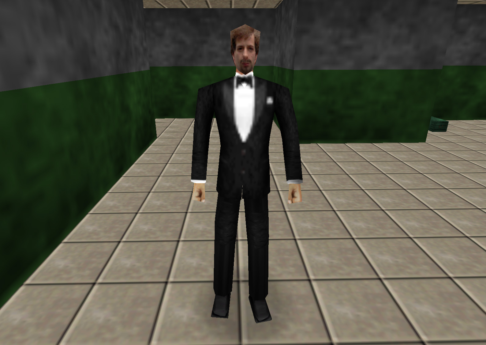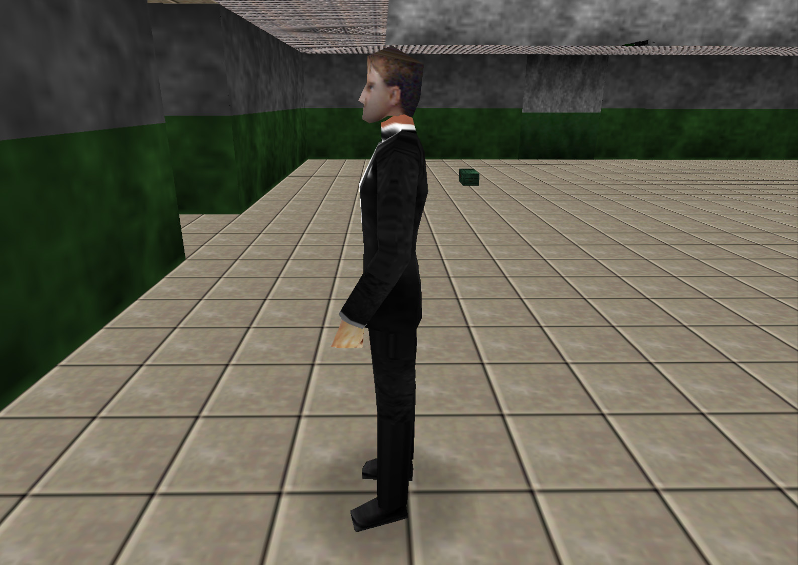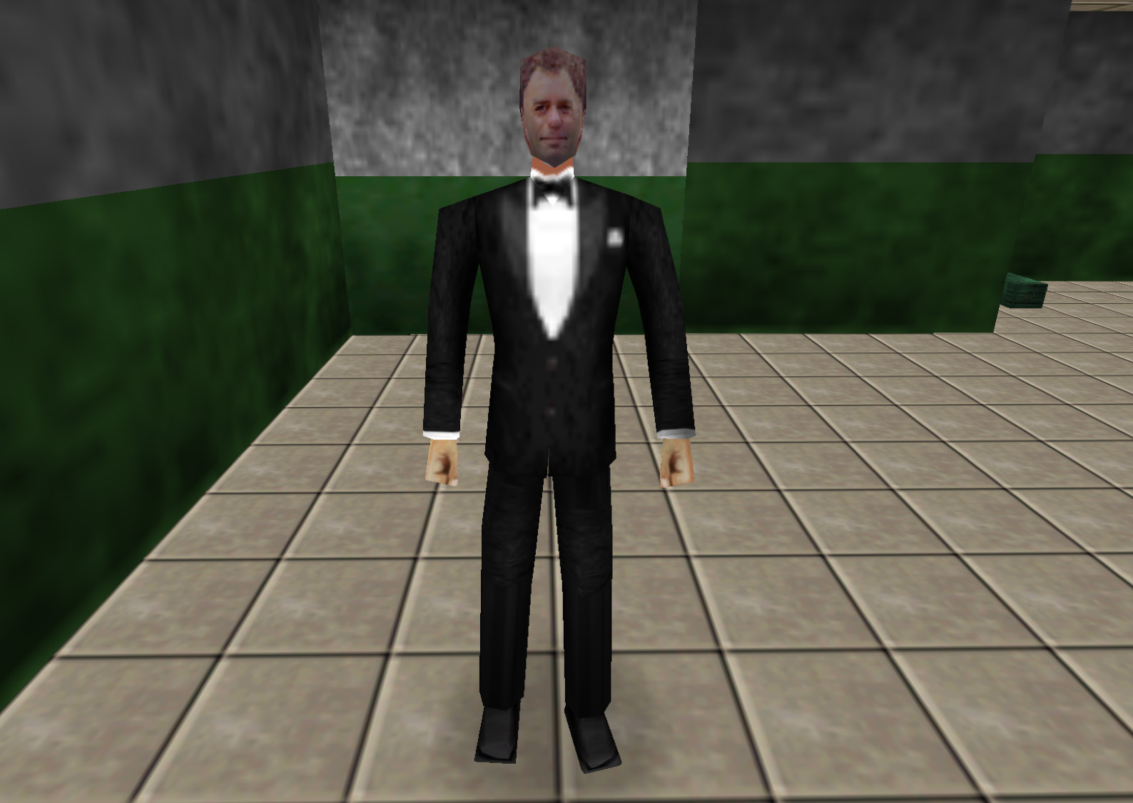 Curiously, Bond uses a different face texture for the bonus levels Aztec and Egyptian. This is because Brett Jones wanted Bond to have slicked-back hair to go with his formal outfit. (Source: GoldenEye 007 by Alyse Knorr, p. 58)