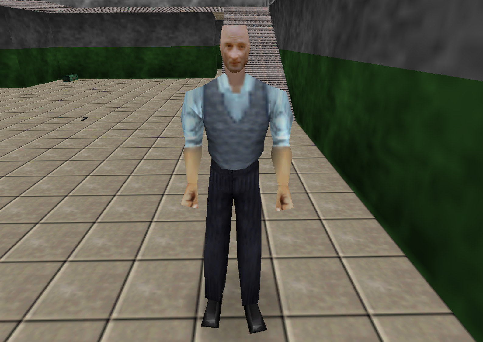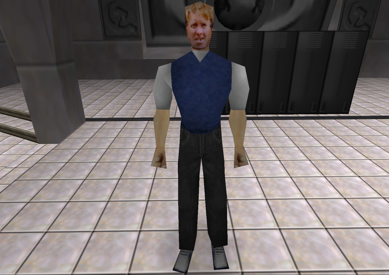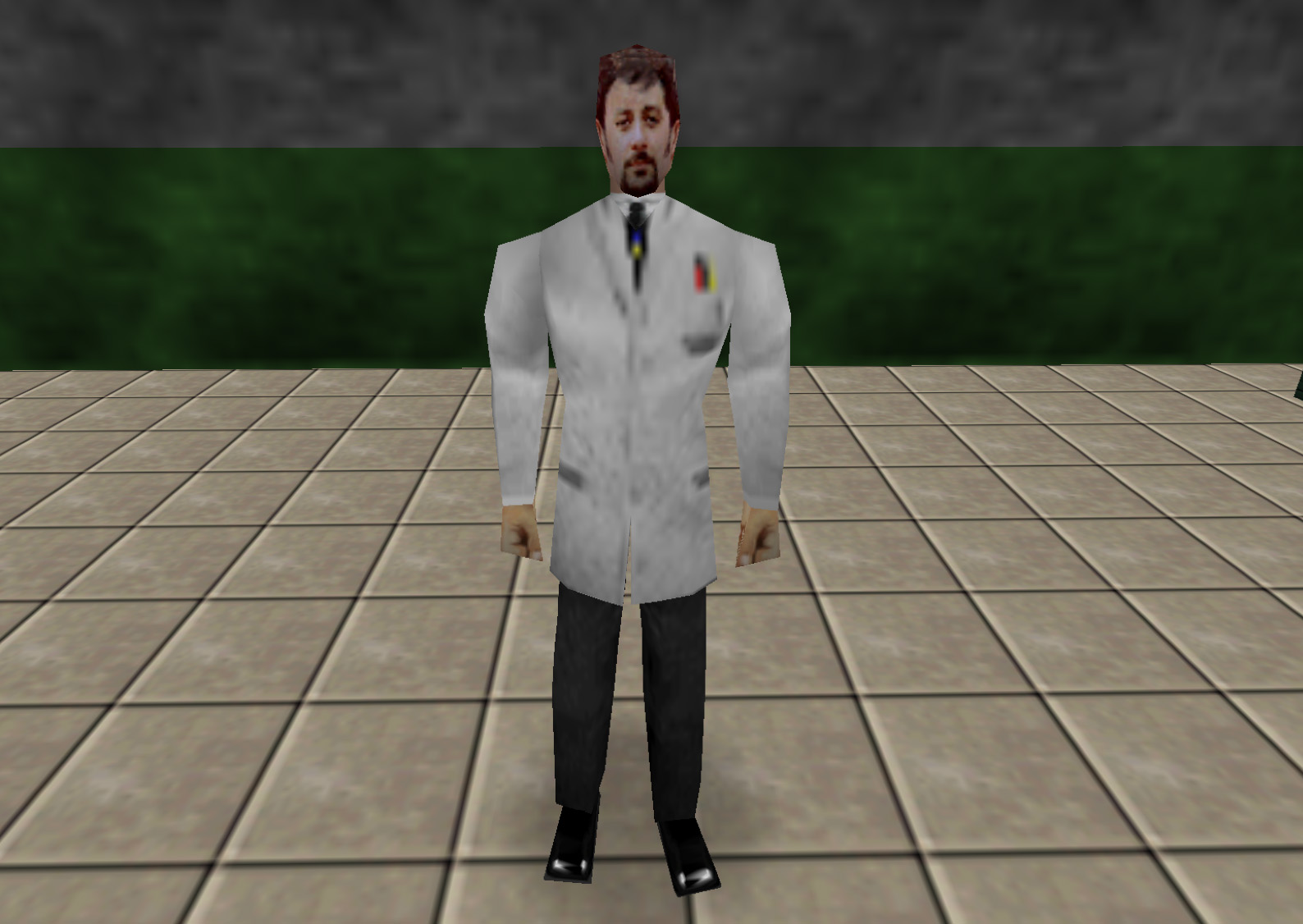 Dr. Doak was added to the game to spice up the classic "get a key to open a door" game mechanic. Real world Dr. Doak made the game character use his name and face as something of joke, fully expecting the design choice to be vetoed and removed by higher management, which it was. Project Lead Martin Hollis intervened and had Dr. Doak reinstated late in development.(Source) We're very glad he did!