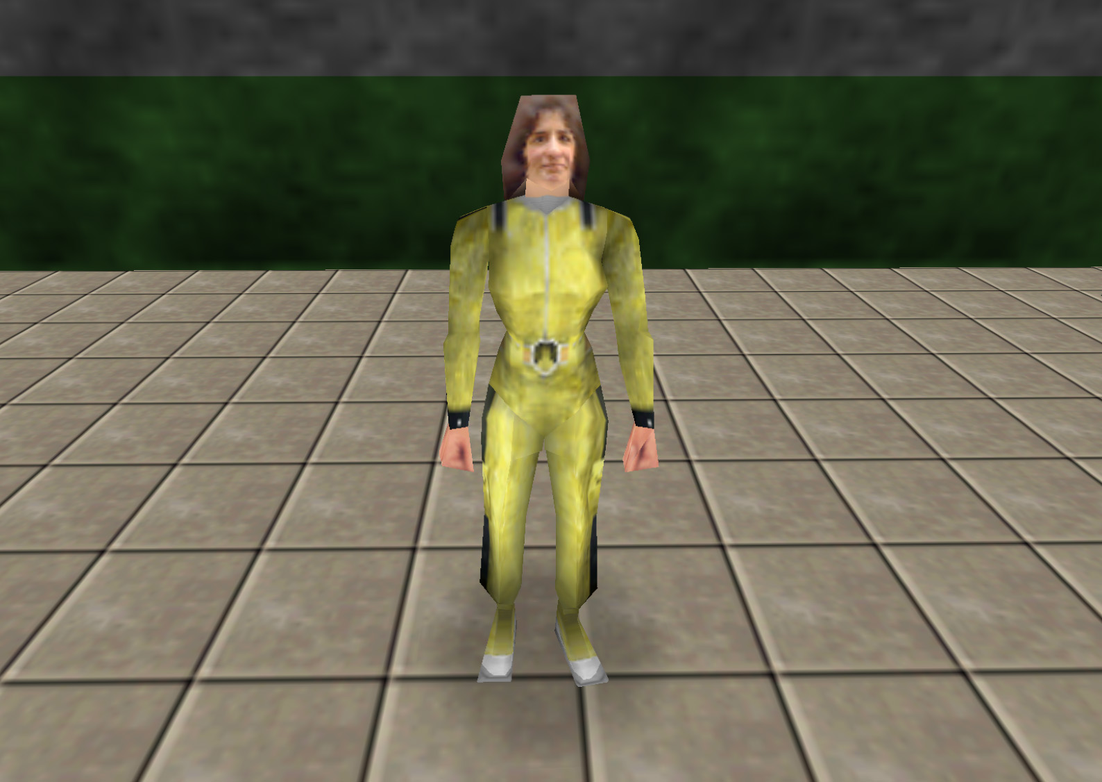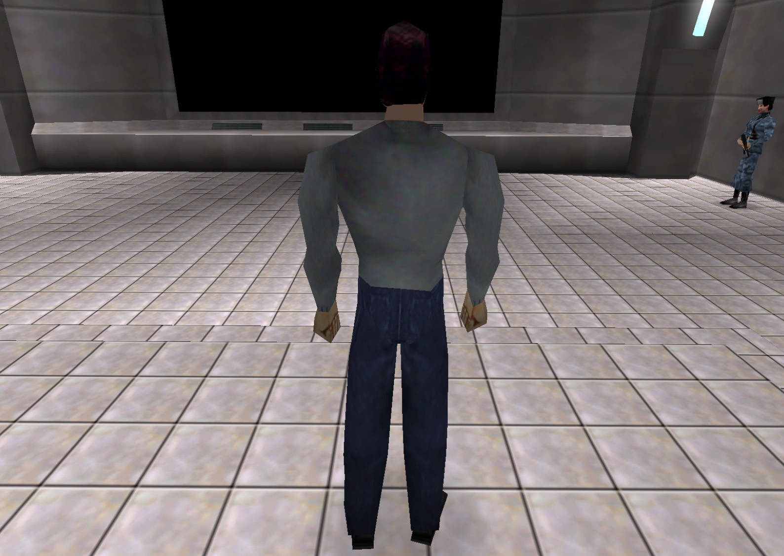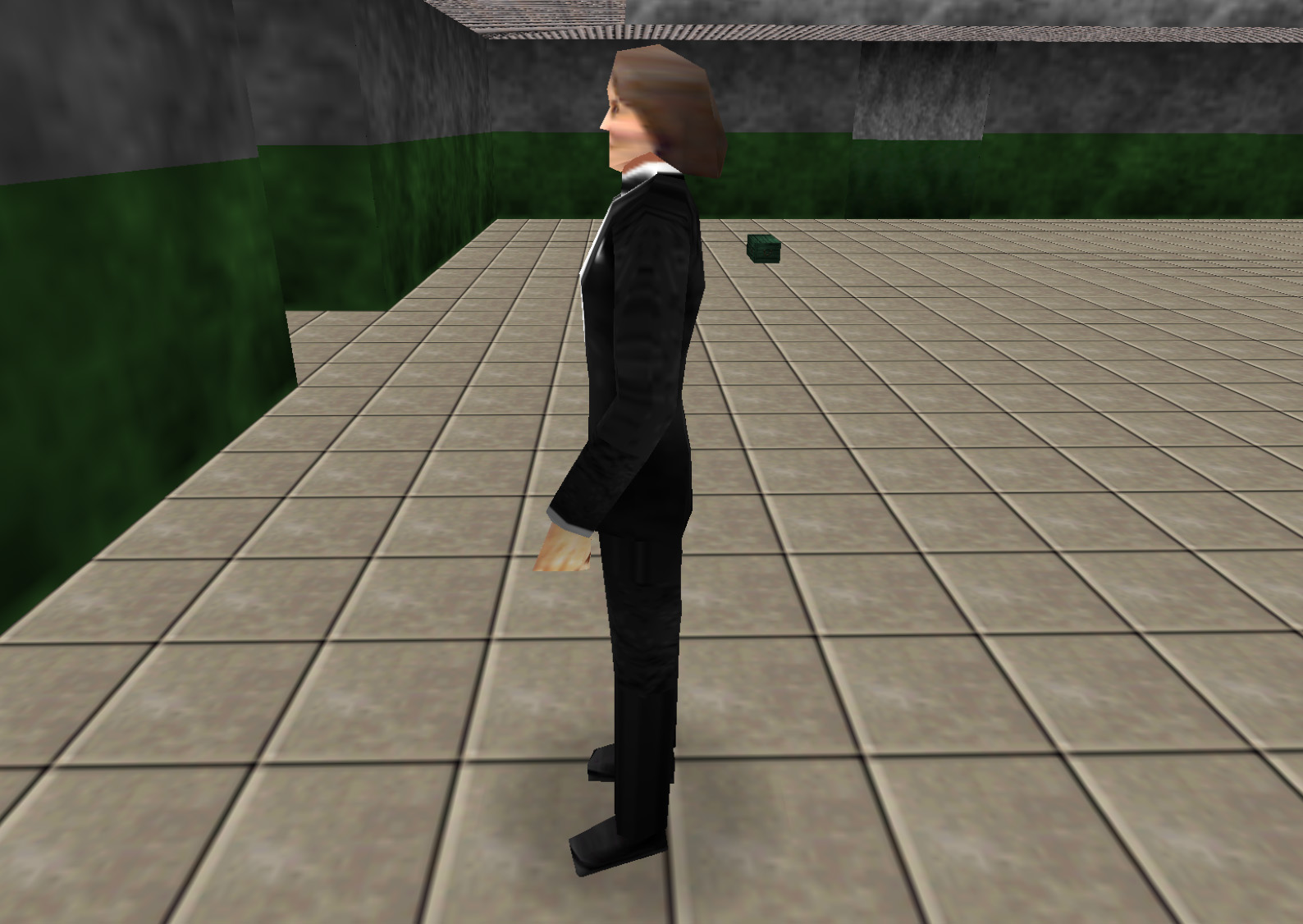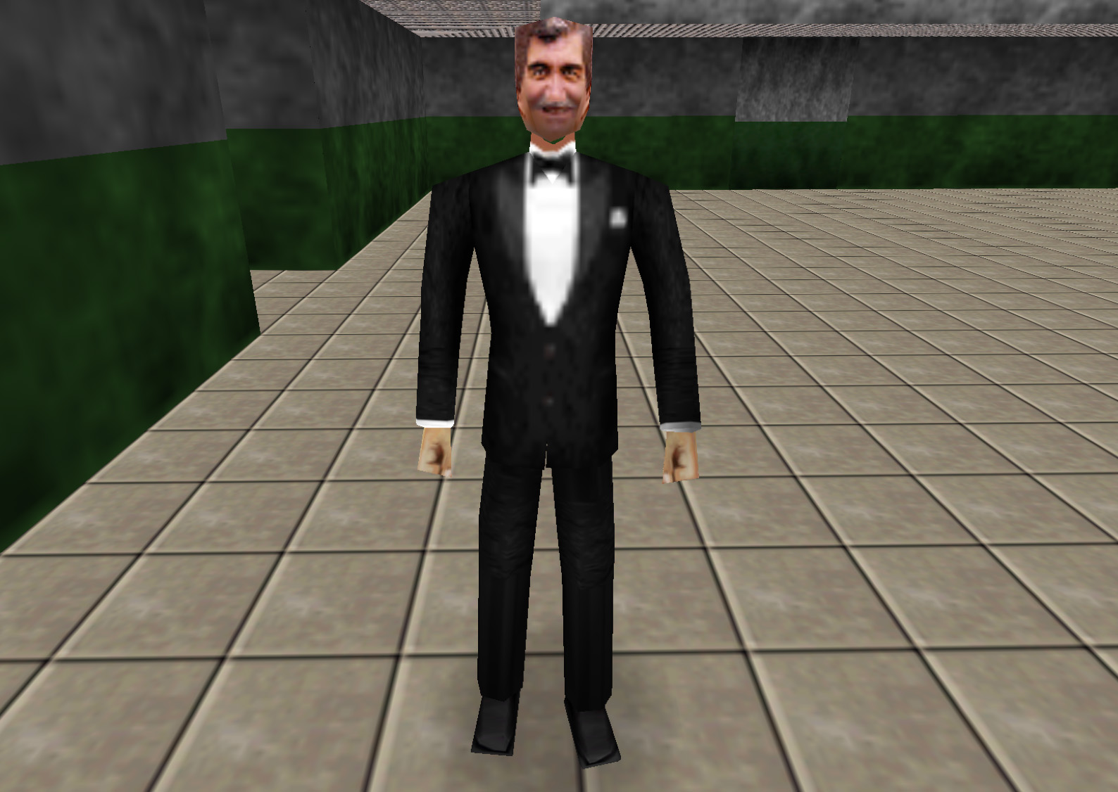 These three characters exist on every GoldenEye ROM, but there is no way to access them without a cheating device. They don't even have official names. I used the GoldenEye Setup Editor to add them to Bunker 2. Blue woman uses a random female head and the other two use a random male head.