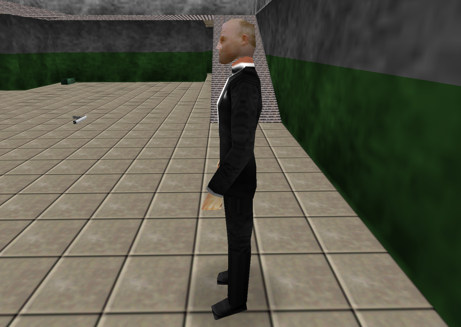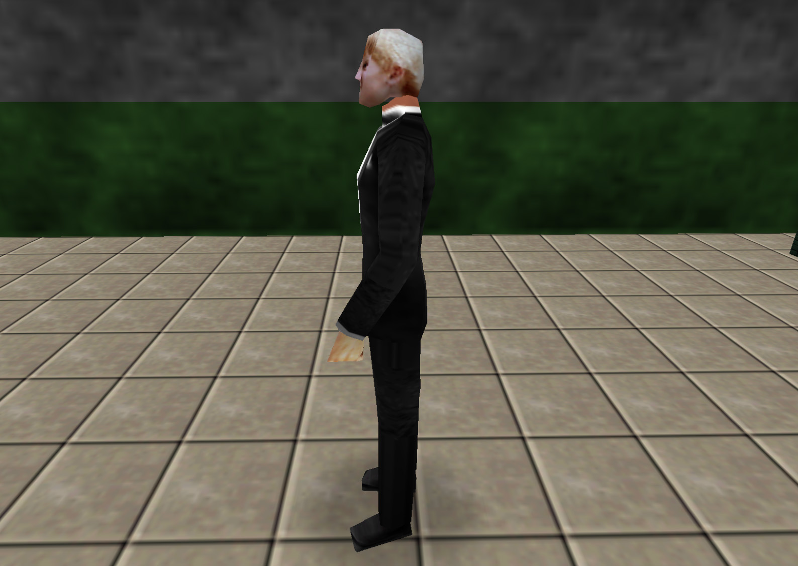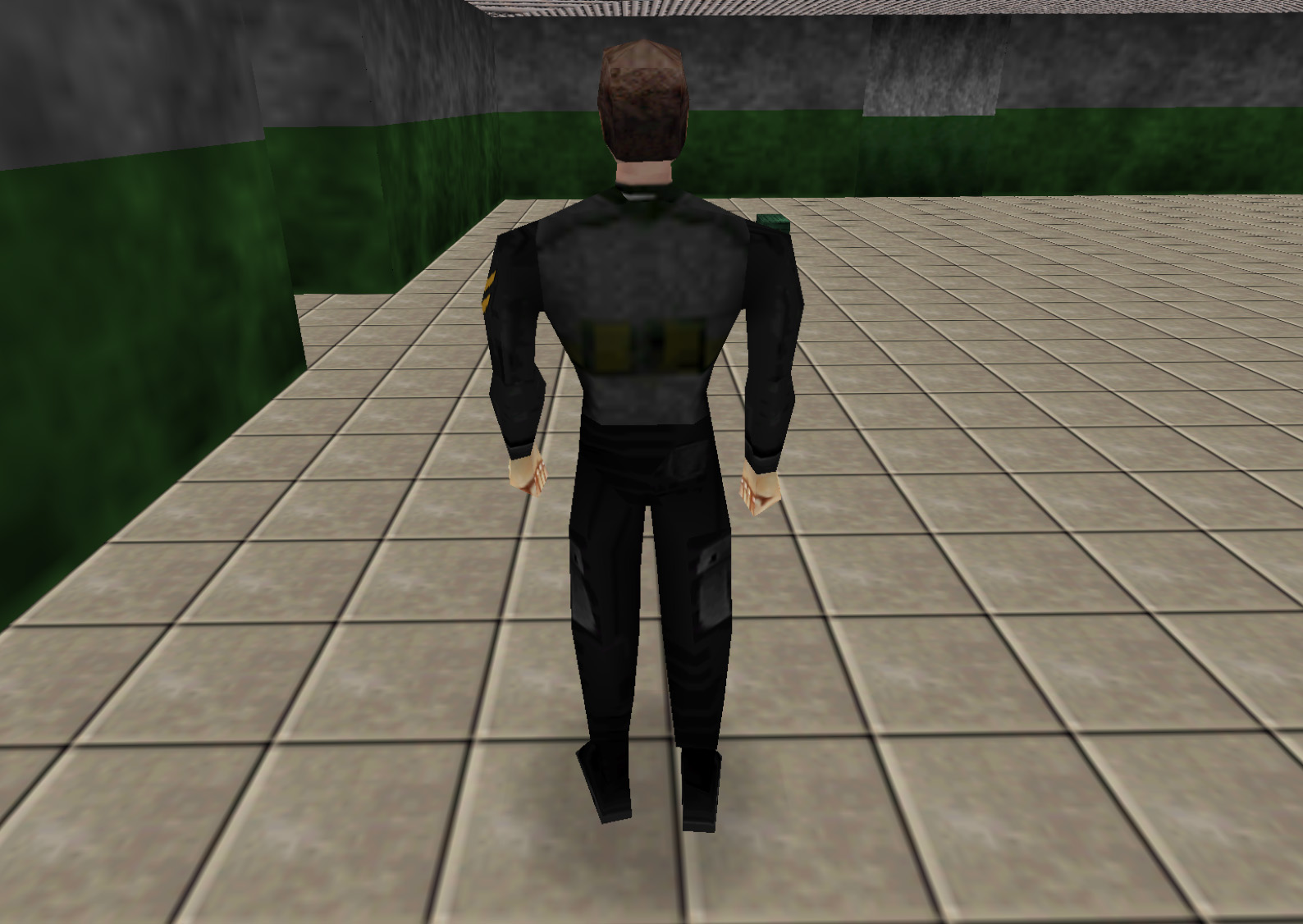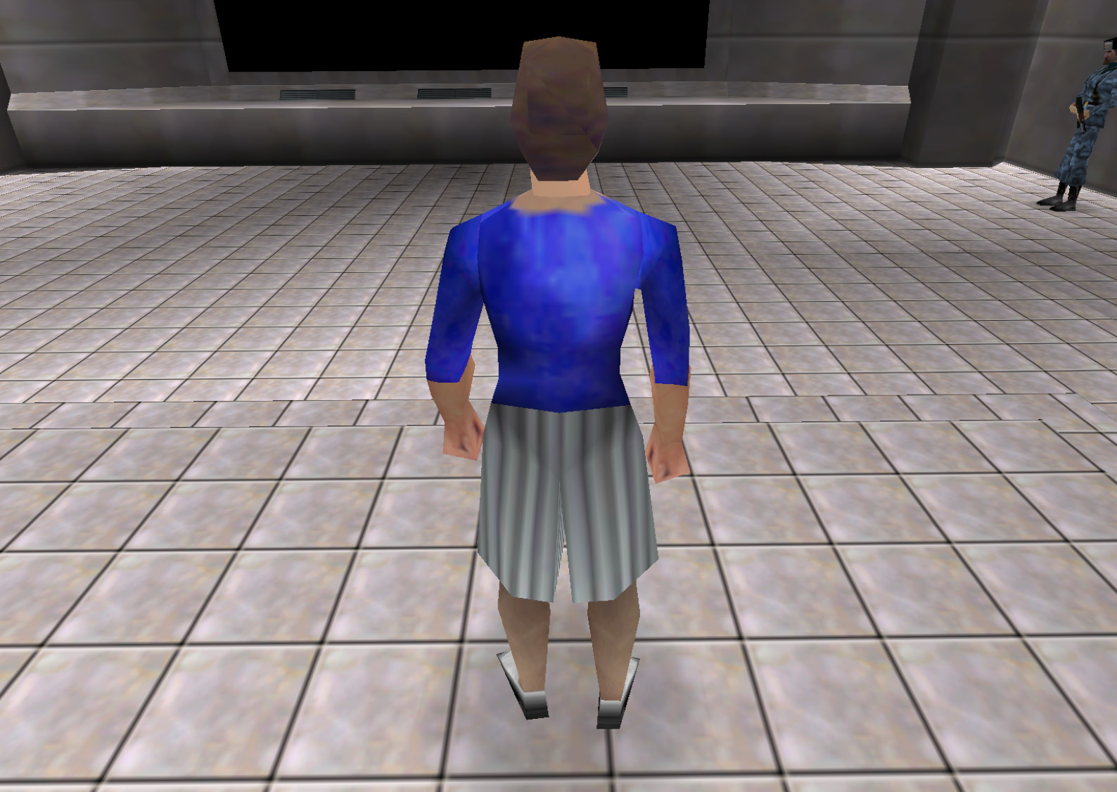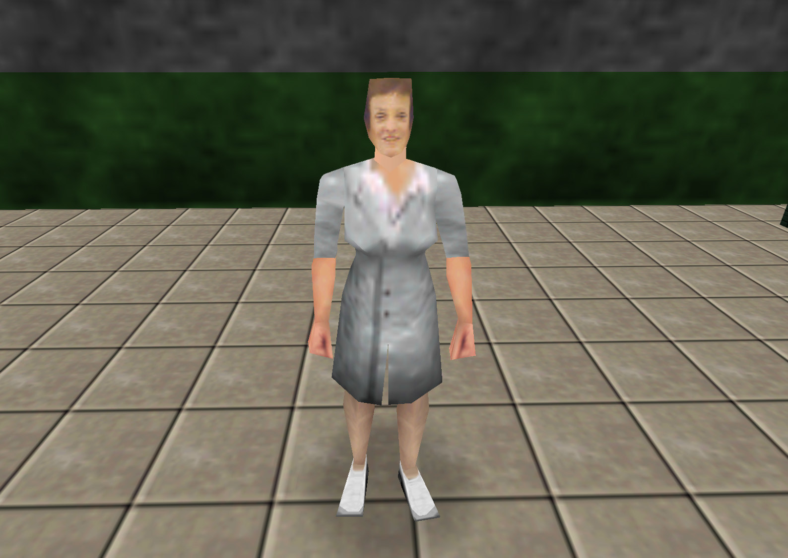 These three characters exist on every GoldenEye ROM, but there is no way to access them without a cheating device. They don't even have official names. I used the GoldenEye Setup Editor to add them to Bunker 2. Blue woman uses a random female head and the other two use a random male head.