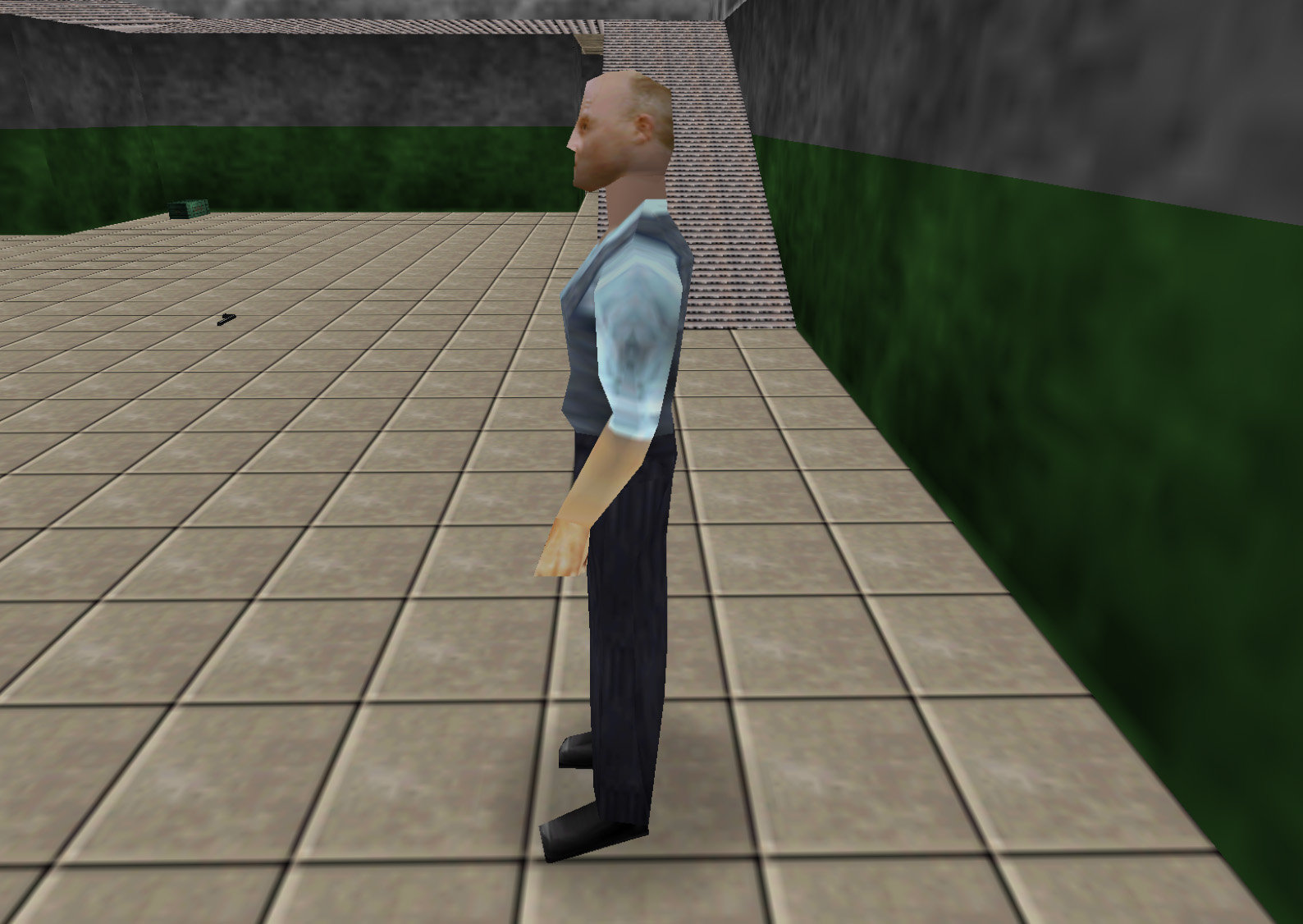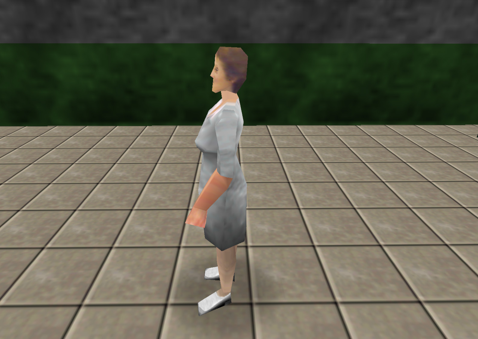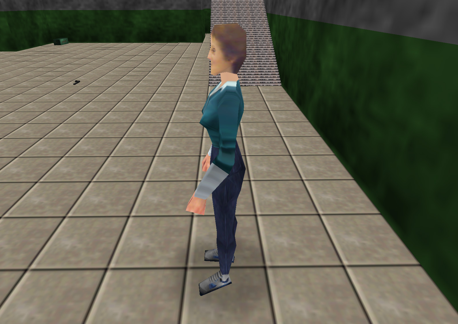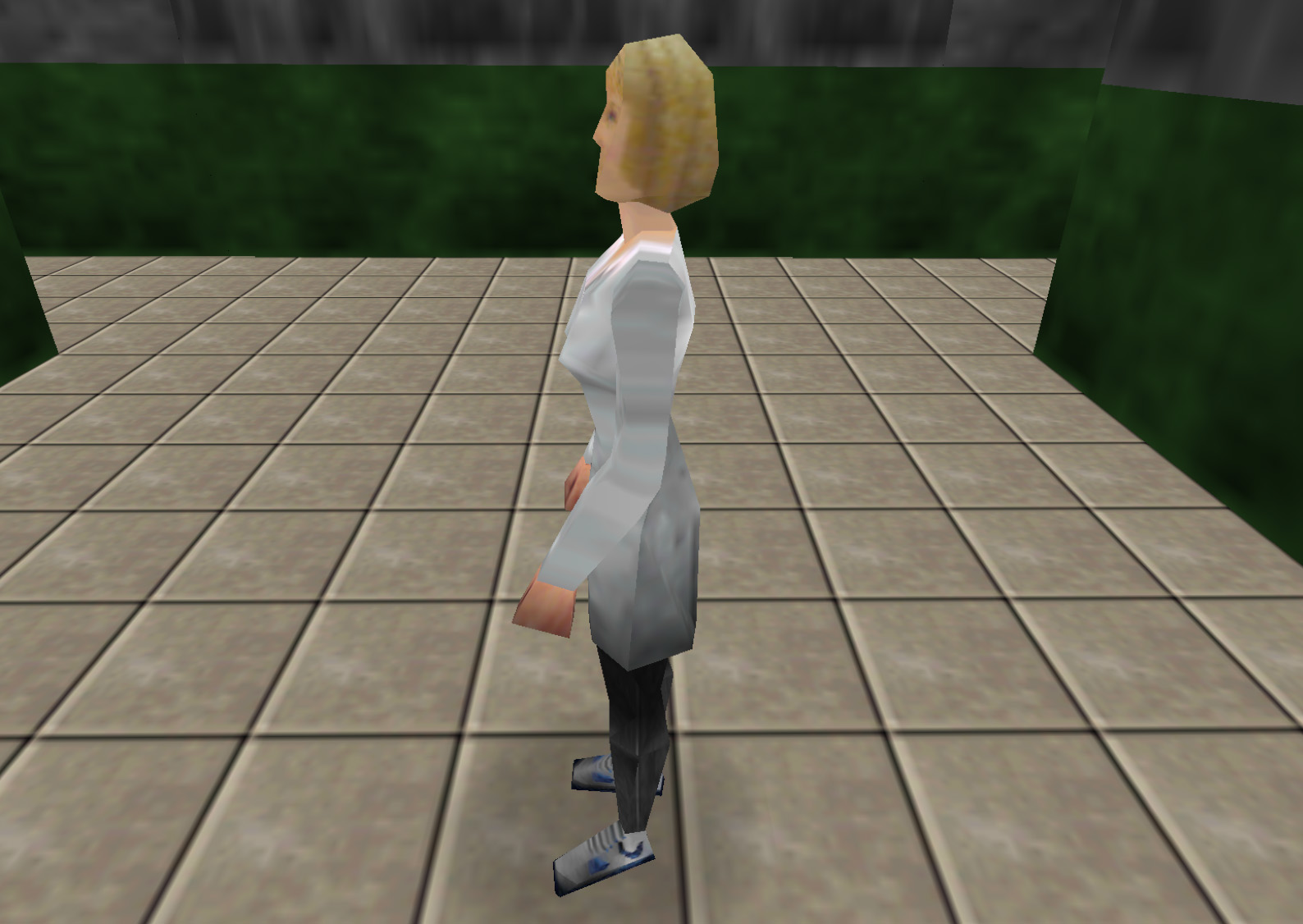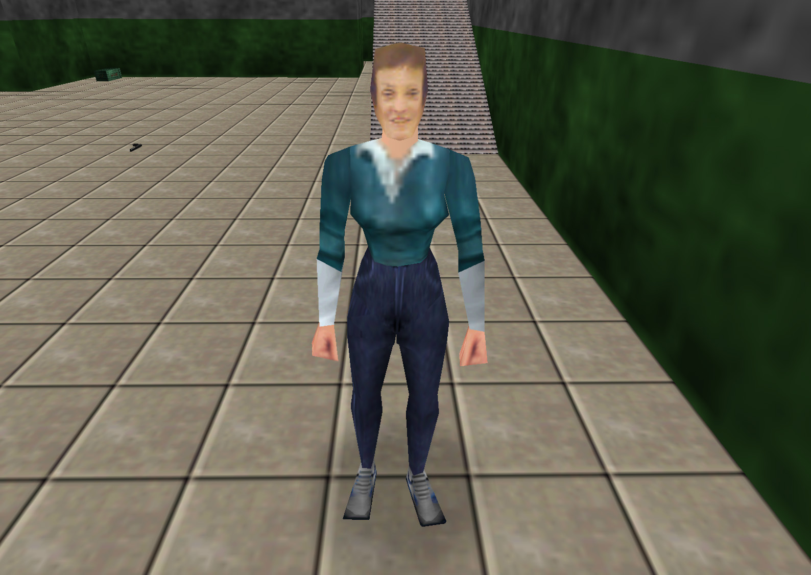 These three characters exist on every GoldenEye ROM, but there is no way to access them without a cheating device. They don't even have official names. I used the GoldenEye Setup Editor to add them to Bunker 2. Blue woman uses a random female head and the other two use a random male head.