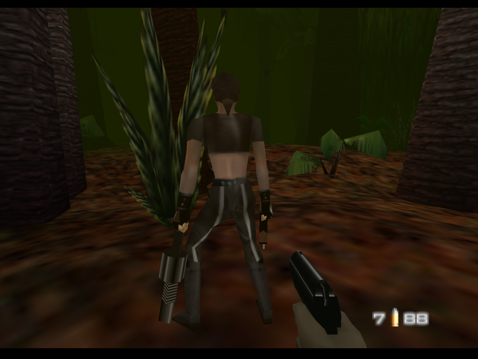 The sadistic henchwoman Xenia ambushes Bond on the Jungle level. She's mentioned in the Frigate briefing, but does not appear there. Her line in Jungle, "This time, Mr. Bond, the pleasure will be all mine" implies she has met Bond before. These facts have led many players to speculate that Xenia was once intended to appear in the Frigate mission like she does in the movie.