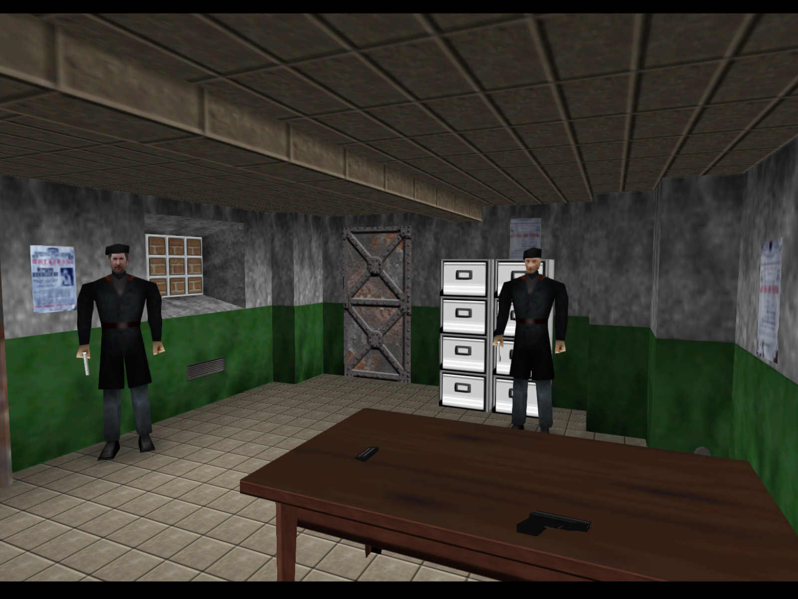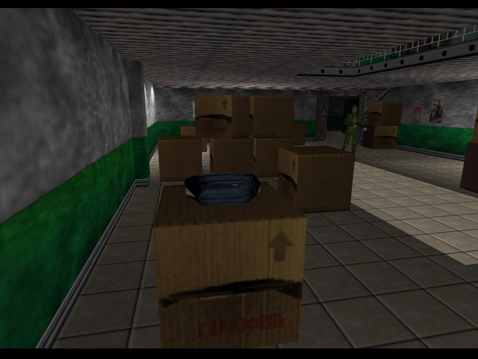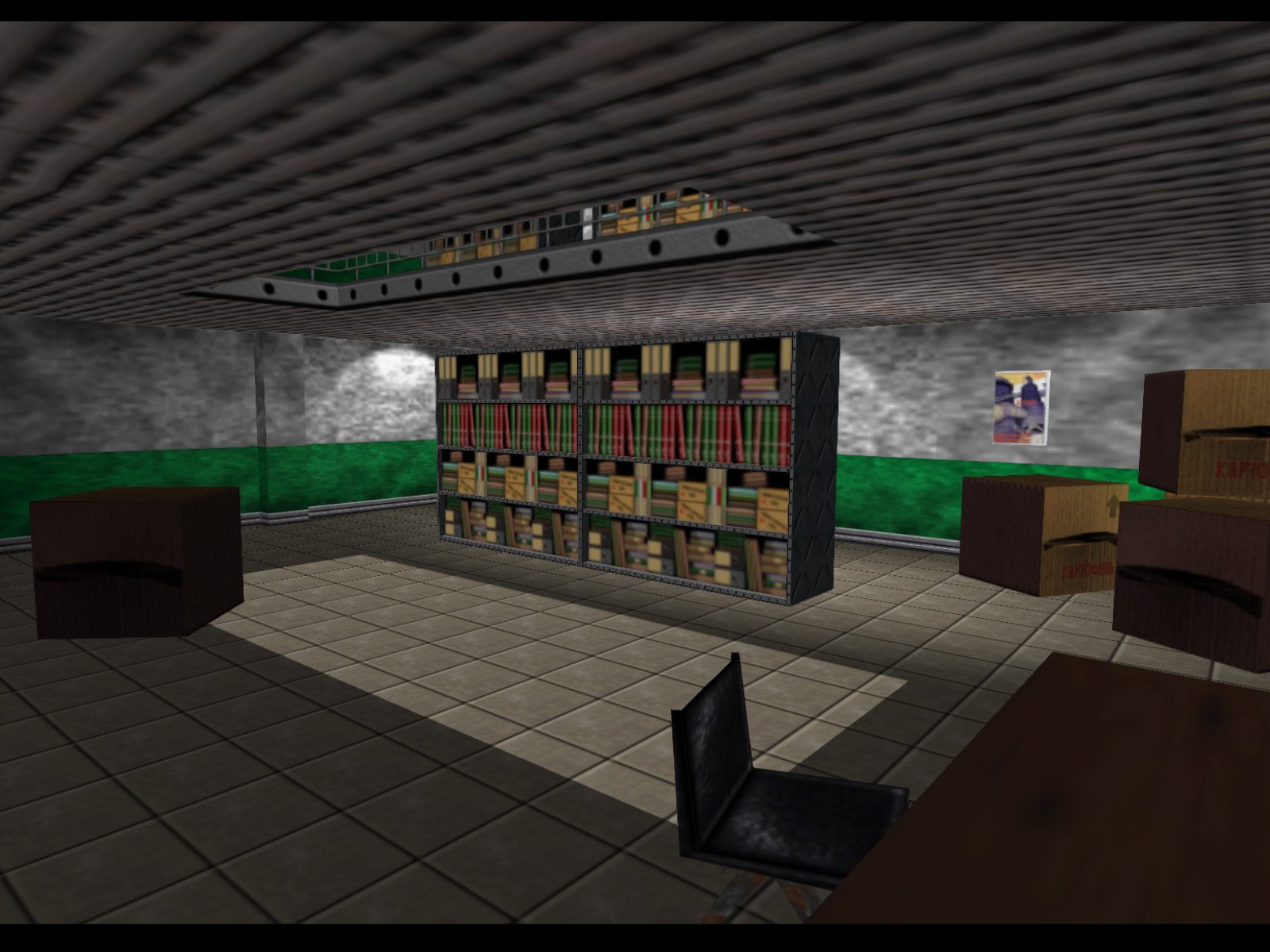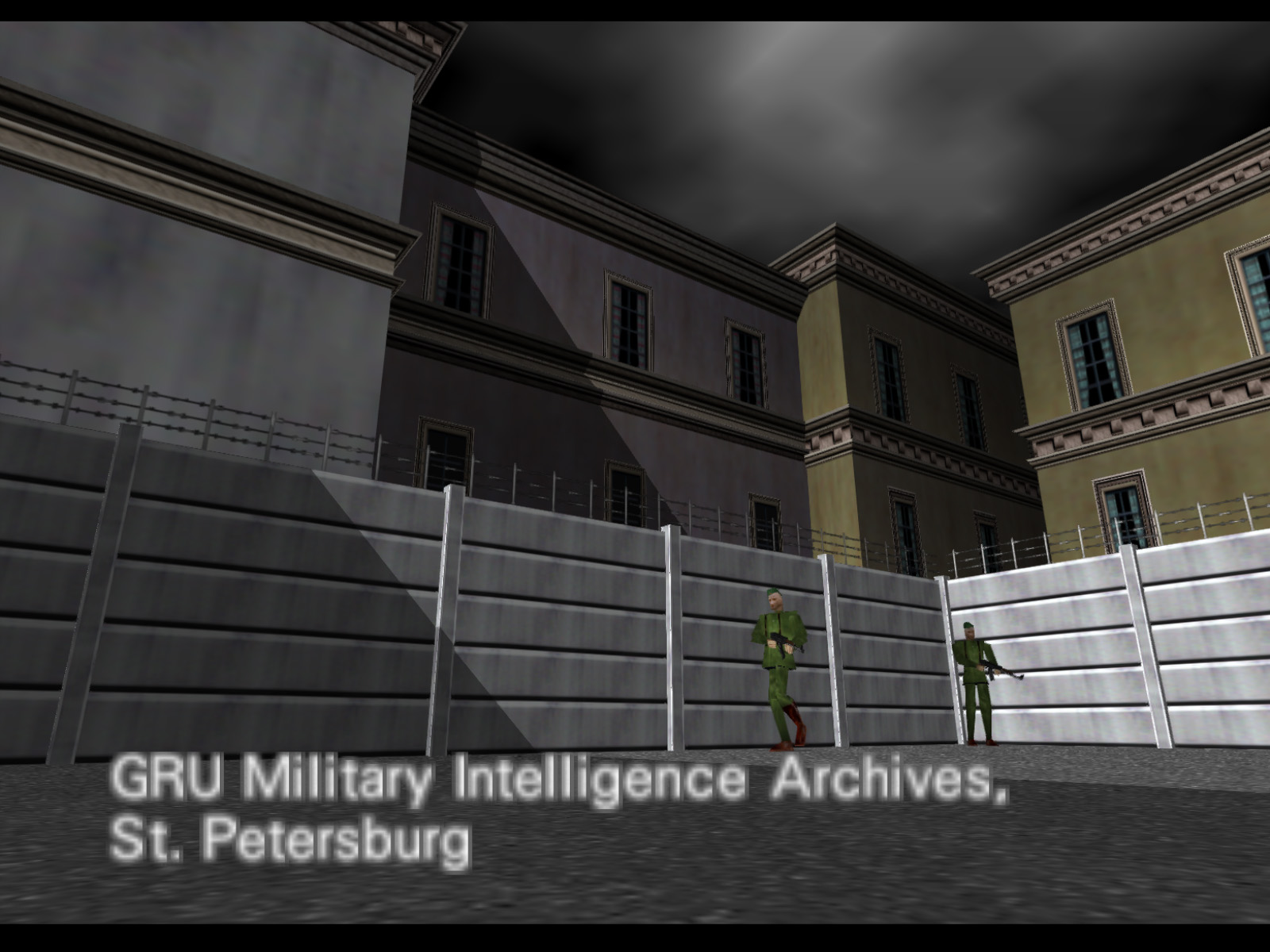 The Archives scenes in the GoldenEye movie are pretty extensive and the set has more rooms than a lot of the other locales. Even so the game developers had to add more rooms to make Archives a complete level. There are two floors with the first floor mostly being storage for cardboard boxes. The second floor has offices and seemingly endless bookshelves. There is also a courtyard, an attic, two secret passageways, two interrogation rooms, and a large open room for reading. The walls throughout the map are plastered with Soviet propaganda posters, maps, and other documents. As one would expect by this point, the GRU library is packed with Russian Soldiers ready to prevent Bond and Natalya's escape. The only good news is that Dmitri Mishkin has become aware of General Ourumov's treachery and he is ready to assist you.