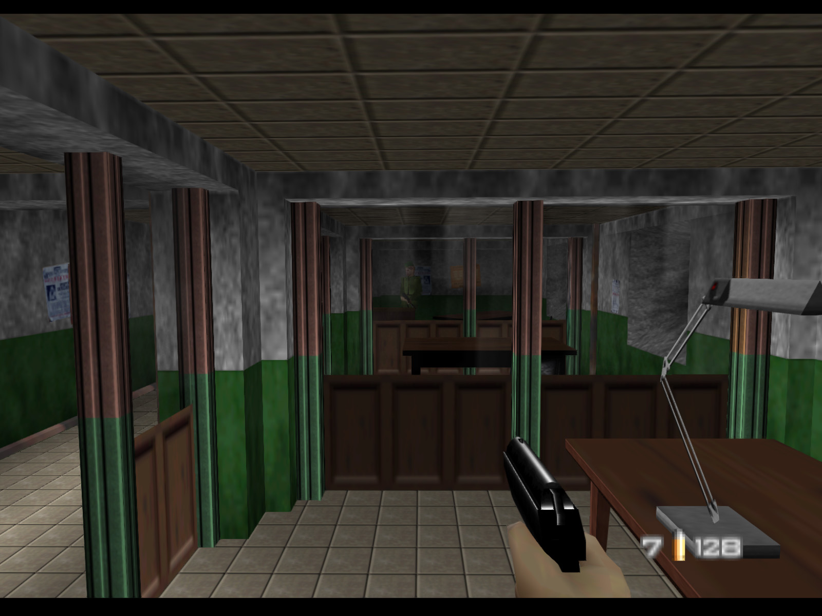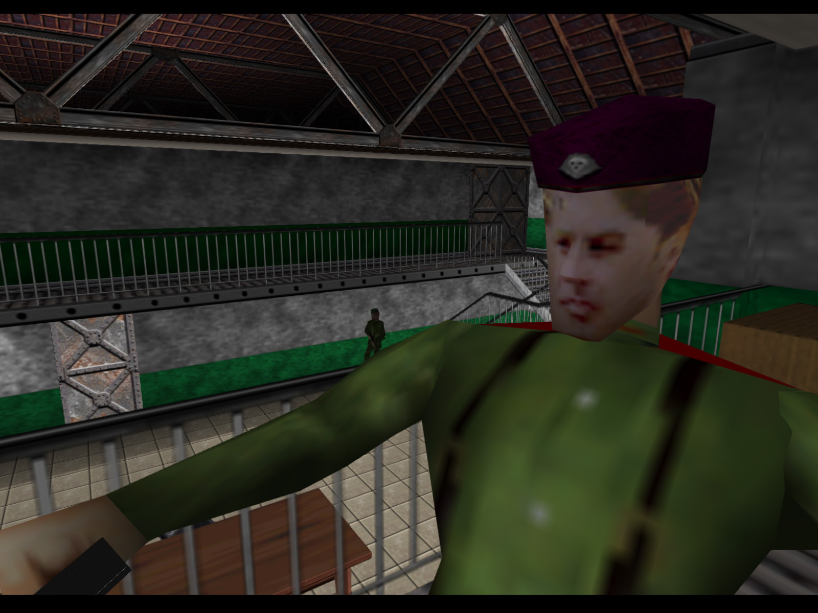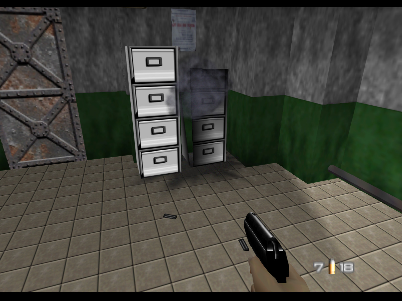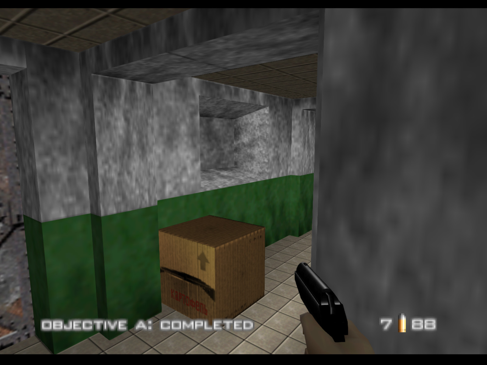The Archives scenes in the GoldenEye movie are pretty extensive and the set has more rooms than a lot of the other locales. Even so the game developers had to add more rooms to make Archives a complete level. There are two floors with the first floor mostly being storage for cardboard boxes. The second floor has offices and seemingly endless bookshelves. There is also a courtyard, an attic, two secret passageways, two interrogation rooms, and a large open room for reading. The walls throughout the map are plastered with Soviet propaganda posters, maps, and other documents. As one would expect by this point, the GRU library is packed with Russian Soldiers ready to prevent Bond and Natalya's escape. The only good news is that Dmitri Mishkin has become aware of General Ourumov's treachery and he is ready to assist you.