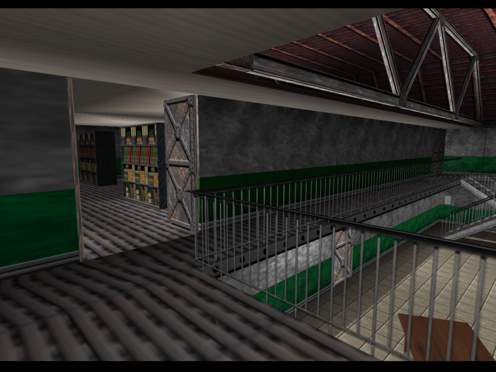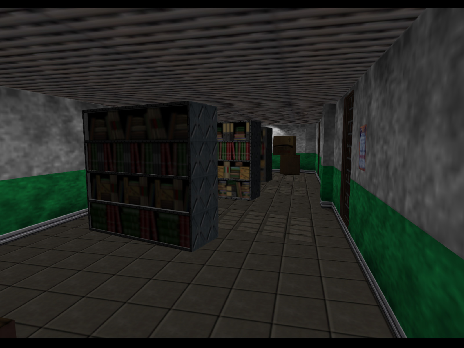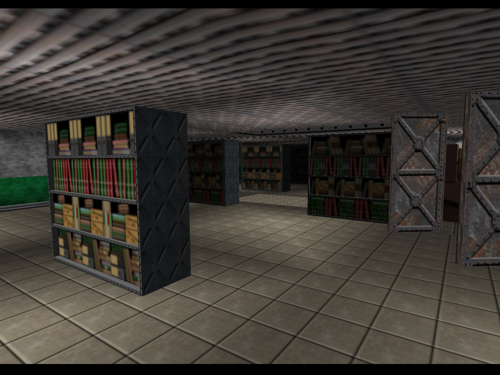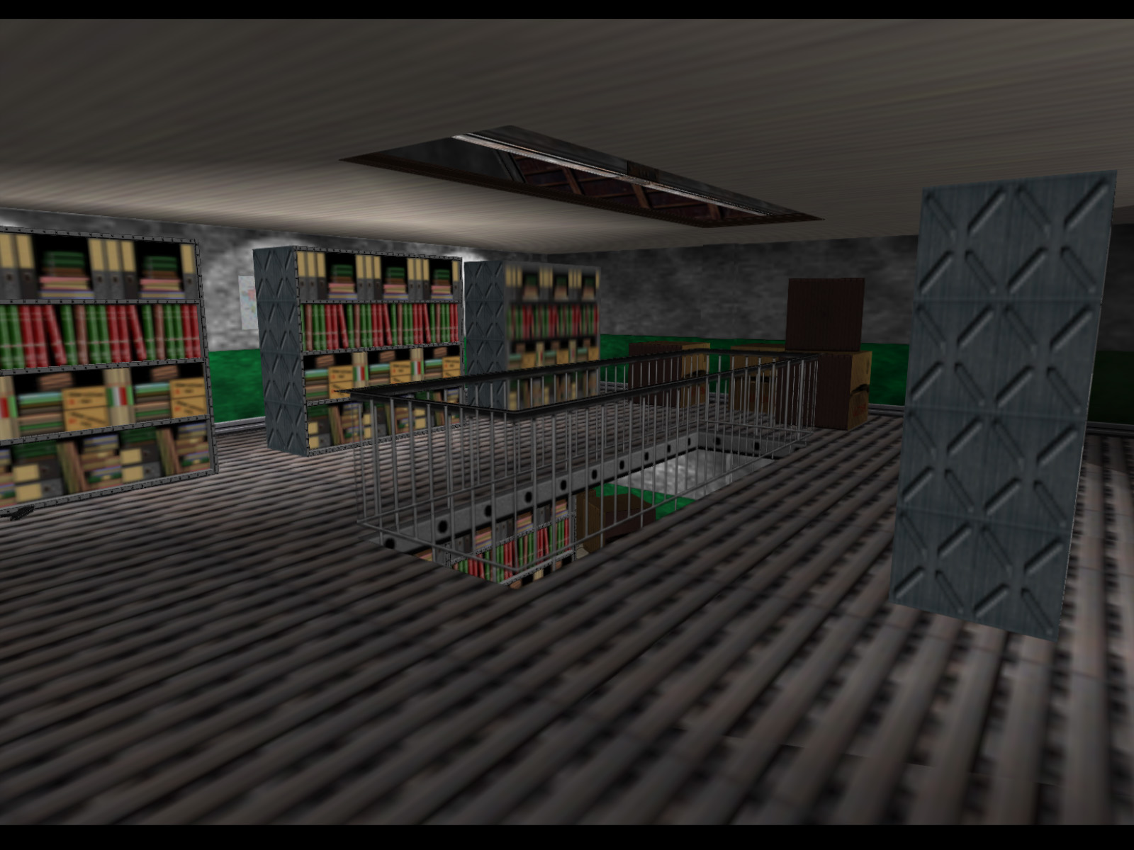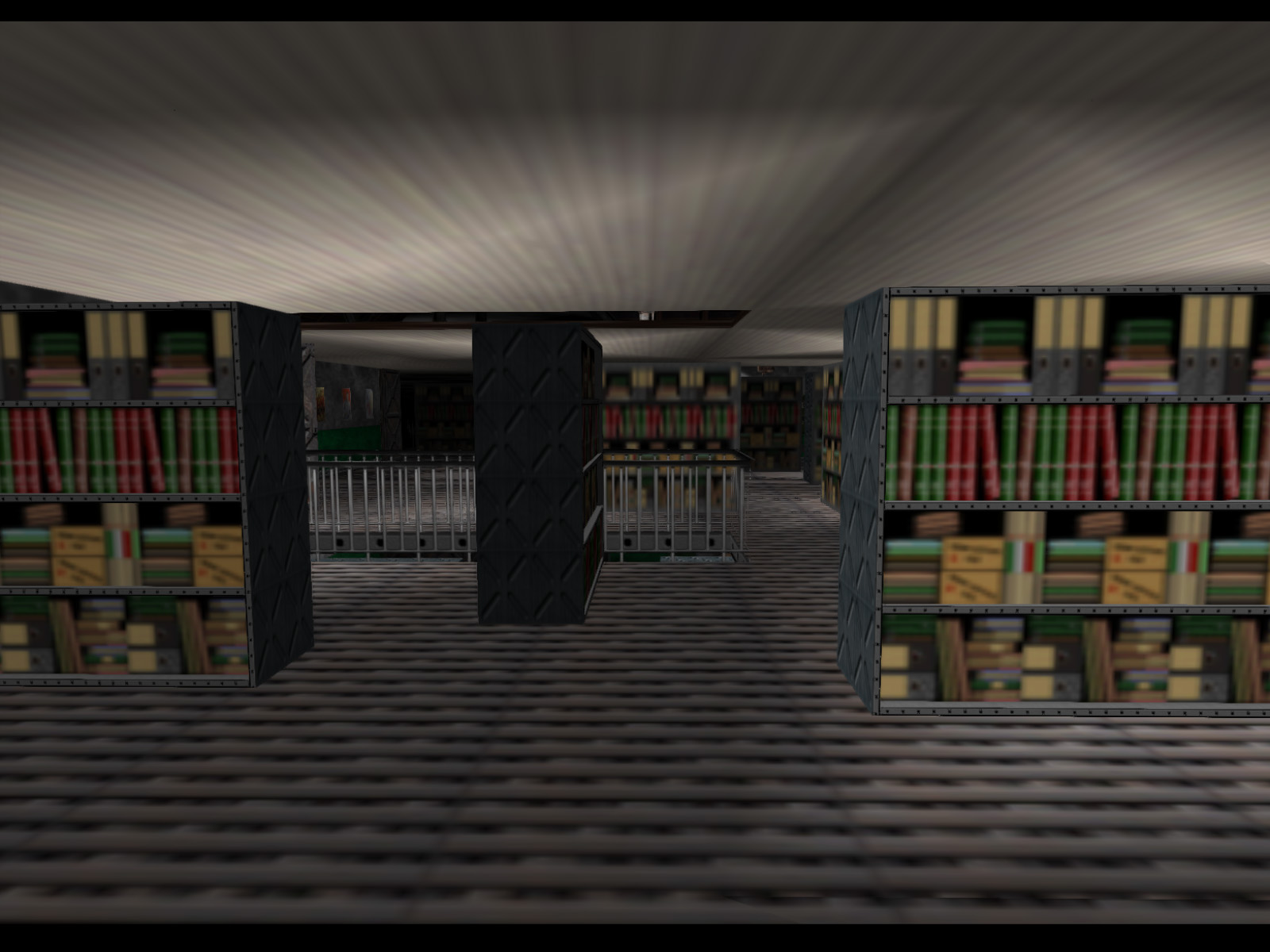 Doing a half turn from the last screenshot and going through another set of double doors takes you to the last room of the stacks.