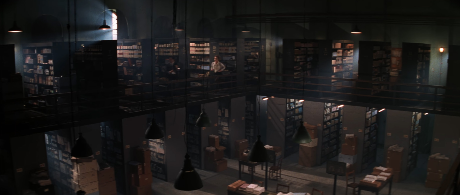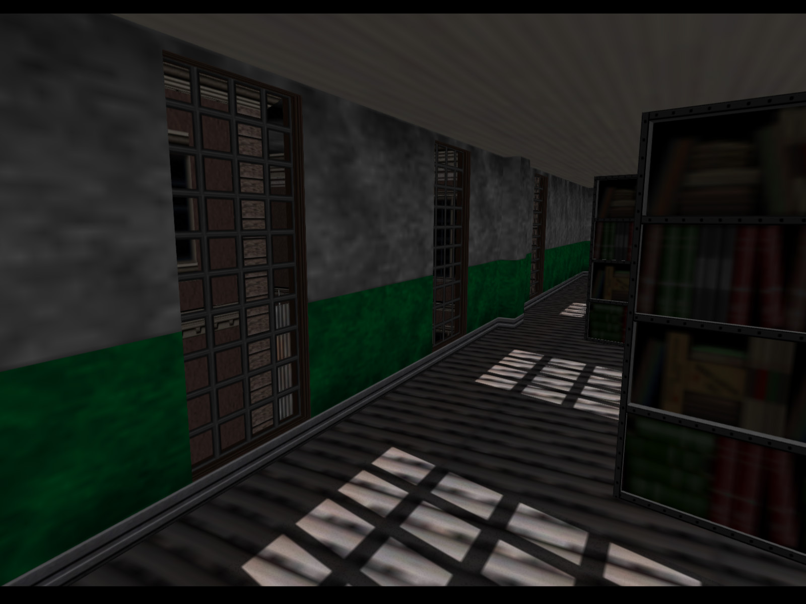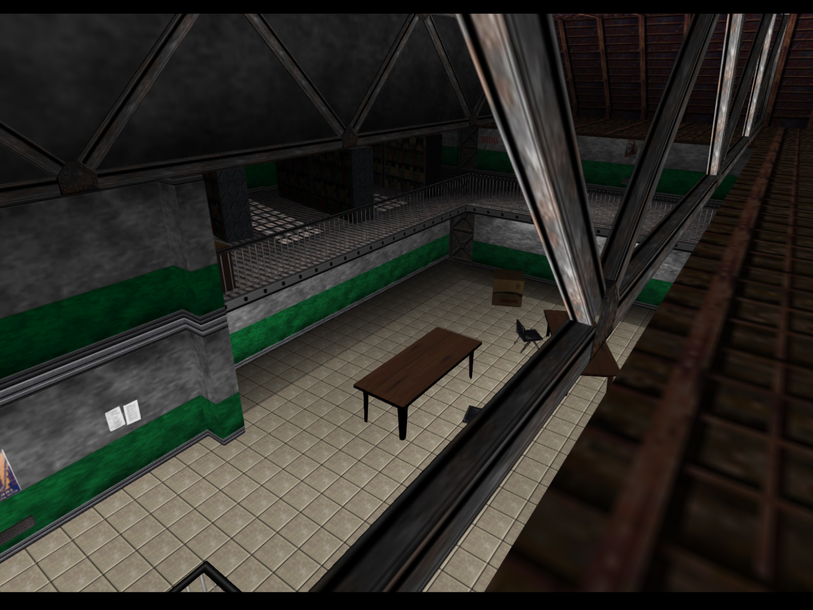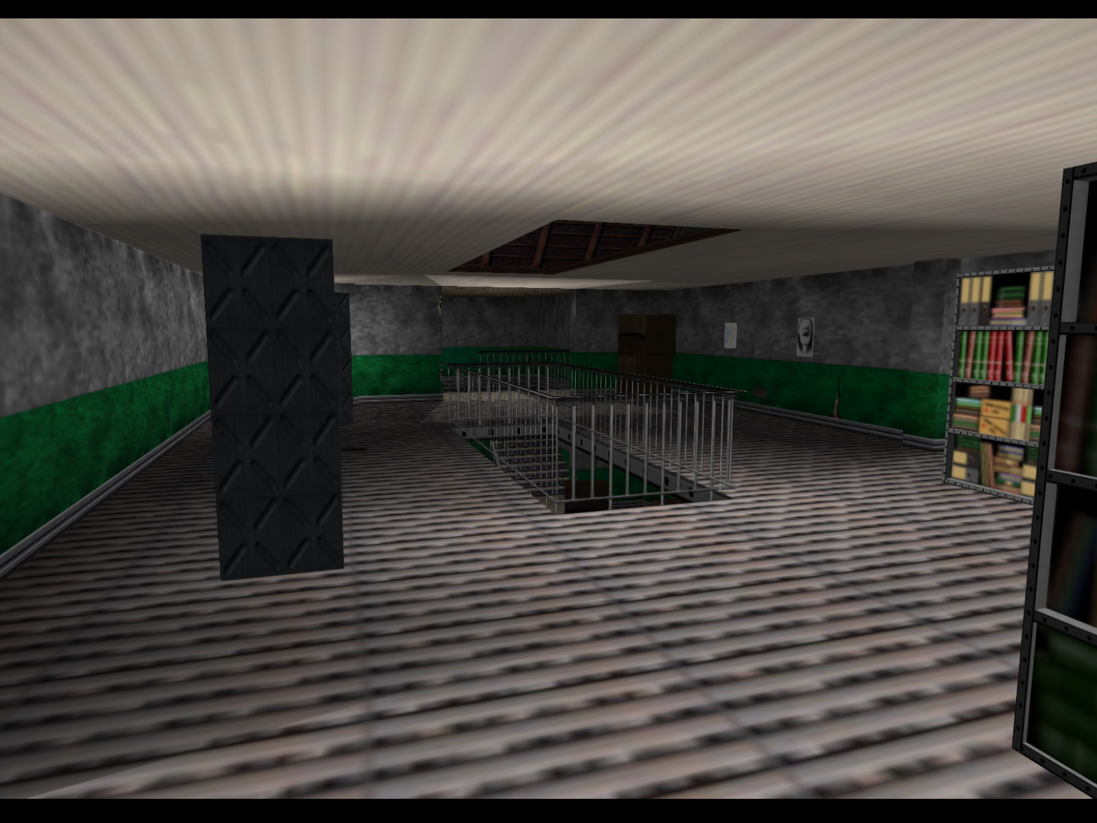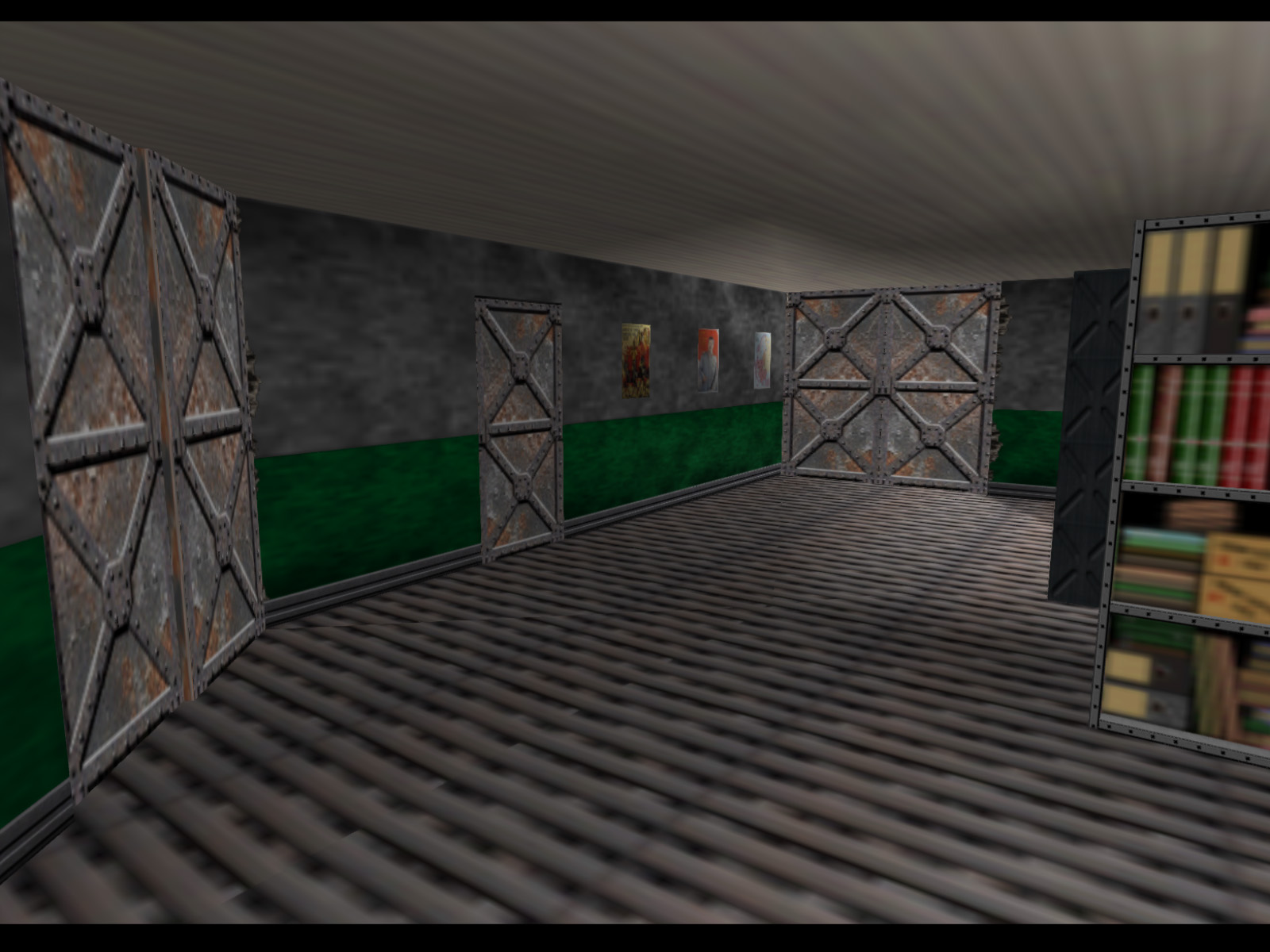 Doing a half turn from the last screenshot and going through another set of double doors takes you to the last room of the stacks.
