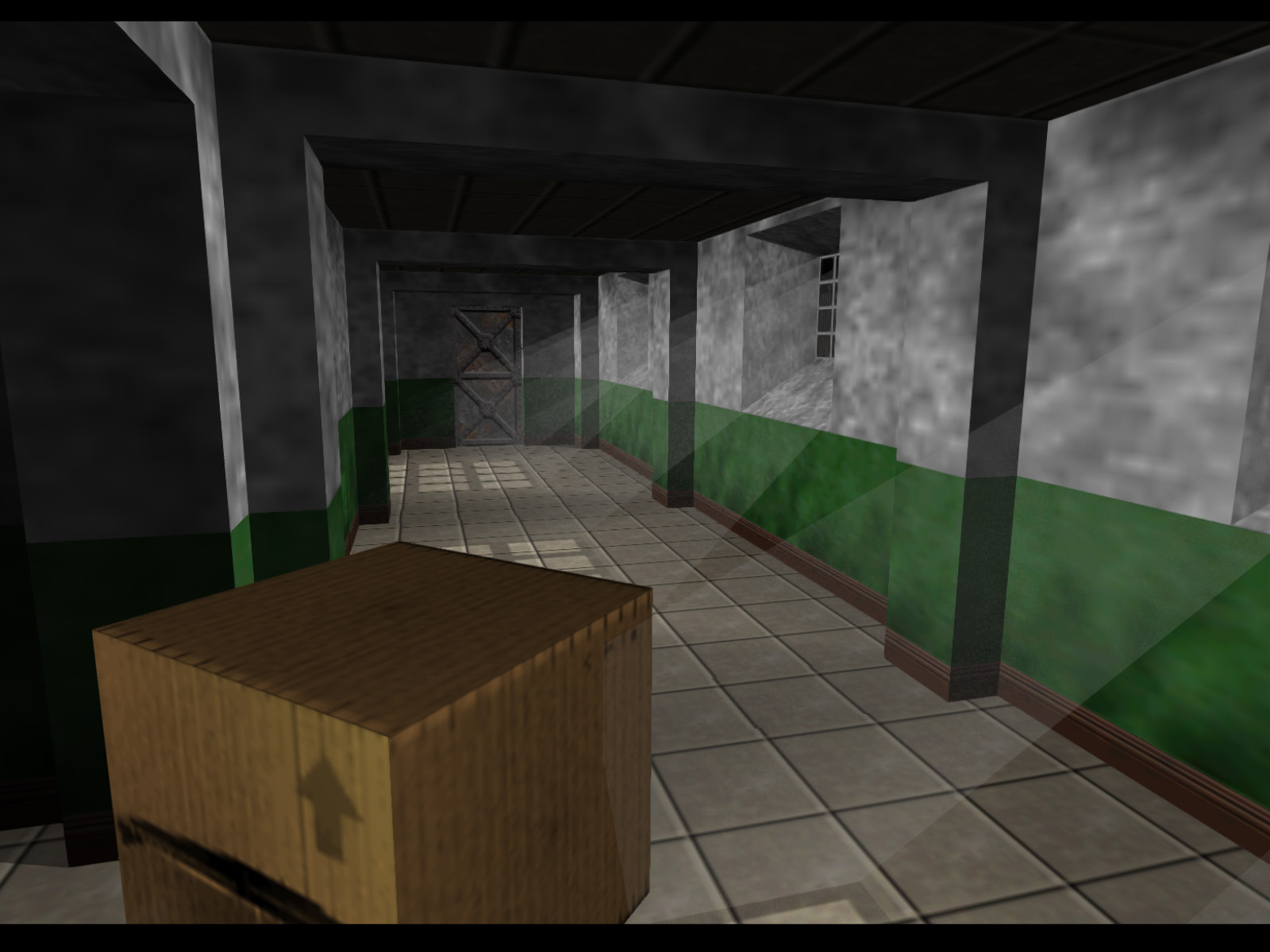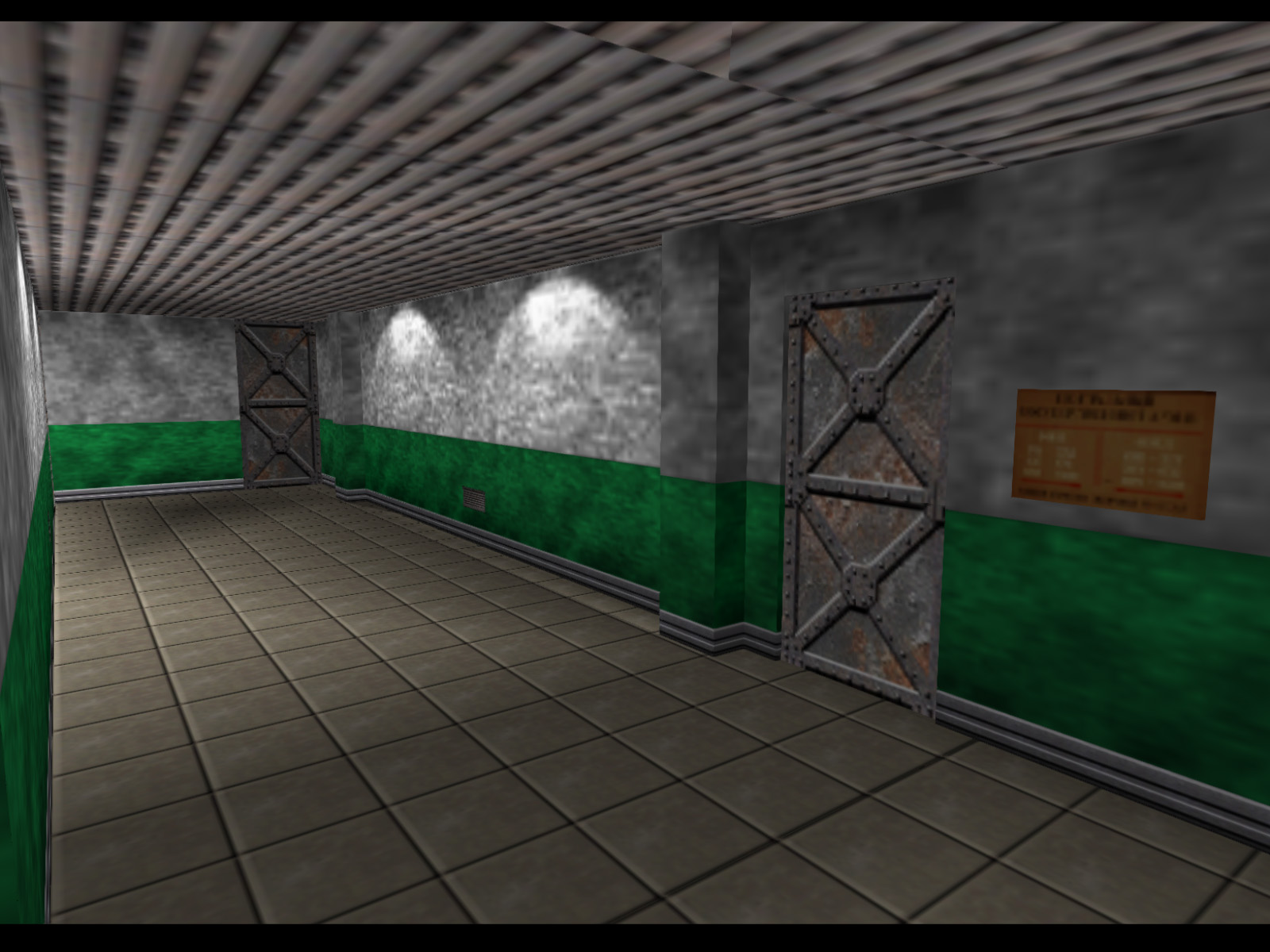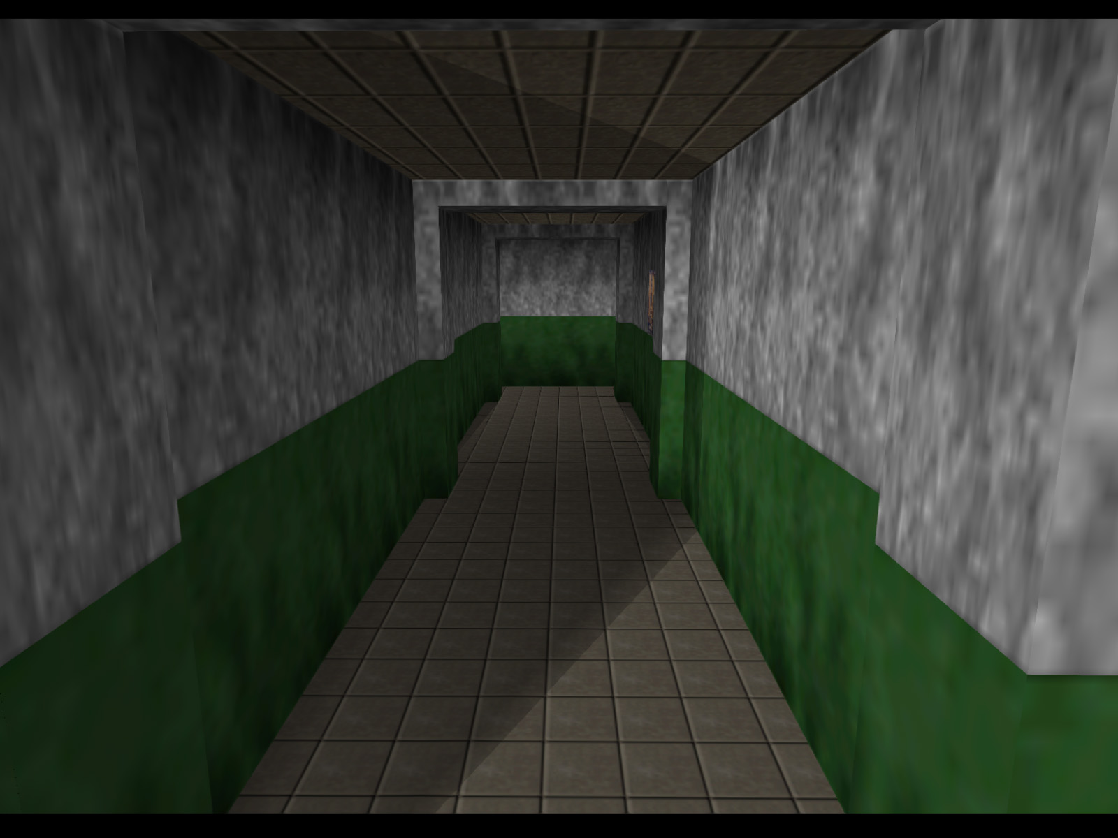 At the end of the large room from two screenshots ago we find this hall with two doors. We want to go through the one on the right.
