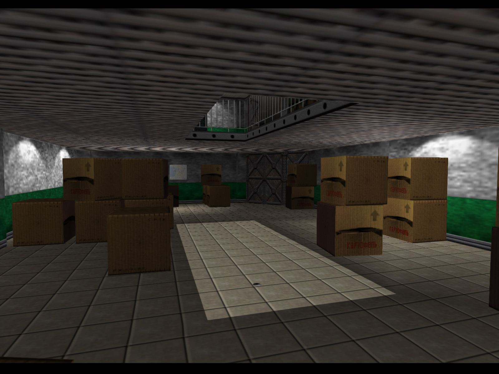 The door at the far end of the last screenshot takes you to this final room of cardboard boxes and bookshelves.