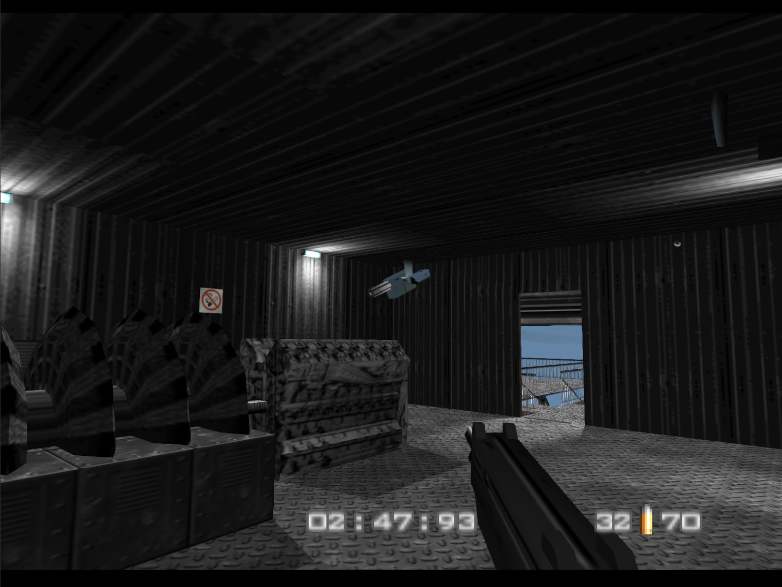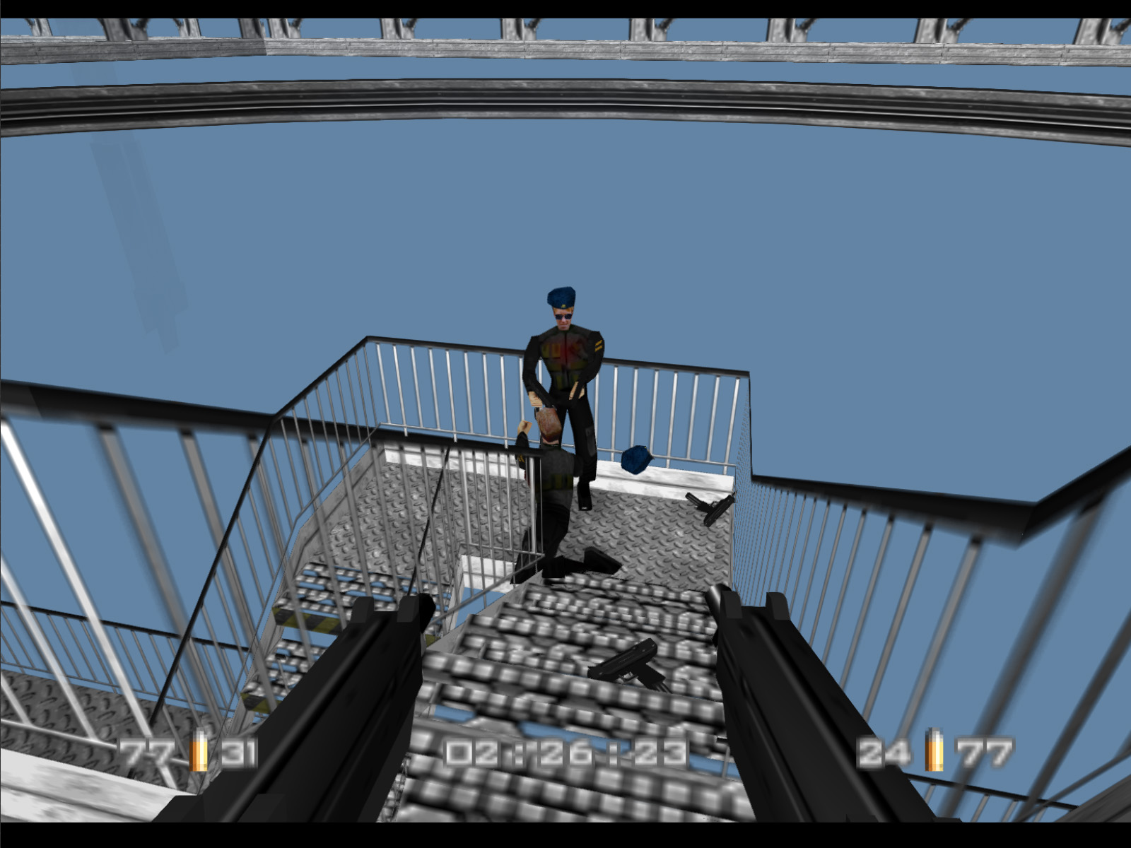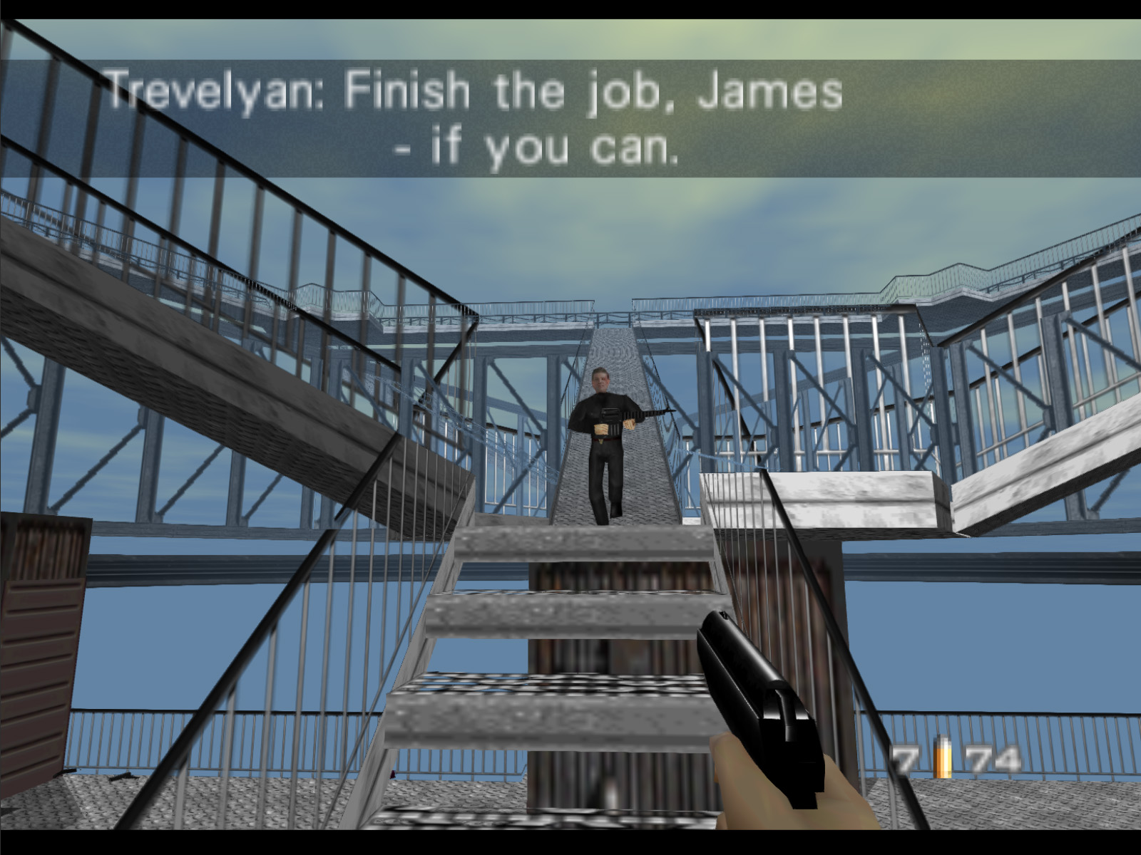 At the bottom of the platform Trevelyan draws his AR33 and takes his best shot at you. It's important to dispatch him quickly so he cannot knock you off the small platform.