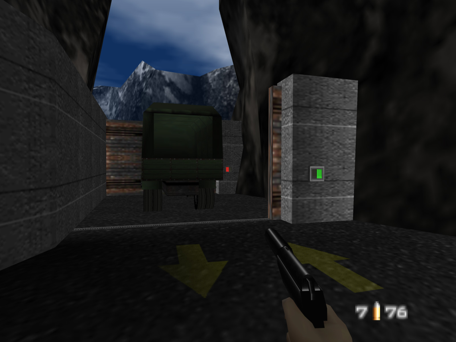 Dam is the first level of GoldenEye 007. No tutorials. No training missions. You're thrown right into the action. The level consists of three large areas bounded by cliffs, a vehicle tunnel, the top of the dam, the tunnels below the dam, and docks behind the dam. Soviet military presence is high. Interspersed in these areas you'll find six guard towers, each with a patrolling guard. There's even a pillbox that houses two guards, making them difficult to hit.