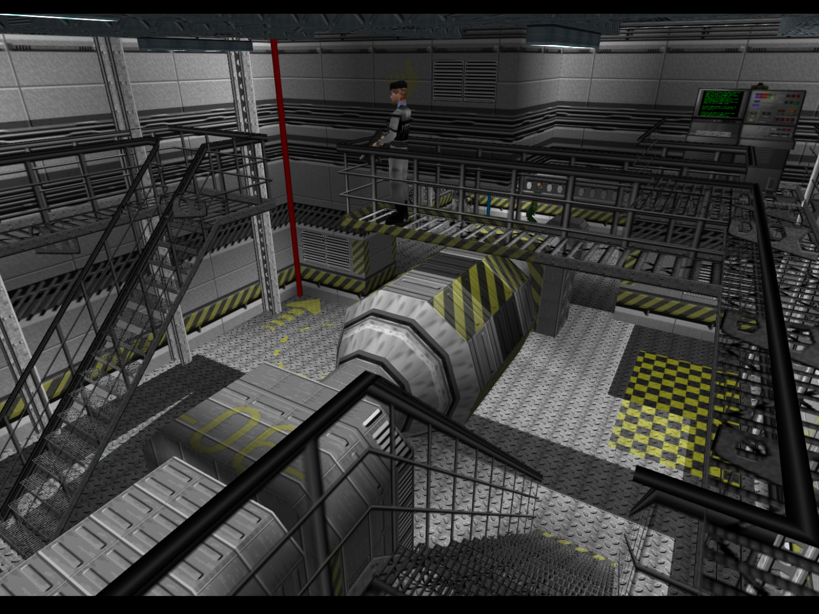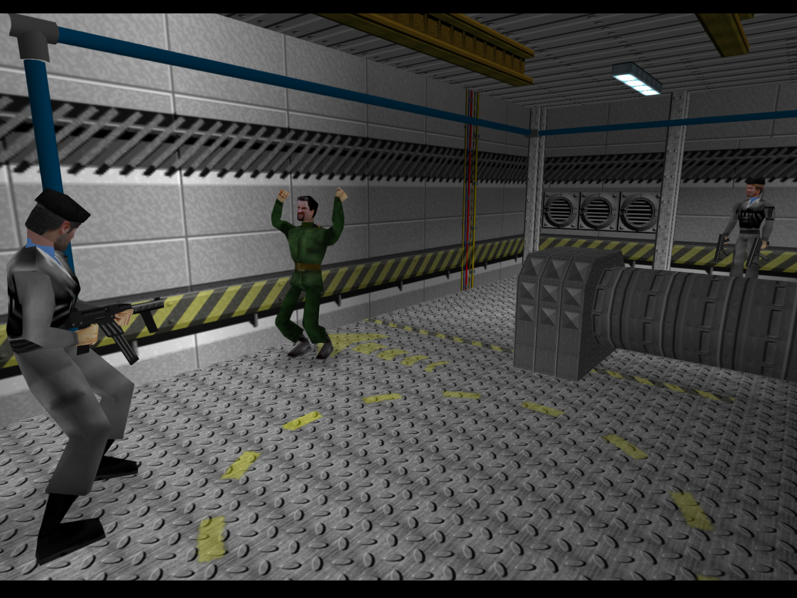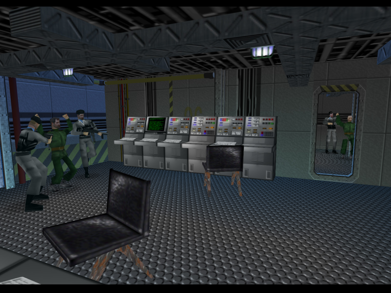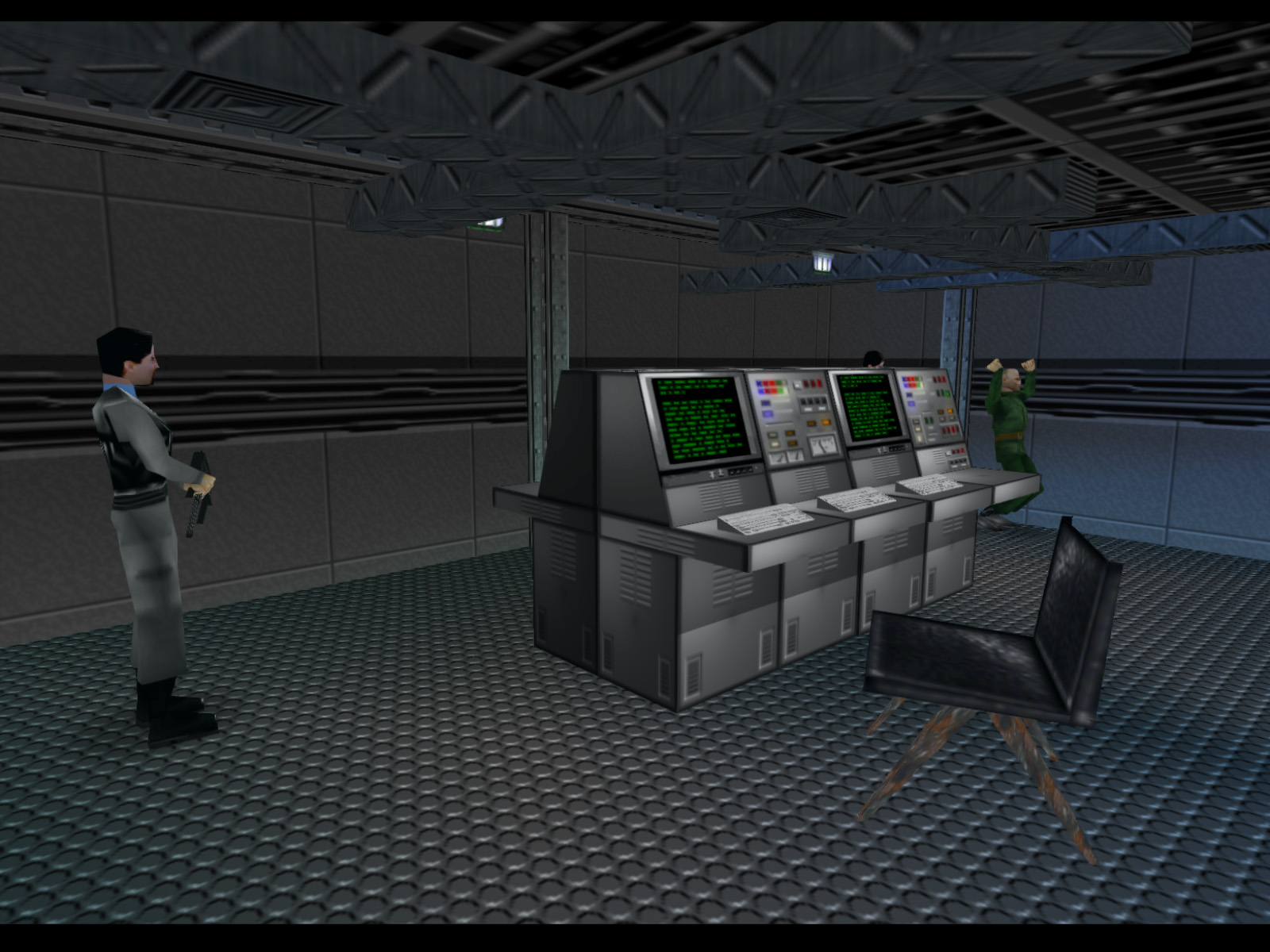 In the last screenshot, if you go down the corridor and to the right you will enter this room with a bunch of consoles and a hostage. The adjacent room also has a hostage so be careful not to enter the line of sight of his executioner before you are ready.