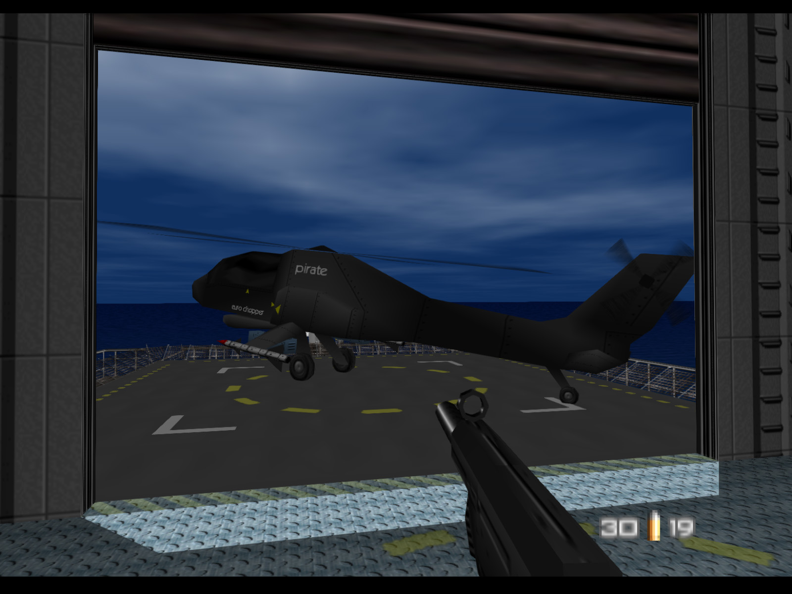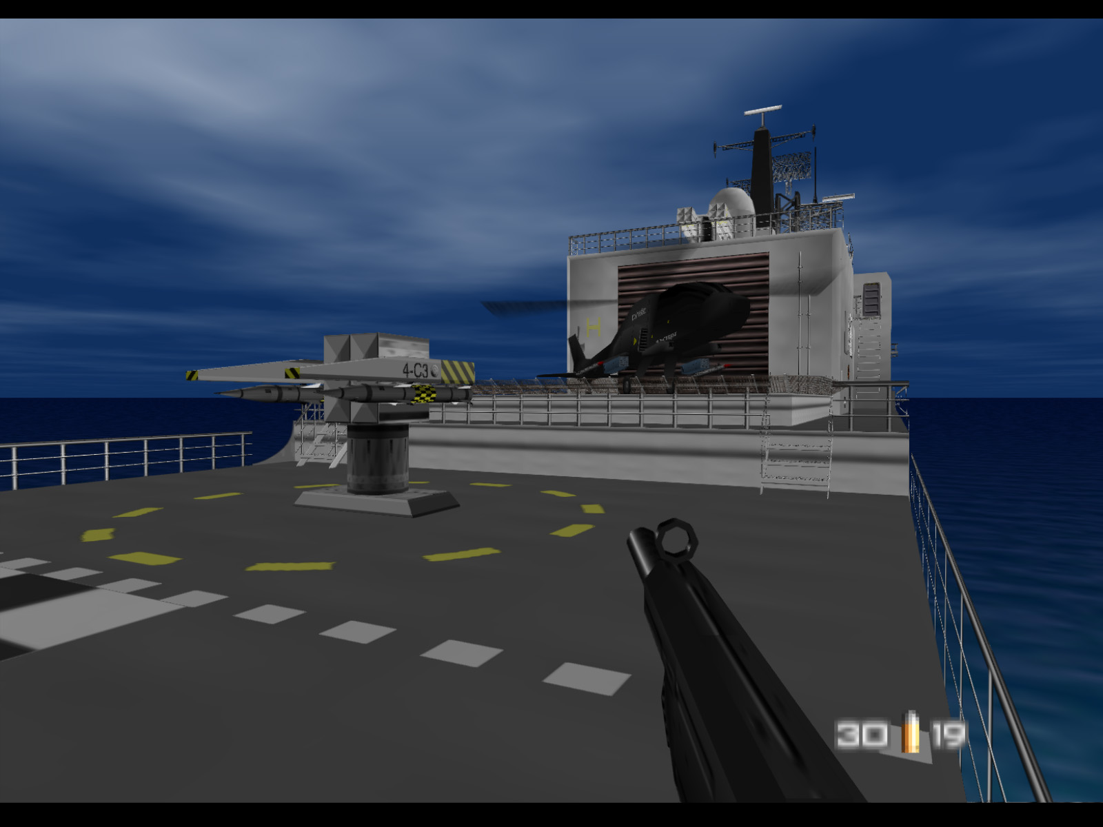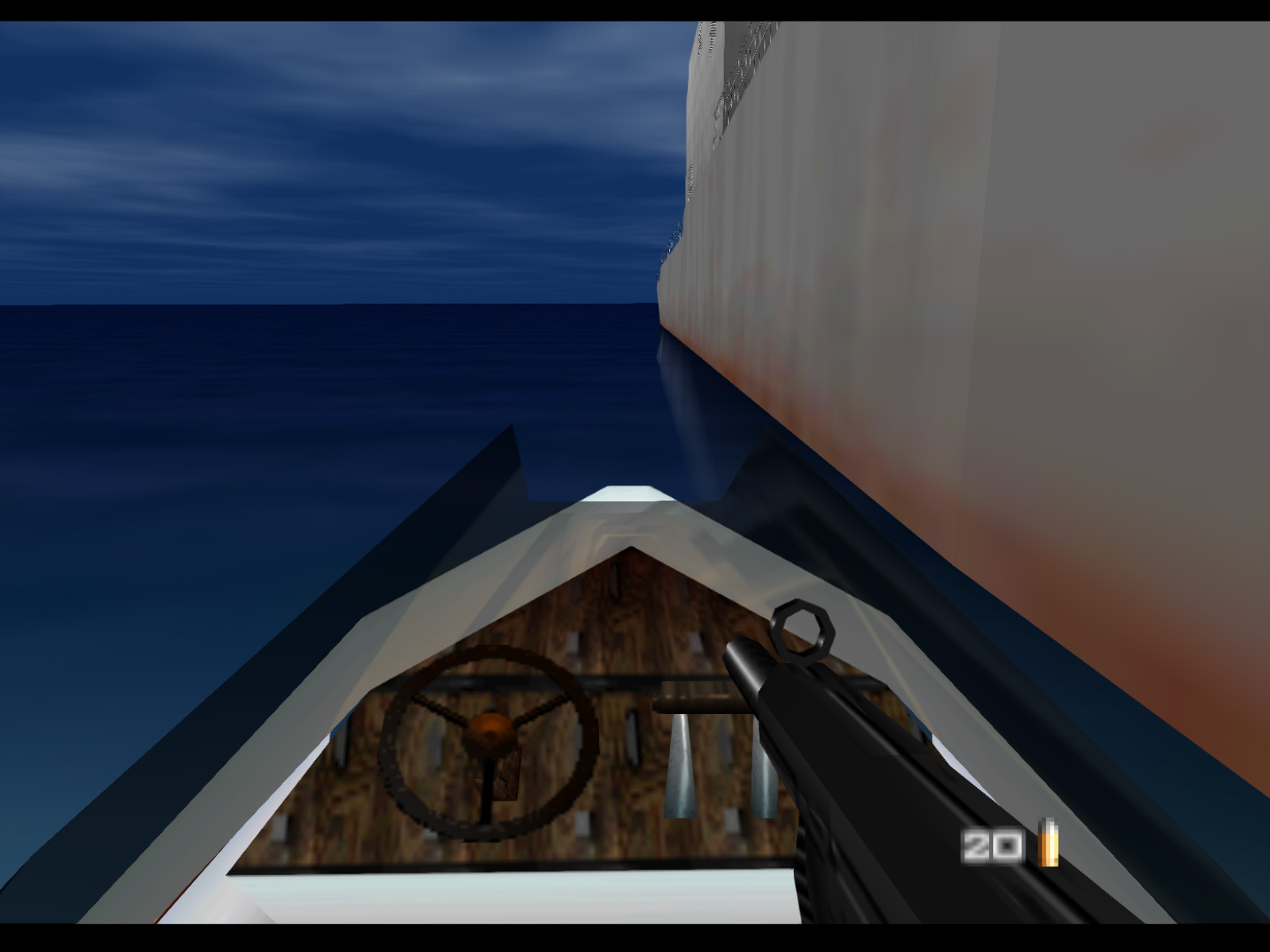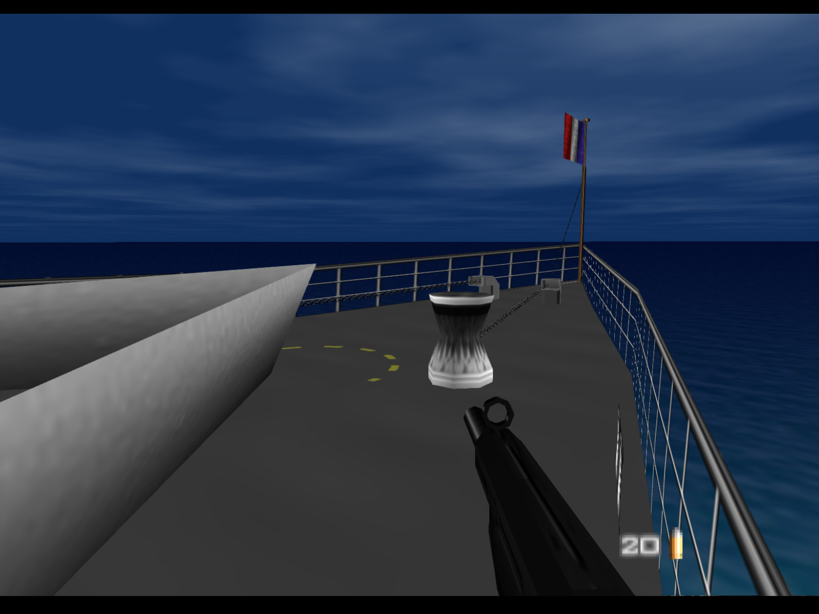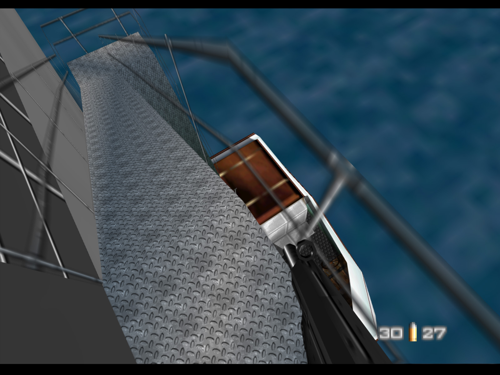 Bond starts Frigate at the helm of this speedboat pulled up alongside the La Fayette. Unfortunately you begin with only 20 rounds for your Silenced D5K. Maybe MI6 really is cutting their budget these days.