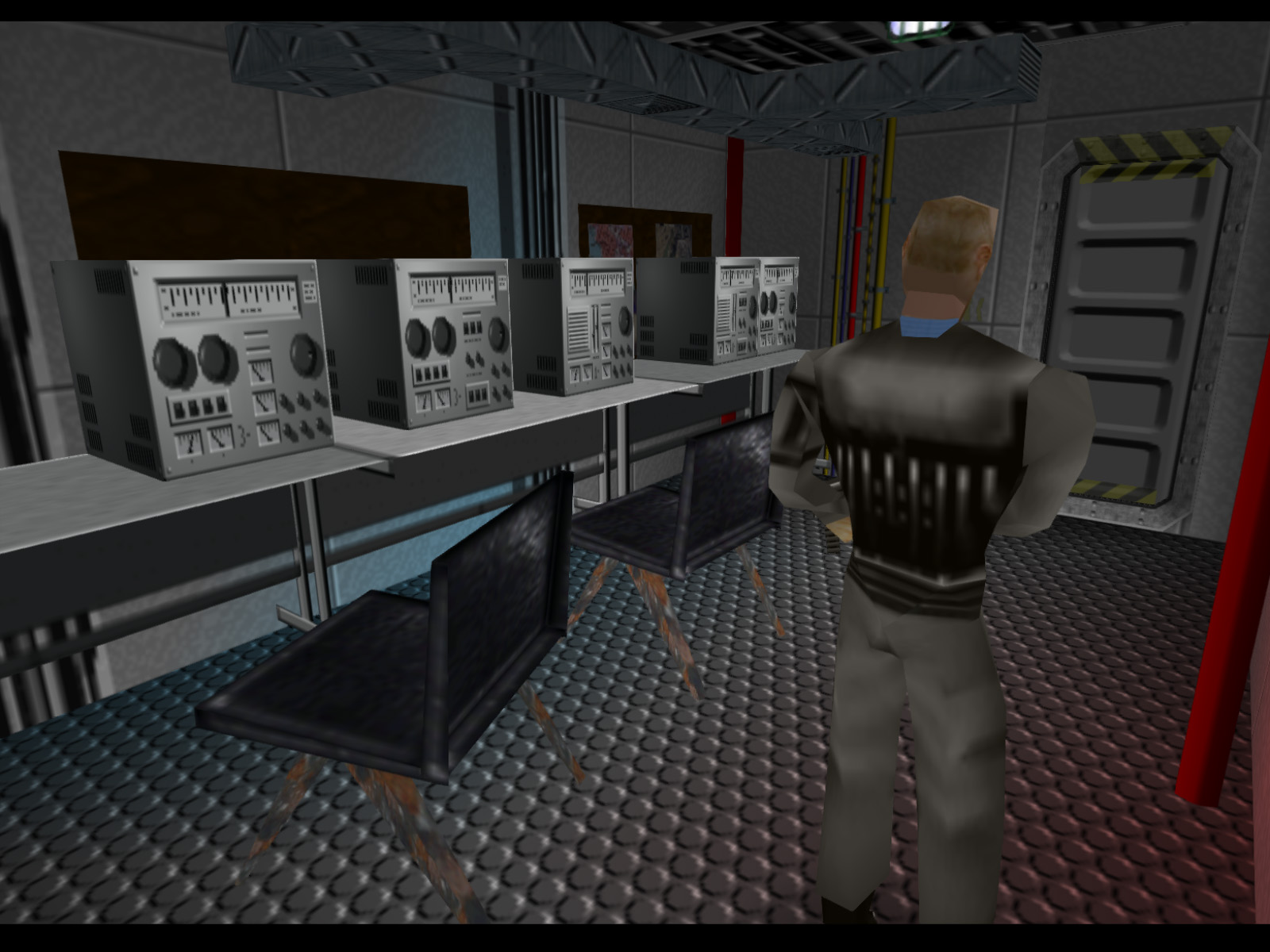 The other interior facing door of the bridge leads to this radio room.