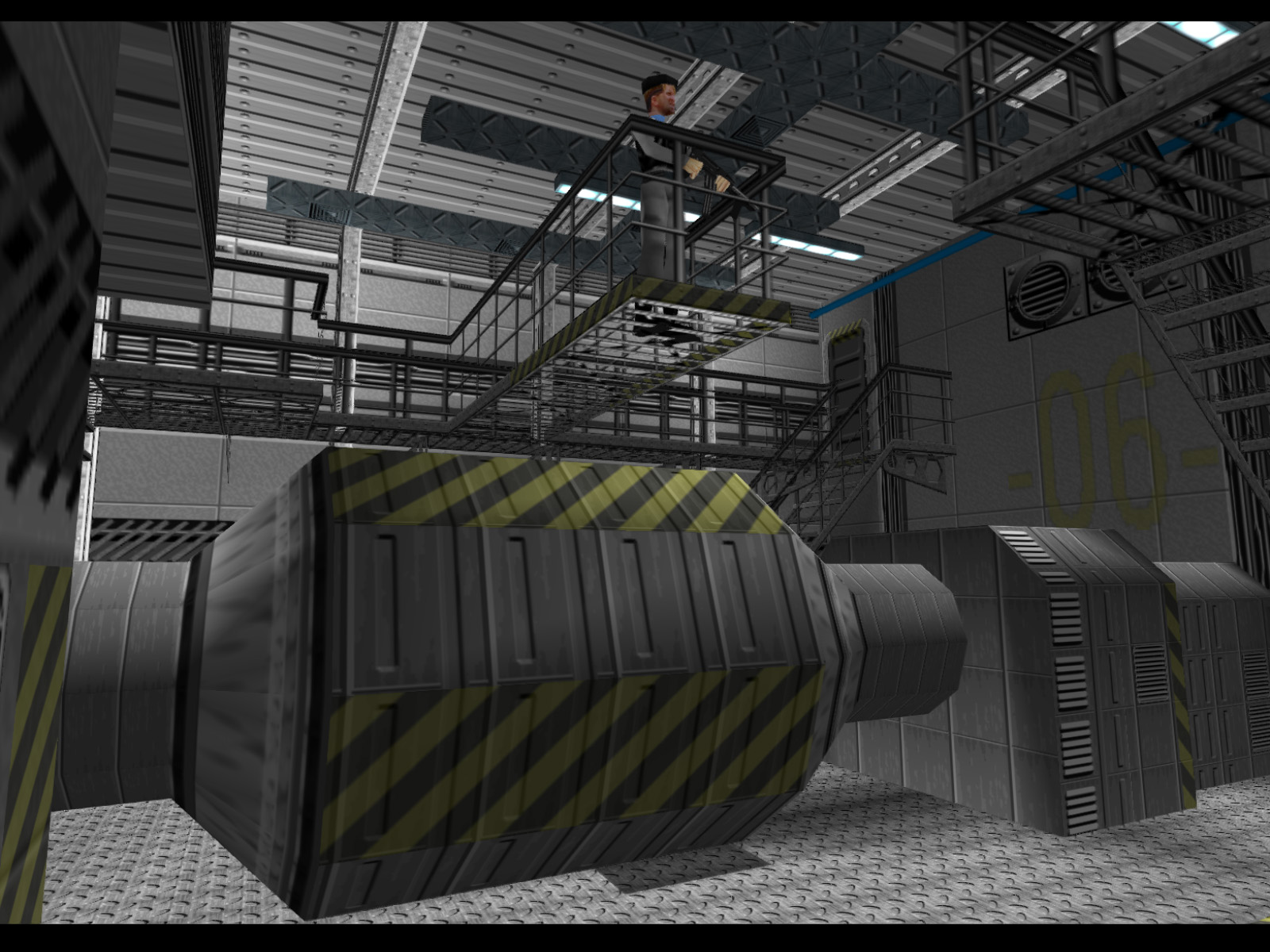 This is the lower level of the engine room where the Naval Officer is held hostage.