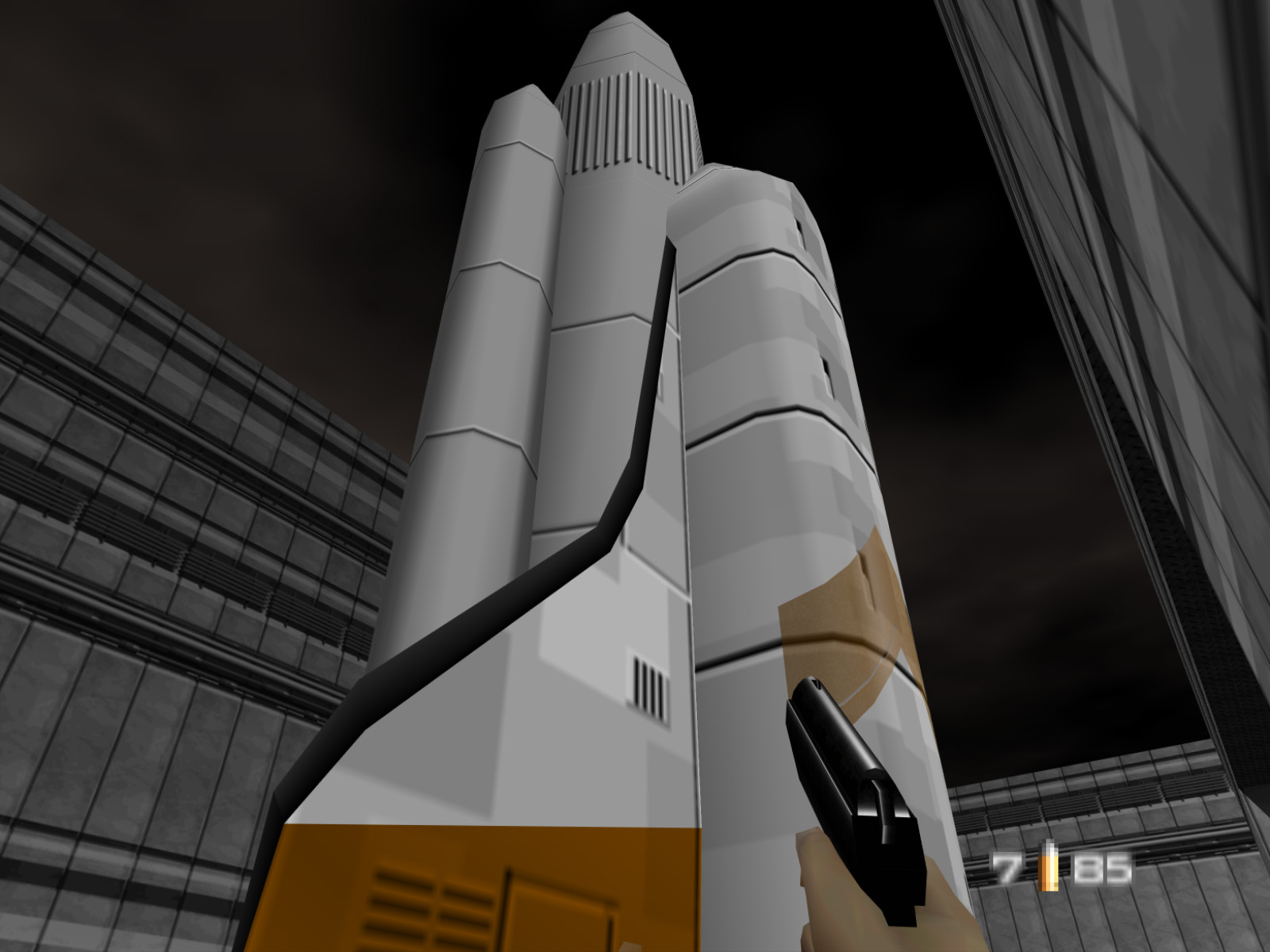 A fun fact about Aztec's development is that the level designer, Karl Hilton, saved making the Space Shuttle model for last. However, by the time he got to it, he had used up the texture budget. Hilton had to repurpose other existing textures in order to finish the Shuttle. (Source)