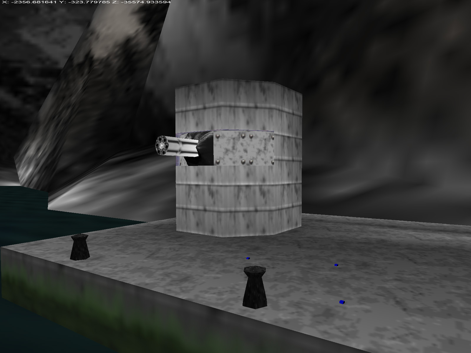 The island is epitome of GoldenEye's free-form design process. Duncan Botwood had a really cool idea and started to implement it. The island was modeled and so was the boat that would have taken the player there. Technical difficulties remained. How exactly would the boat ride work? Would it be automatic? How would the player embark and disembark? Ultimately the developers had more pressing issues to deal with and the concept fell by the wayside.