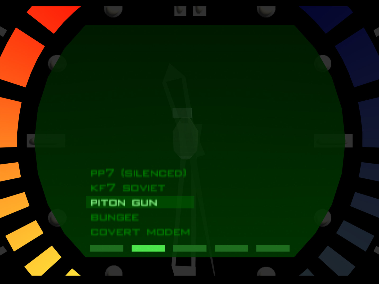 GoldenEye's text file LpropobjE.lng also contains the unused string "a piton gun." which could hint that the player was intended to collect it. Still, we cannot say for sure if Bond would have been given these items or would have had to collect them. The developers themselves may not have gotten that far when it came to their plans for these.