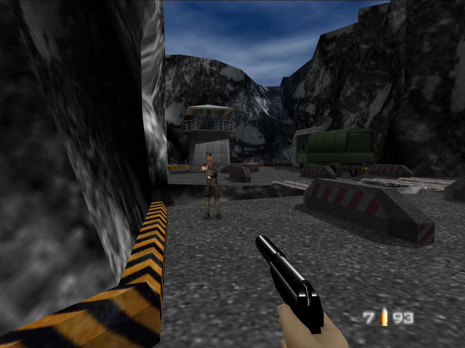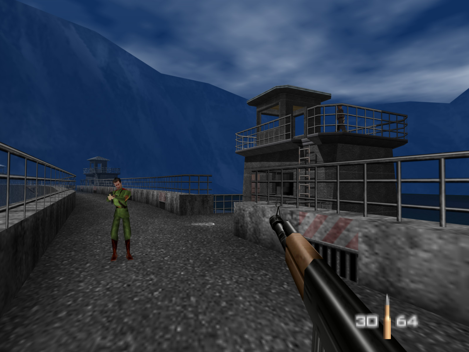 There is one lingering mystery — what was that massive drone gun meant for? One theory is that the player would have had to destroy it so it wouldn't shoot down Bond's plane when he escaped two levels later on Runway. It does sound like a plausible theory, although I don't know of any evidence to support it.