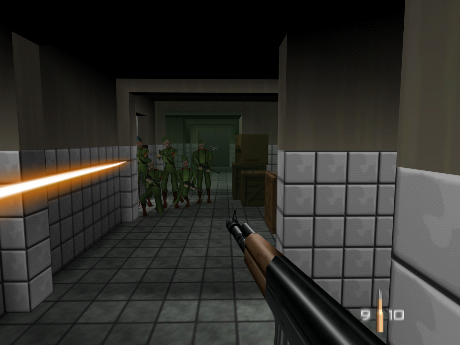 We know precisely which texture was used for the walls in prerelease Facility because the developers forgot to replace it in a few places. The GoldenEye developers did not have the luxury of an automatic texture replacement tool and had to manually go through every triangle and do it themselves. Understandably they missed some places including the walls in these screenshots.
