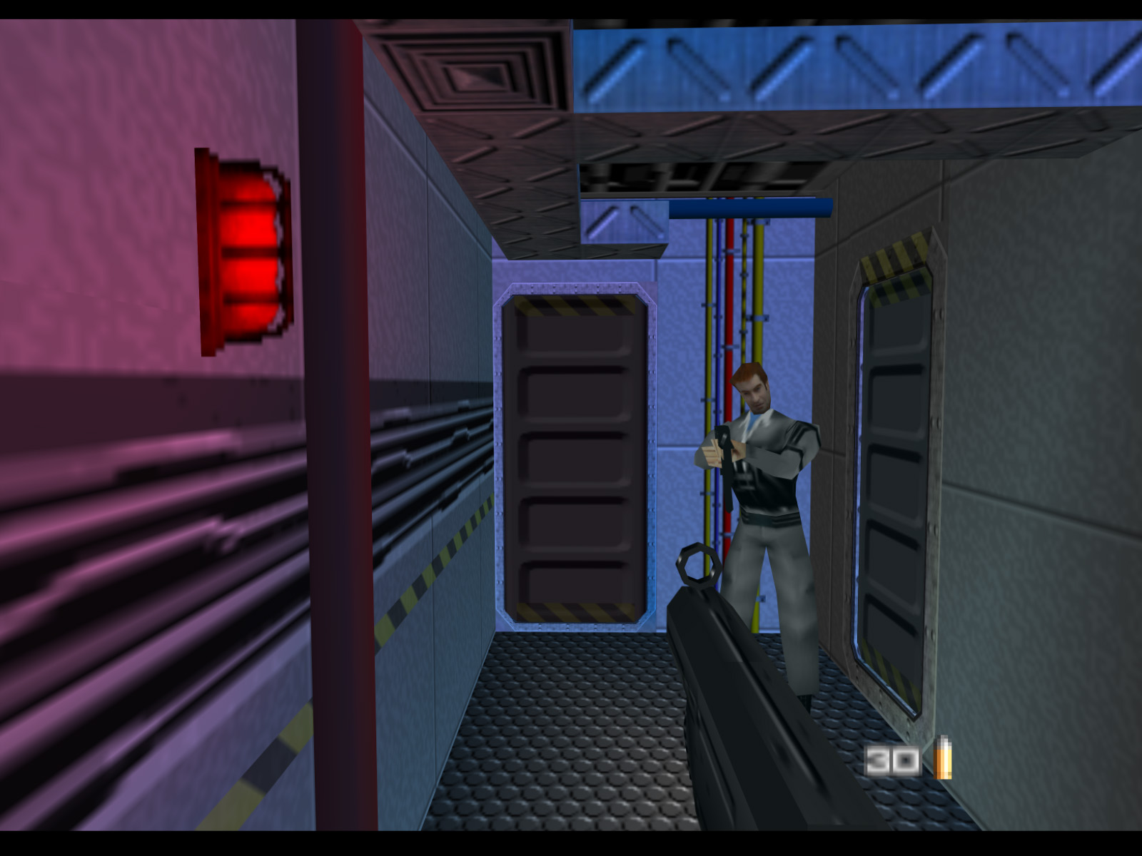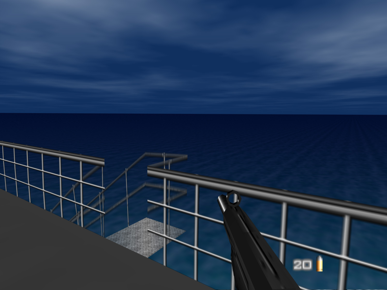Frigate's starting point was originally on the main deck. The catwalk down to the speedboat is present, though the railing for it is not. The developers likely just had not gotten around to moving the start point to the speedboat.
