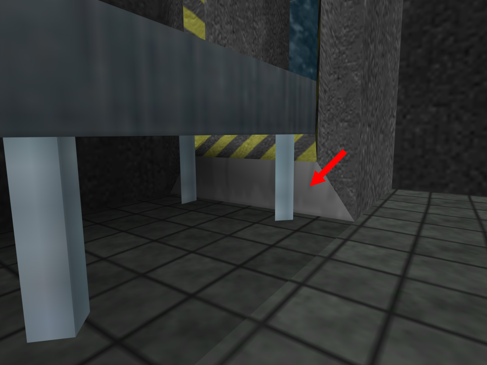 There are three places where the developers replaced textures but missed a few polygons. One quad under the conveyor belt uses texture 013F, a lighter gray concrete than the final texture. I think there is a good chance the walls of the loading bay area once used the lighter texture. The final texture, 0123, is a darker concrete commonly used in Facility.