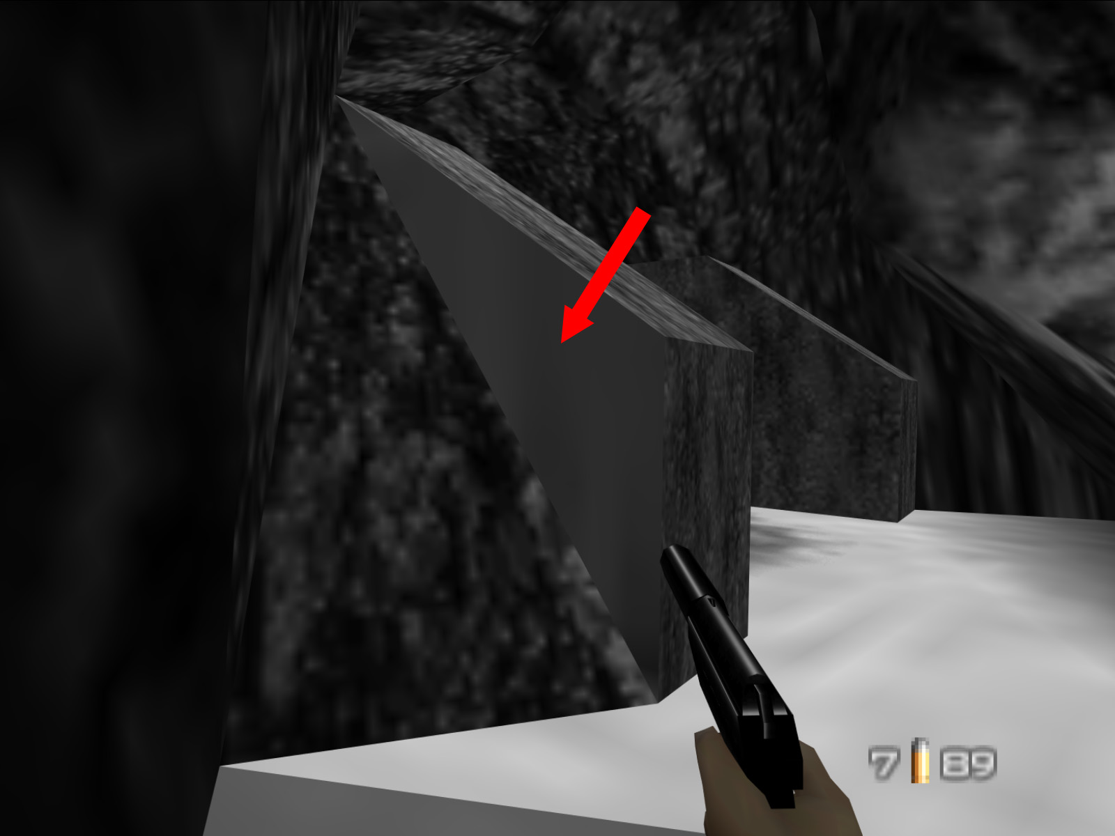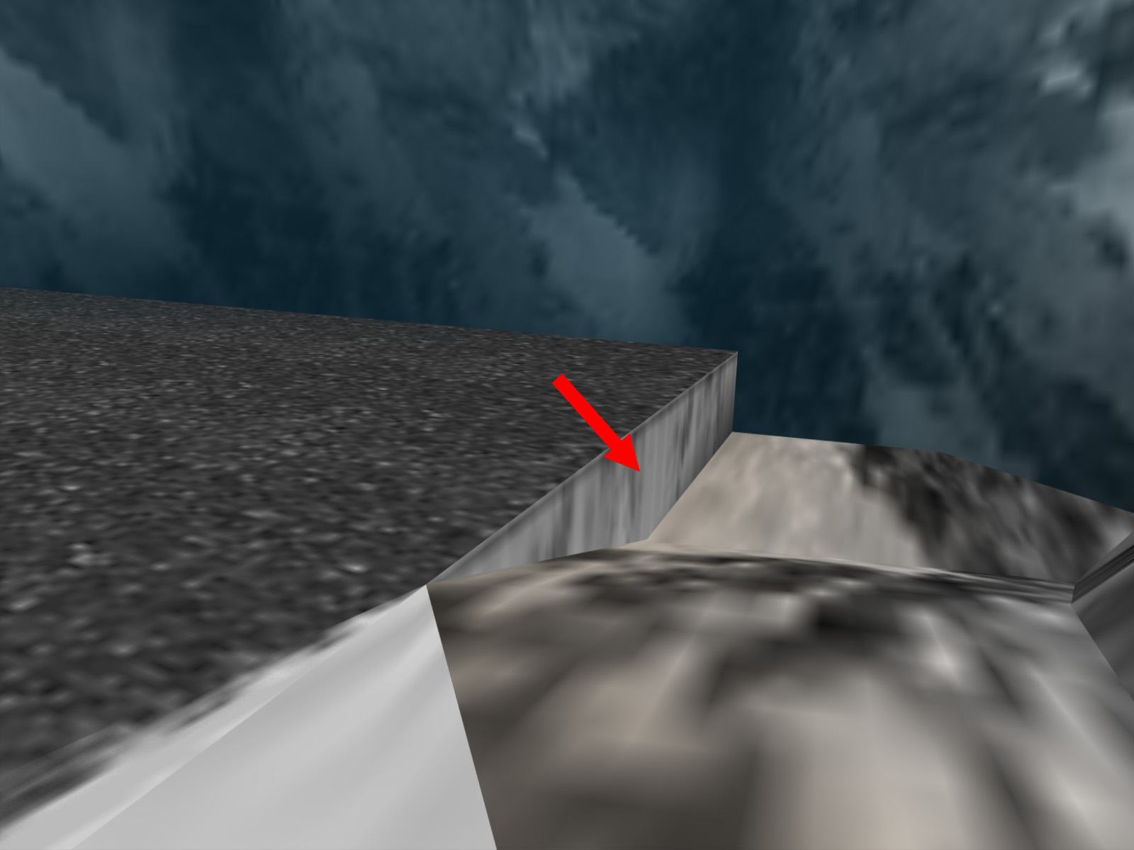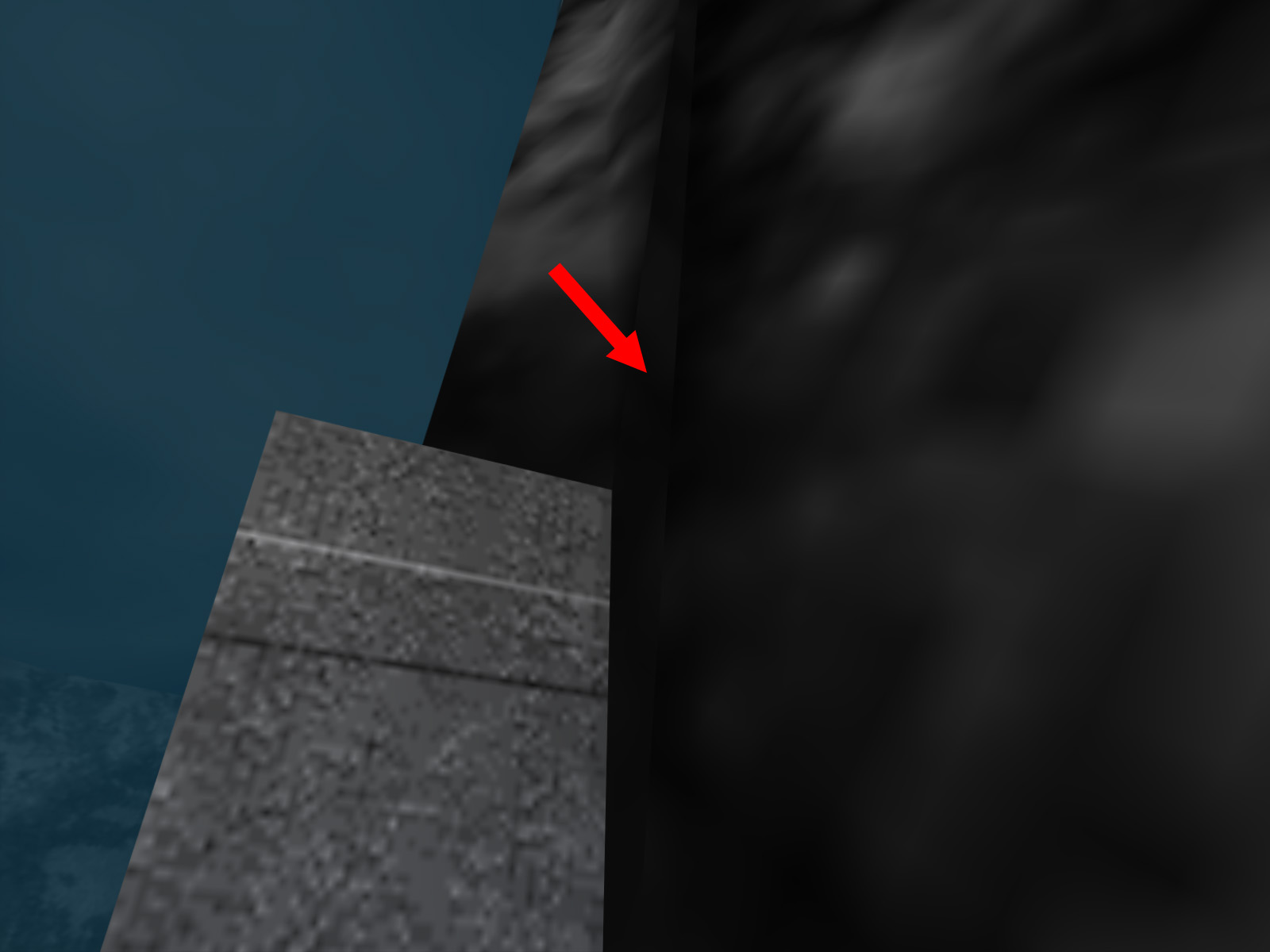 It is difficult to see, but this one long thin triangle in the cliffs uses a different rock texture from all the other cliffs. This texture is 03D5.