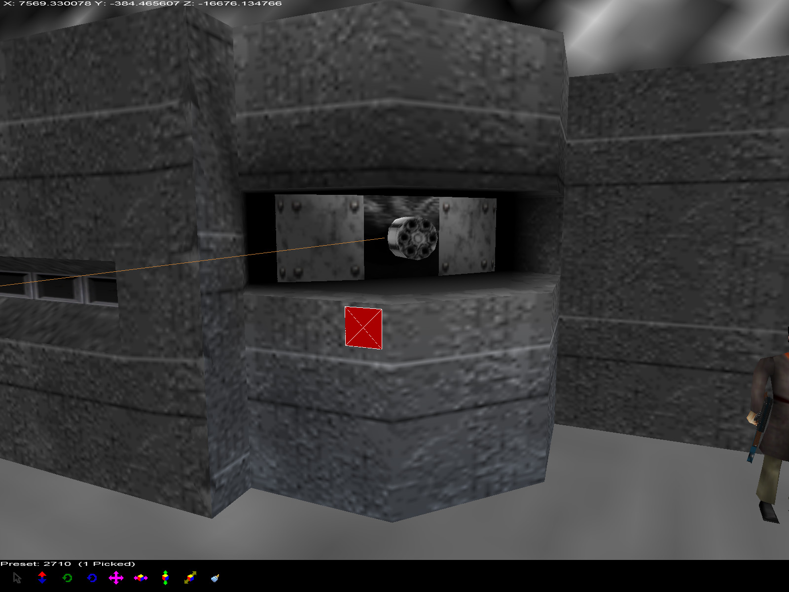 The outer sides of the tunnel's entrance also use the old 0133 texture. The other faces of the tunnel entrance got swapped to a new texture, 0121. In each of these cases a 64x32 pixel texture was swapped for a 64x64 pixel texture, showing how the developers tried to get as much texture resolution as they could out of the Nintendo 64.