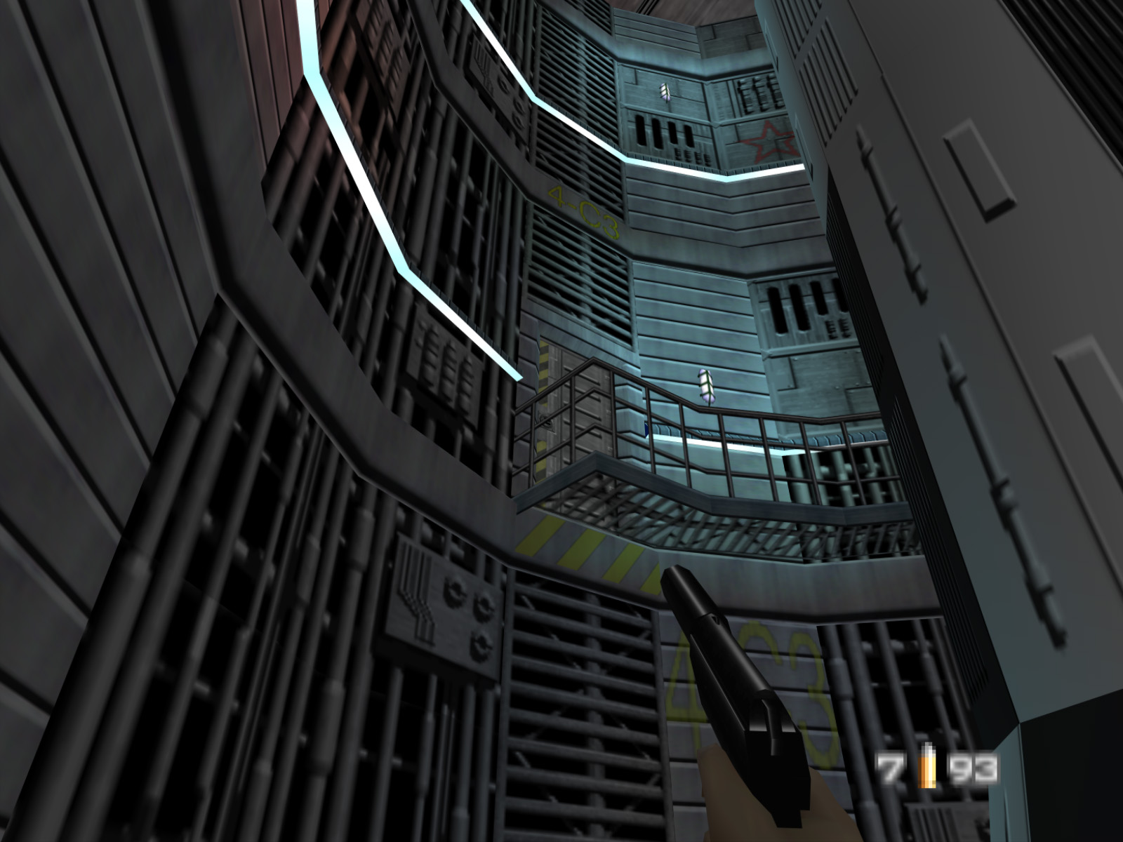 Stepping through the door takes the player into missile silo 4-C3 with this curved catwalk.