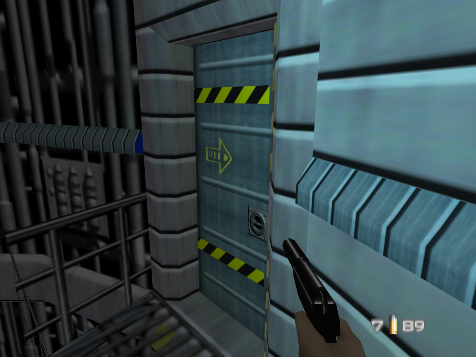 The vent has no collision, but thanks to GoldenEye Setup Editor we can add clipping and give an idea of what it would have been like to start Silo here.