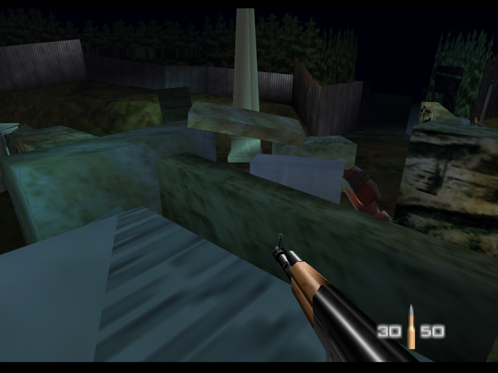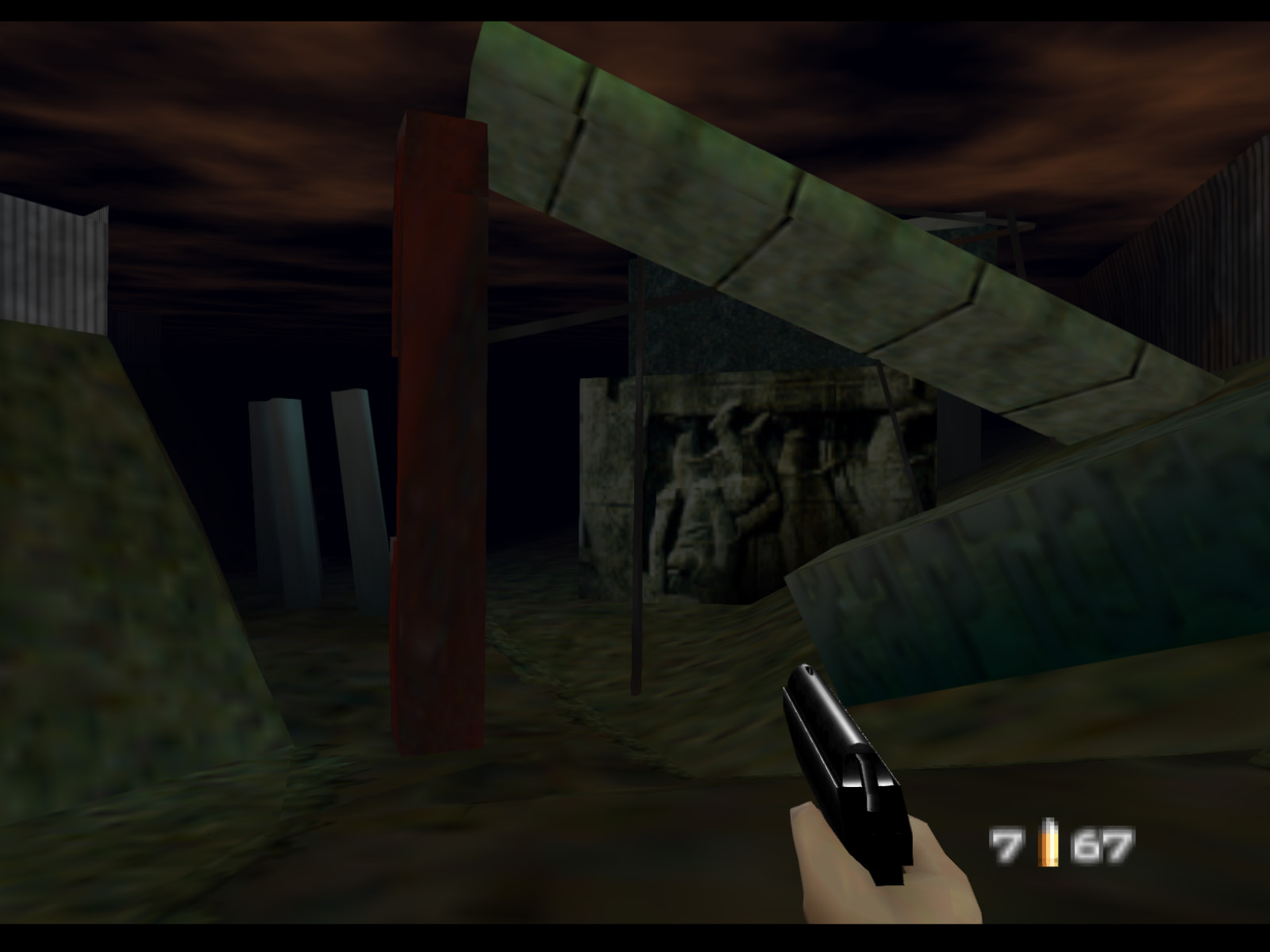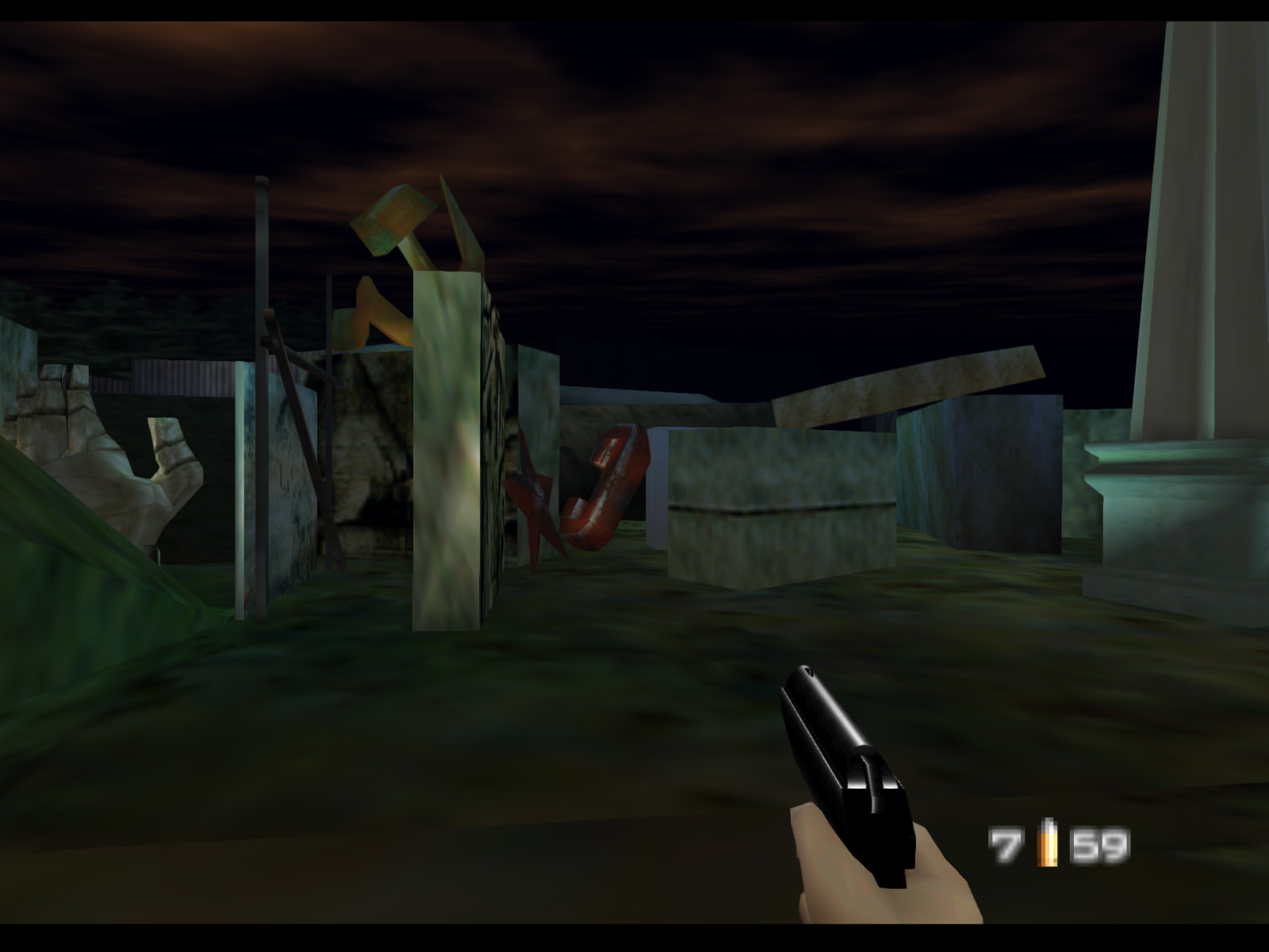 Running ahead takes you to the first cluster of derelict statues. Since GoldenEye was released players have complained about getting lost among the fallen monuments. The level actually isn't as open as some probably remember. Try to maintain your sense of direction and after a few playthroughs you will start to recognize landmarks.