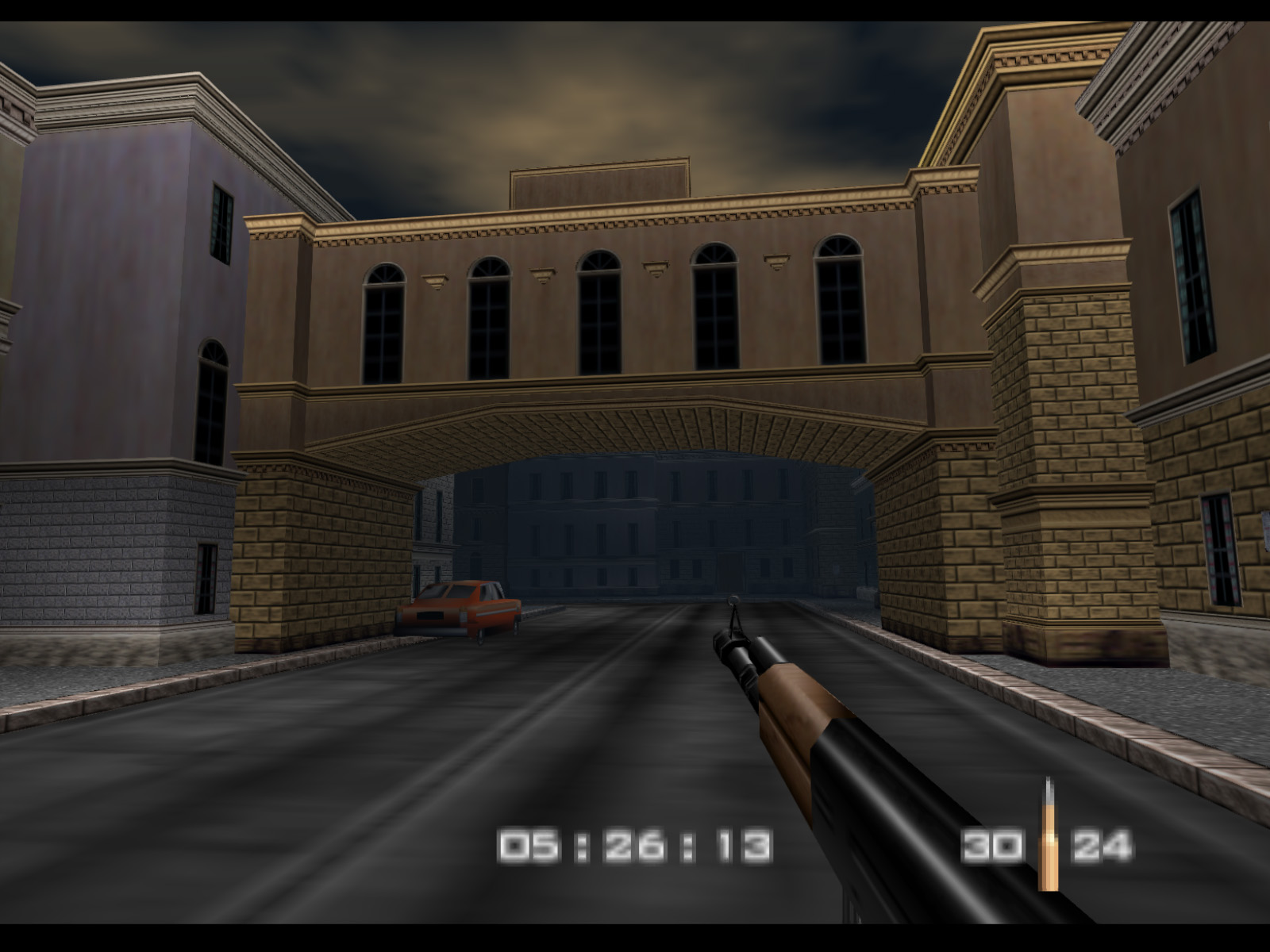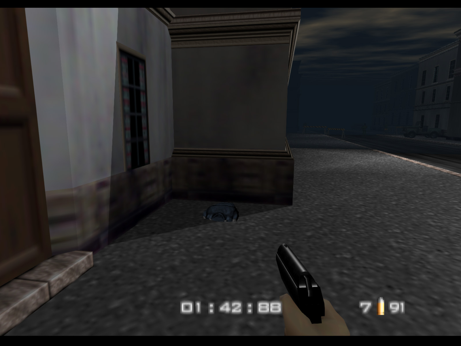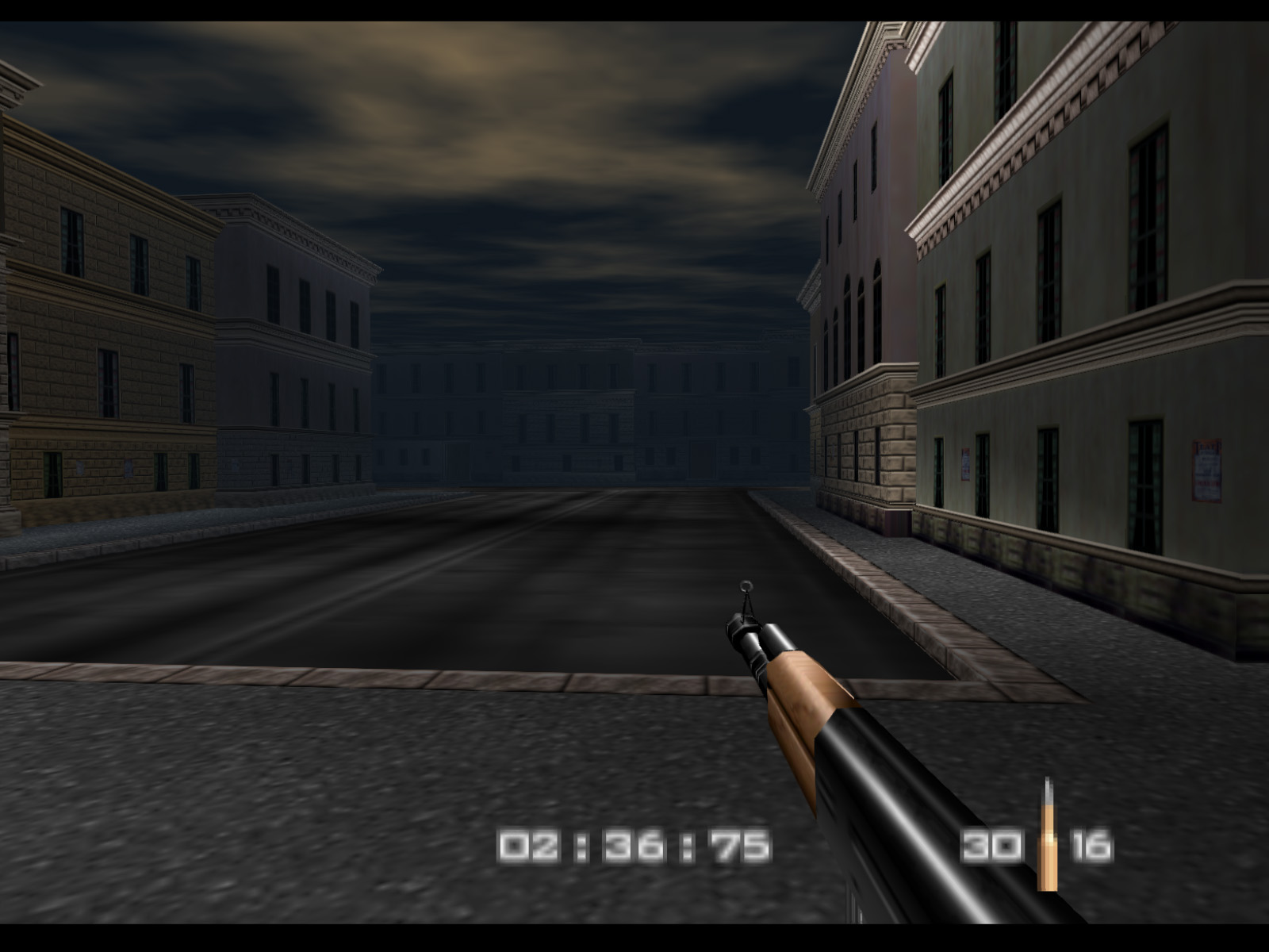 Streets begins in the same alleyway where Archives ended. On Agent difficulty you are given five minutes to finish the level before Ourumov escapes with Natalya. On Secret Agent and 00 Agent you have three minutes to meet with Valentin so that he will delay Ourumov and give you more time.