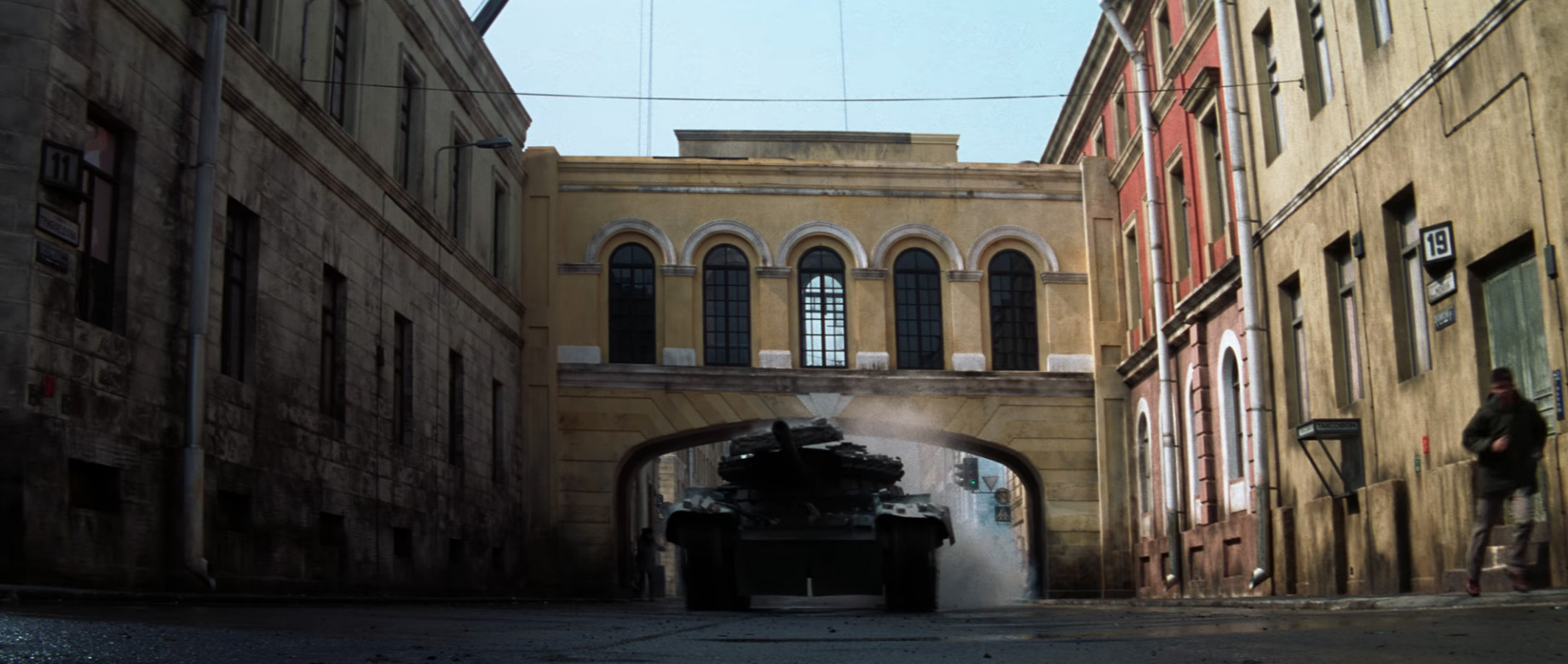 After the alley it's time to get back onto the main streets. This building that spans over the street was faithfully recreated from the movie.