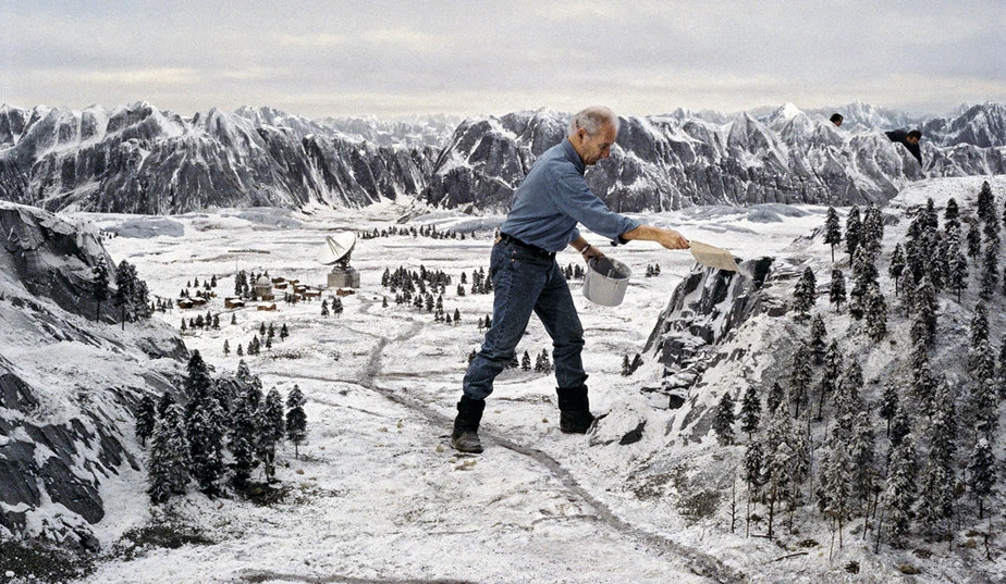GoldenEye's developers used the impressive miniature set of Severnaya created for the GoldenEye movie as reference. In the picture below the lead artist for GoldenEye's miniatures, Derek Meddings (1931-1995), puts the final touches on the model.