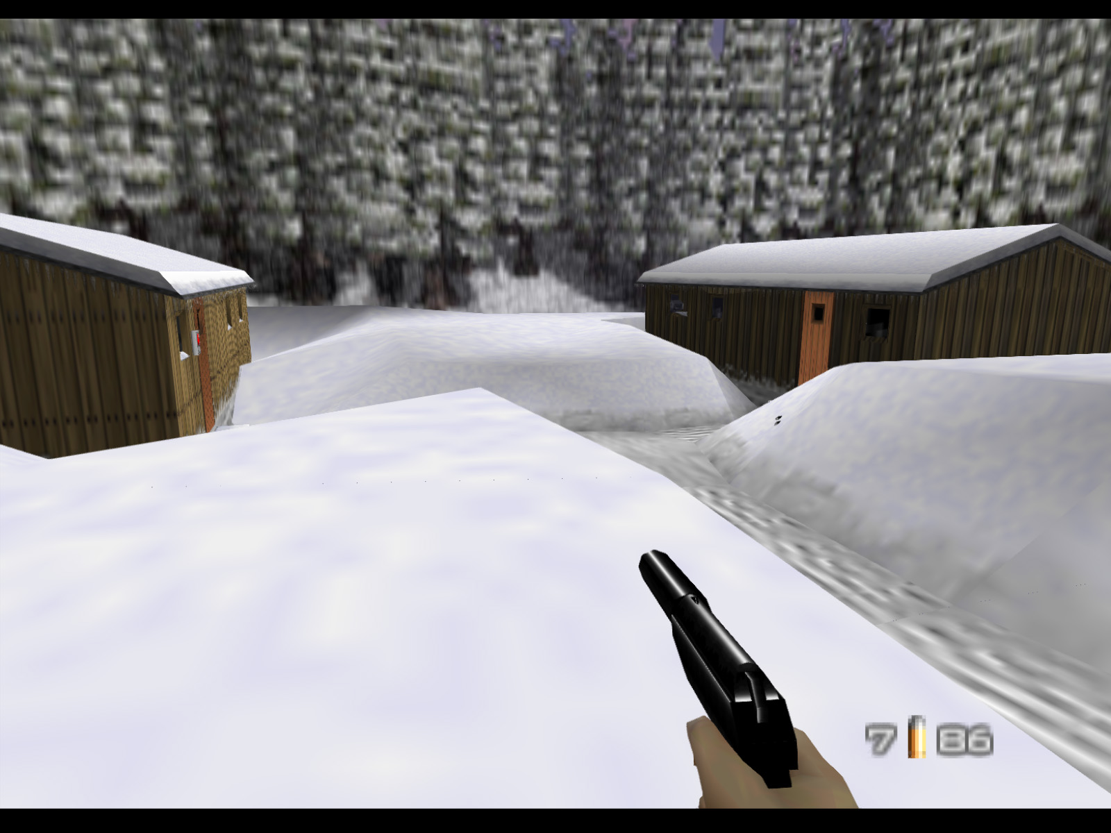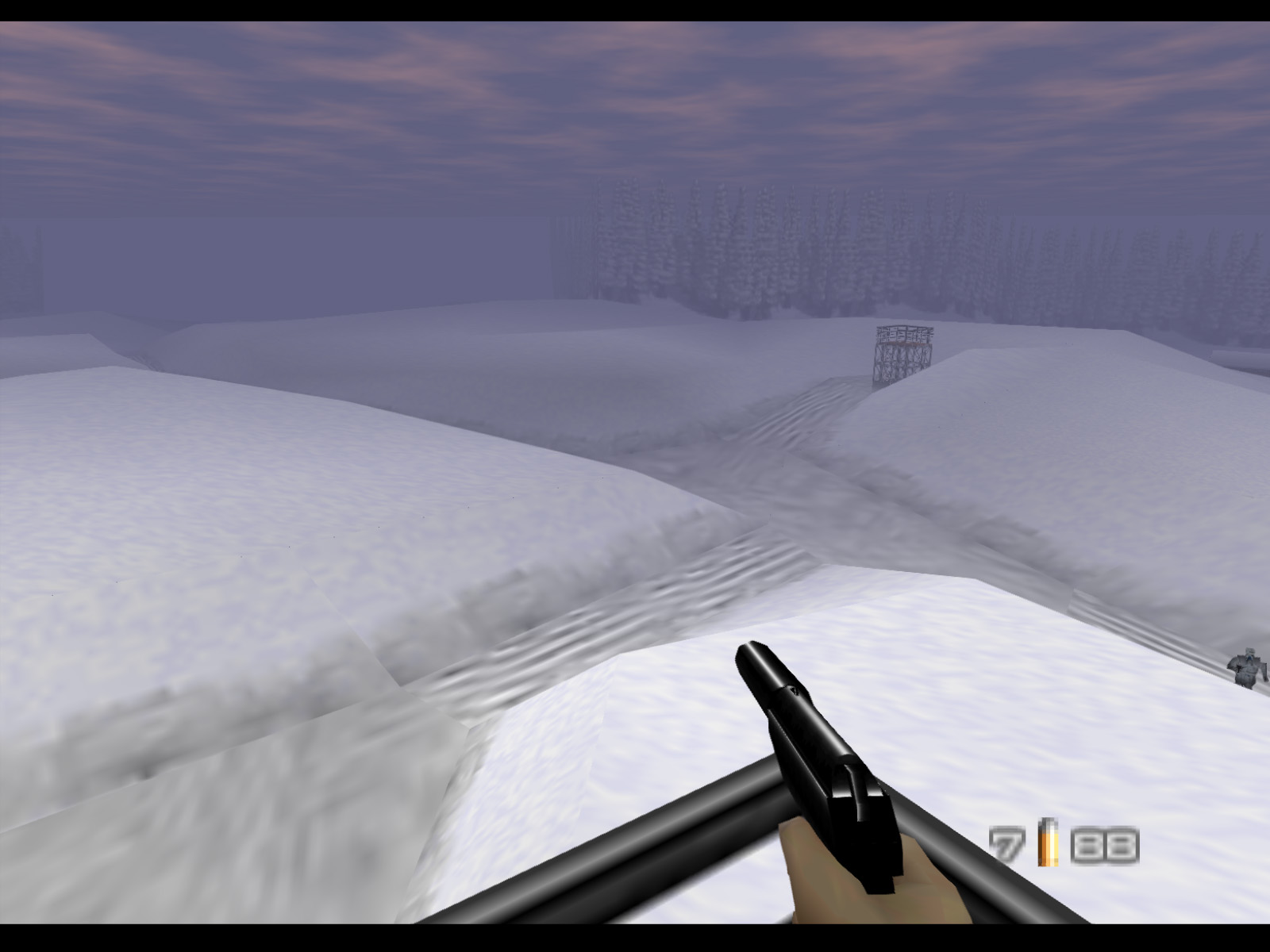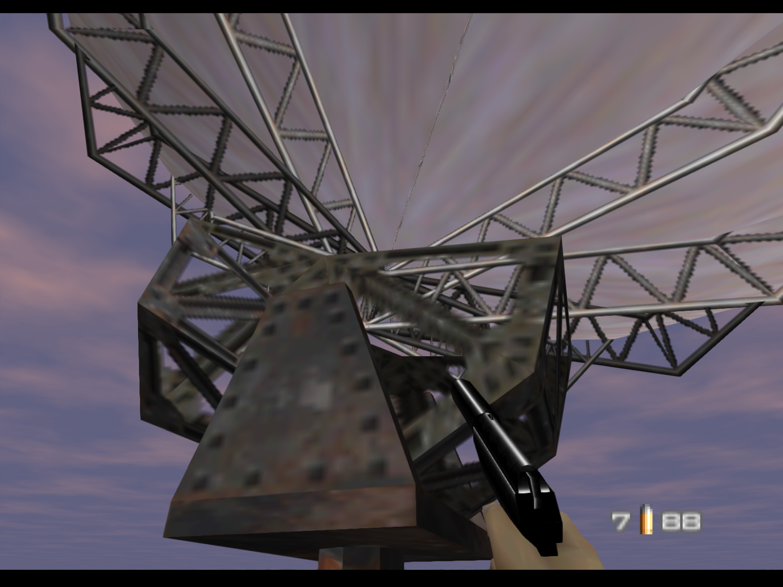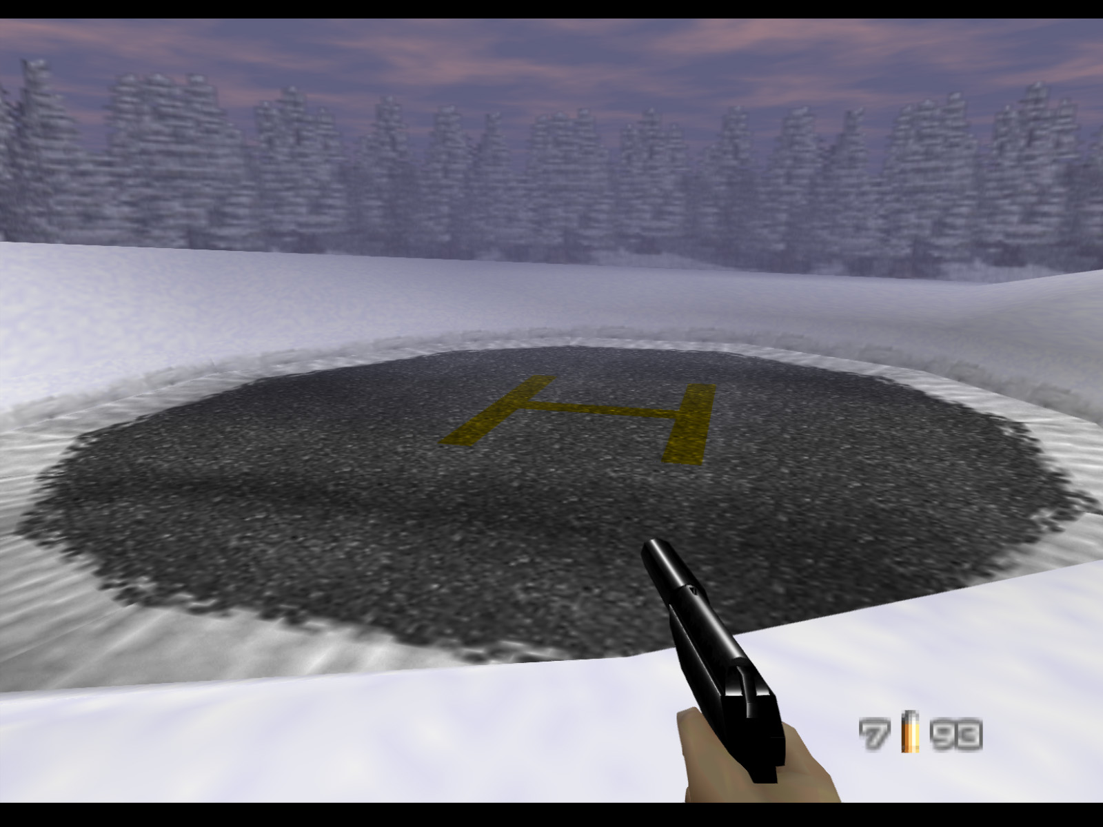 Surface is the most spatially open level in GoldenEye — a vast expanse of tundra dotted with buildings and crisscrossed by sunken paths. The installation encompasses an enormous communications dish, an observatory, a helipad, a cooling tower for the bunker, sniping platforms, and eight cabins grouped in pairs. The primary entrance to the bunker is located by the helipad, but for this mission the player is instructed to infiltrate through the cooling tower. The level's overall dimensions are about 316 x 342 meters.