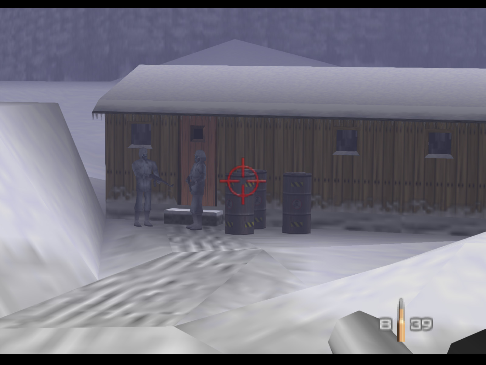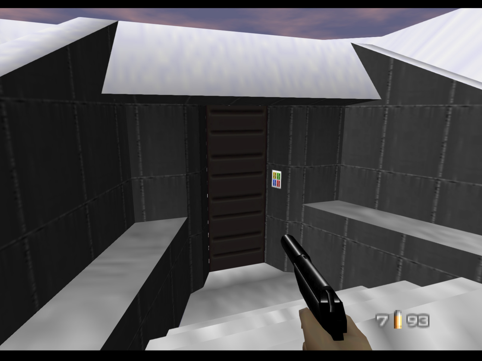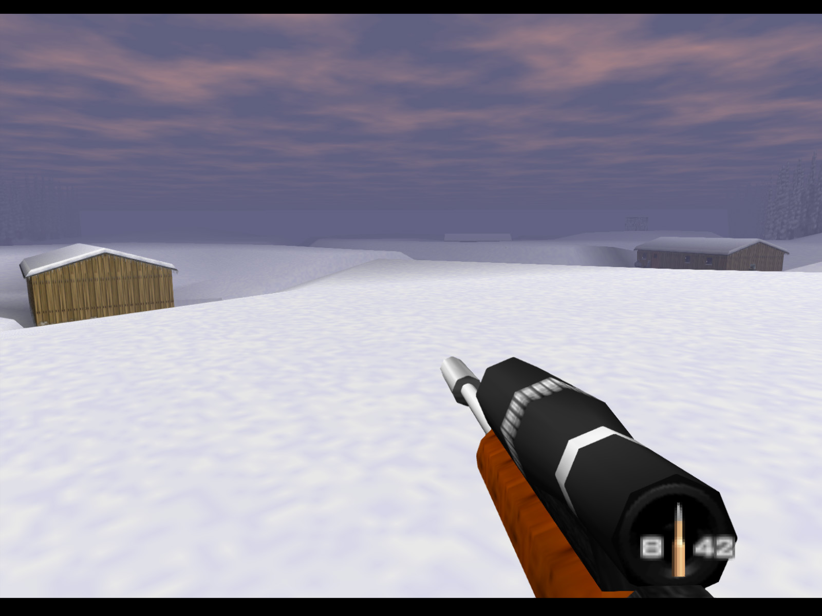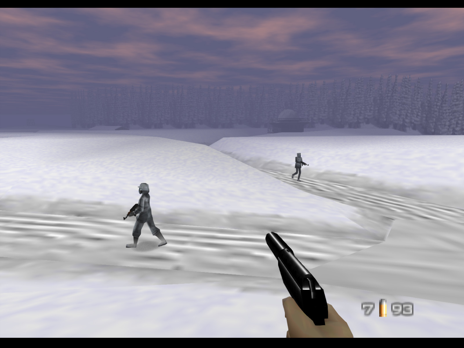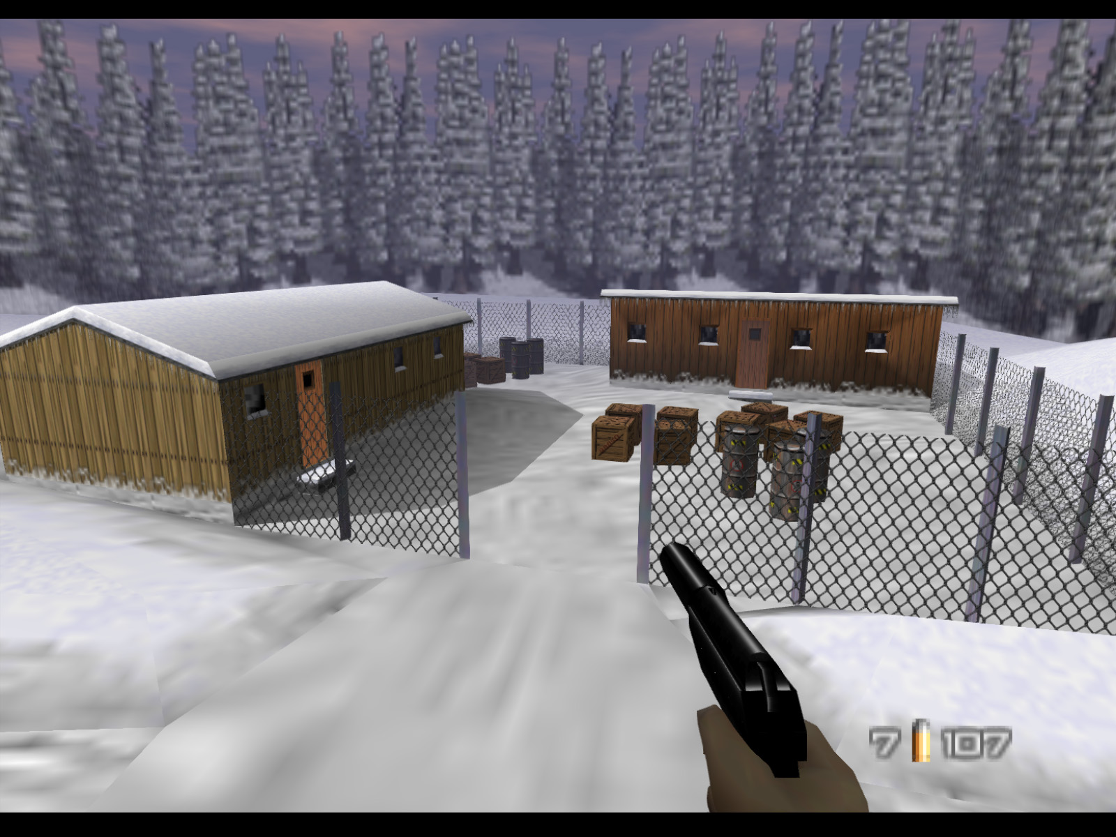 Surface is the most spatially open level in GoldenEye — a vast expanse of tundra dotted with buildings and crisscrossed by sunken paths. The installation encompasses an enormous communications dish, an observatory, a helipad, a cooling tower for the bunker, sniping platforms, and eight cabins grouped in pairs. The primary entrance to the bunker is located by the helipad, but for this mission the player is instructed to infiltrate through the cooling tower. The level's overall dimensions are about 316 x 342 meters.