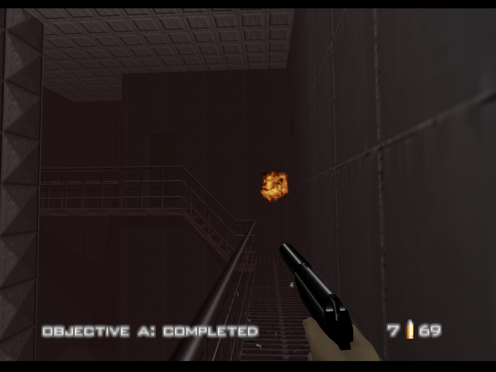The last CCTV camera can be found in the communications building watching over this catwalk. Destroy it to complete Objective A.