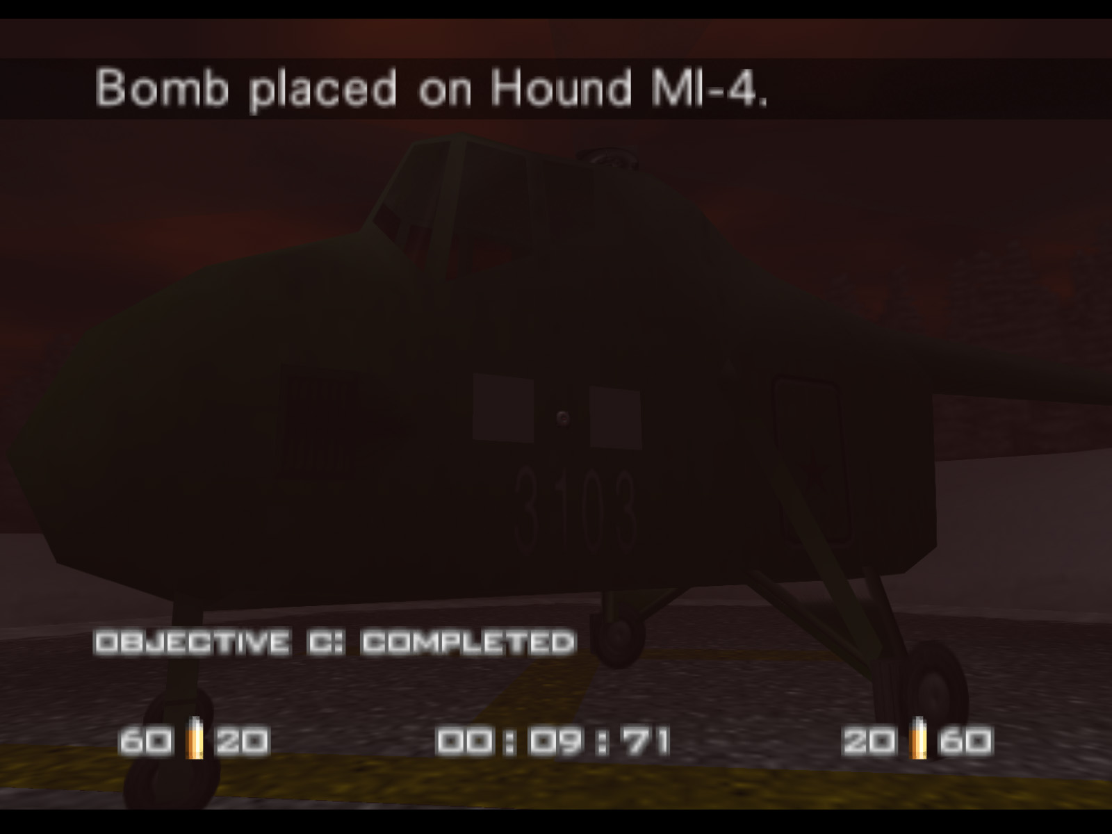 It's interesting that Q gives you a Remote Mine that acts like a Timed Mine with ten second fuse when placed on the helicopter. Wouldn't it make more sense to give the player a Timed Mine with an extended fuse? My only thought on this is perhaps the objective was scripted at a time when the Remote Mine existed in the game, but the Timed Mine did not.