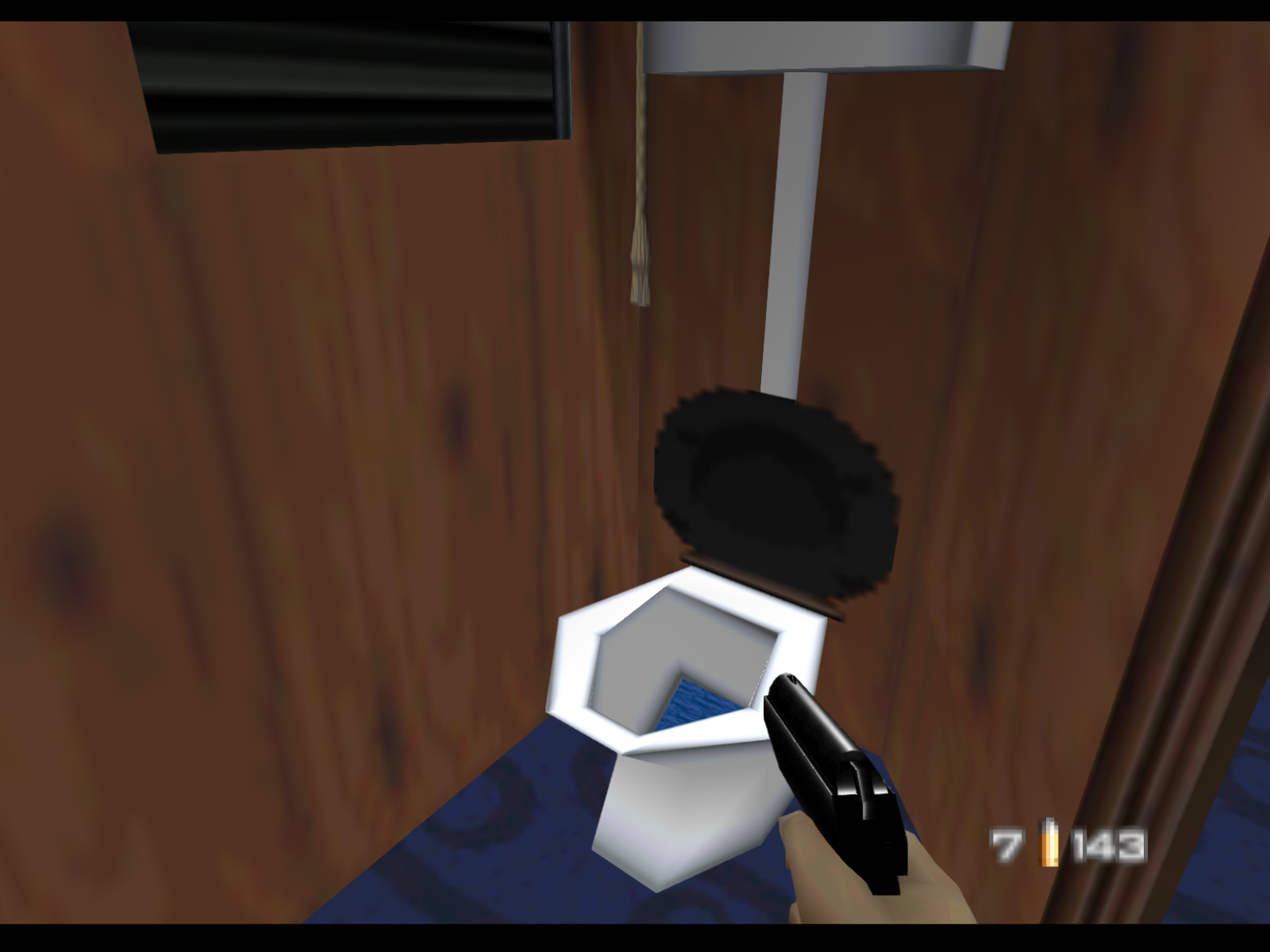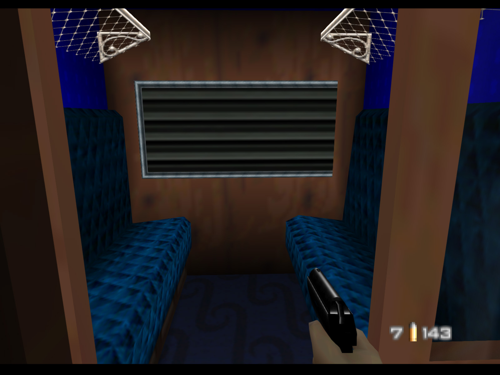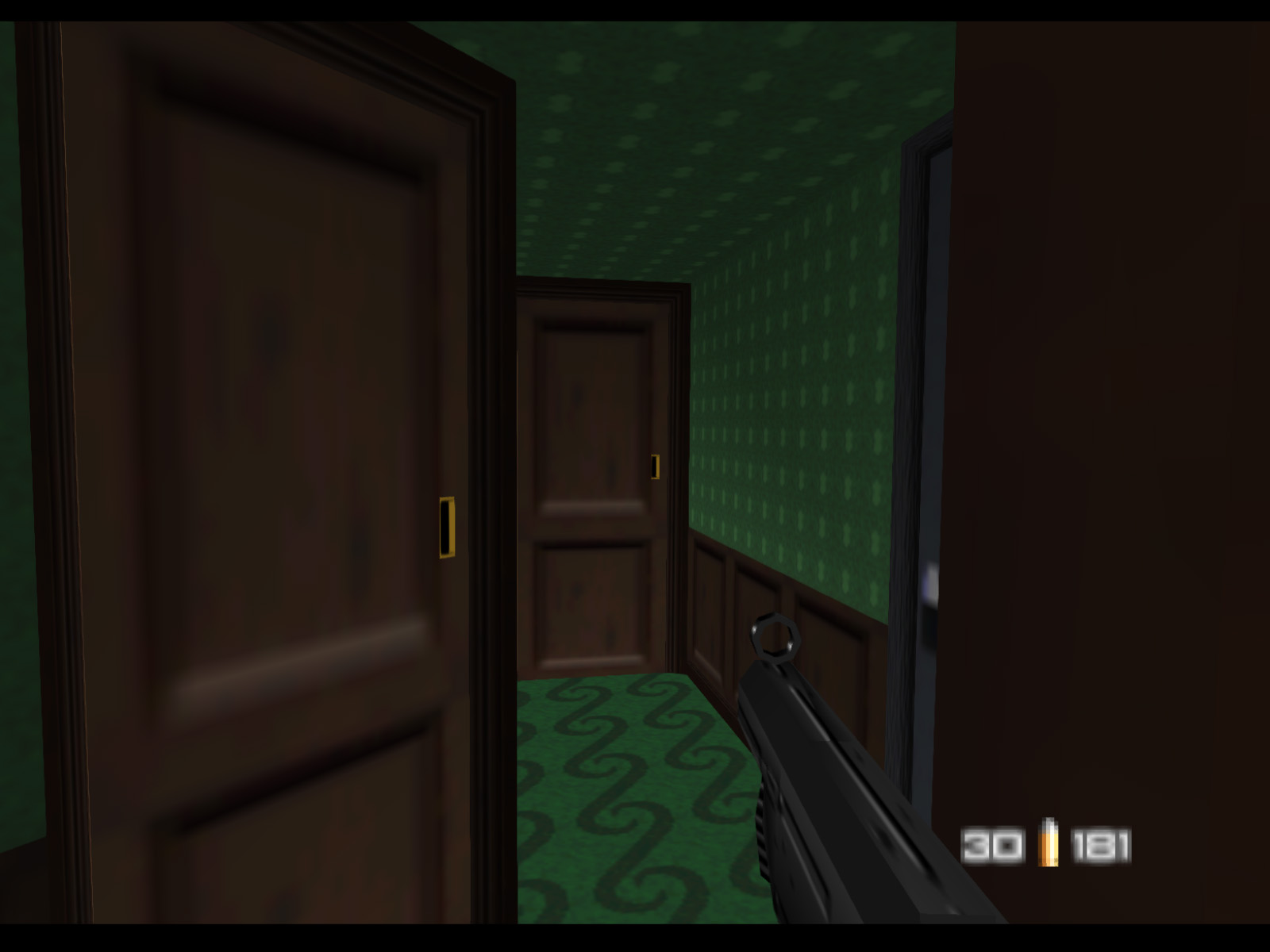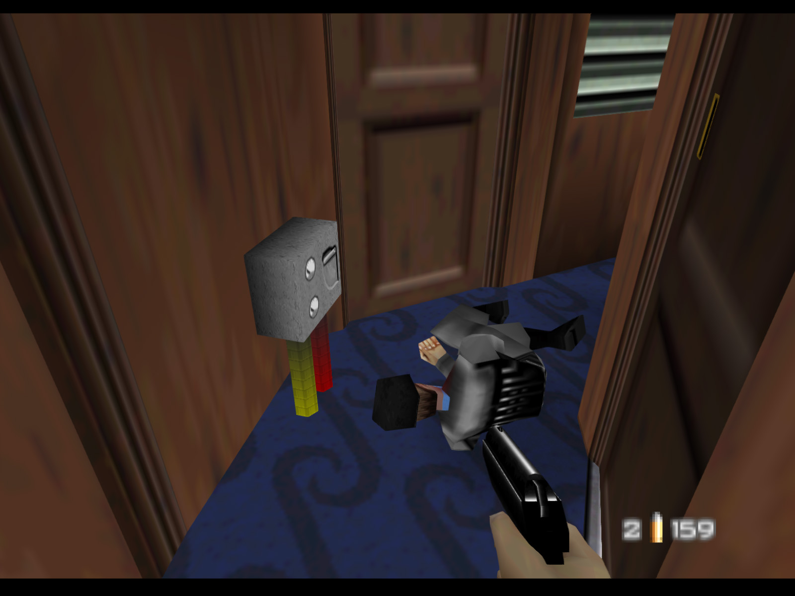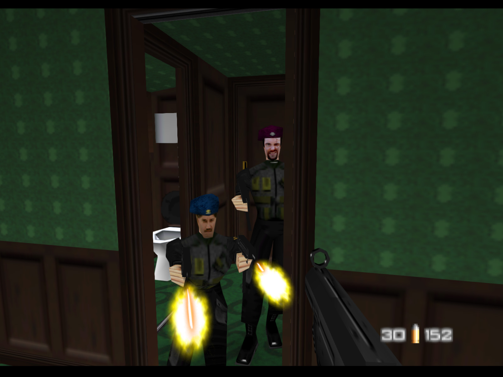 This next part is tricky. There is a little hall flanked by two lavatories. Both are occupied by Janus Special Forces and they will try to ambush you. Be ready to back up and mow them down.
