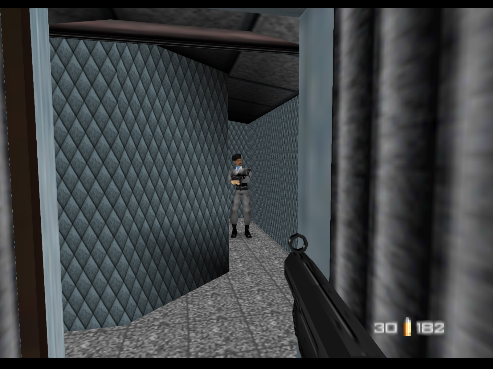 This surprised Janus Special Forces didn't expect Bond to barge into his locked cabin! Sometimes this enemy will have a D5K, other times he will have dual ZMGs. Eliminating him now will prevent him from coming up from behind later.