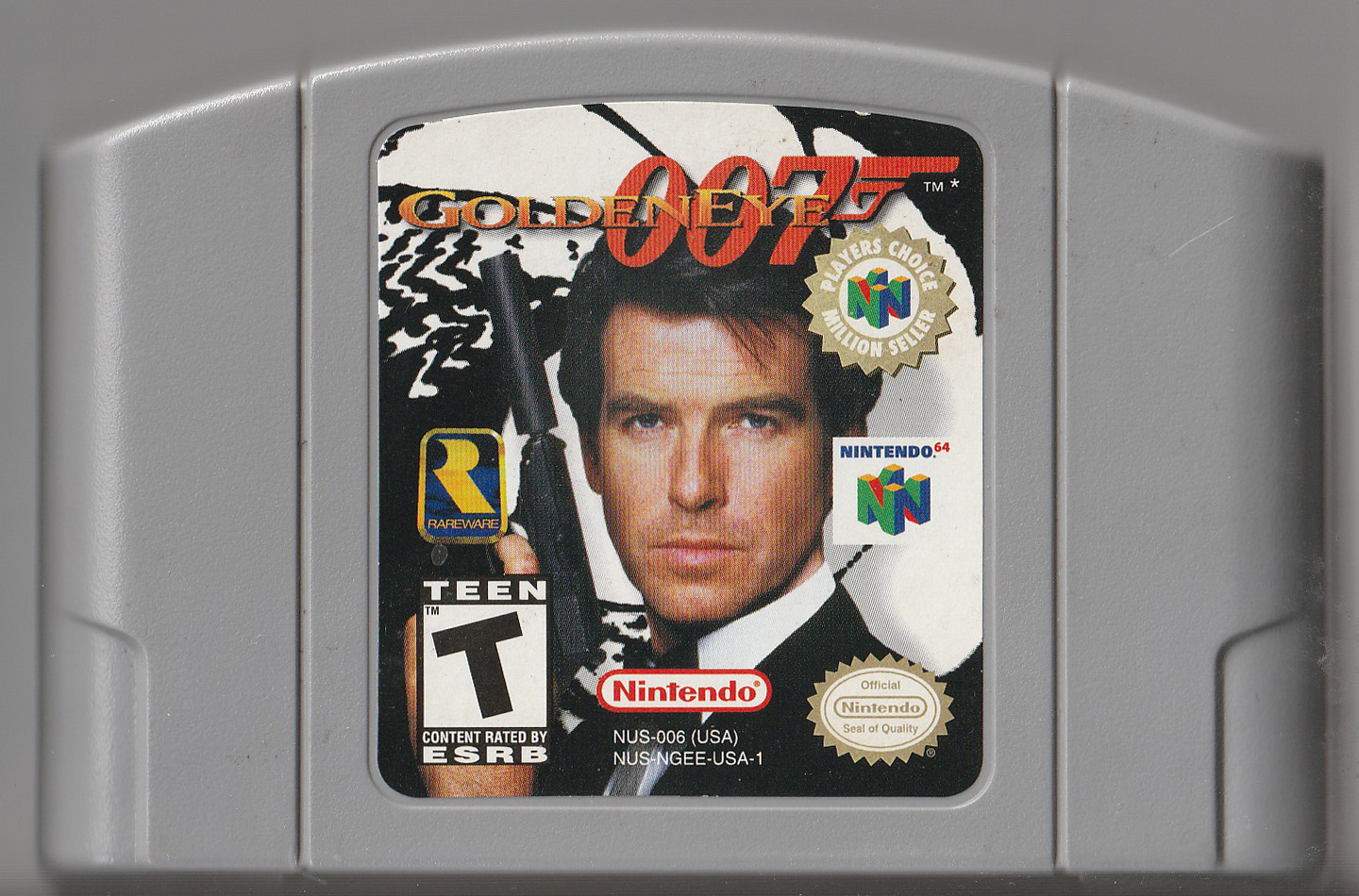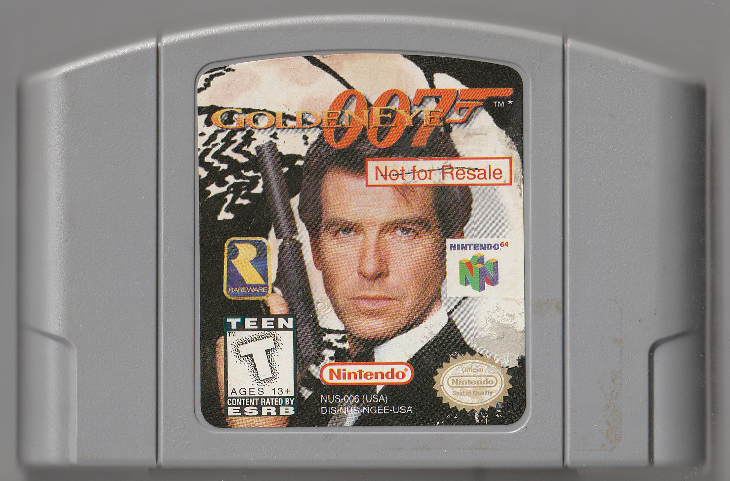 This is my original GoldenEye cartridge probably purchased in 1998. I think it was bought at a store of the now defunct company CompUSA. If not there it was probably bought at Toys "R" Us.