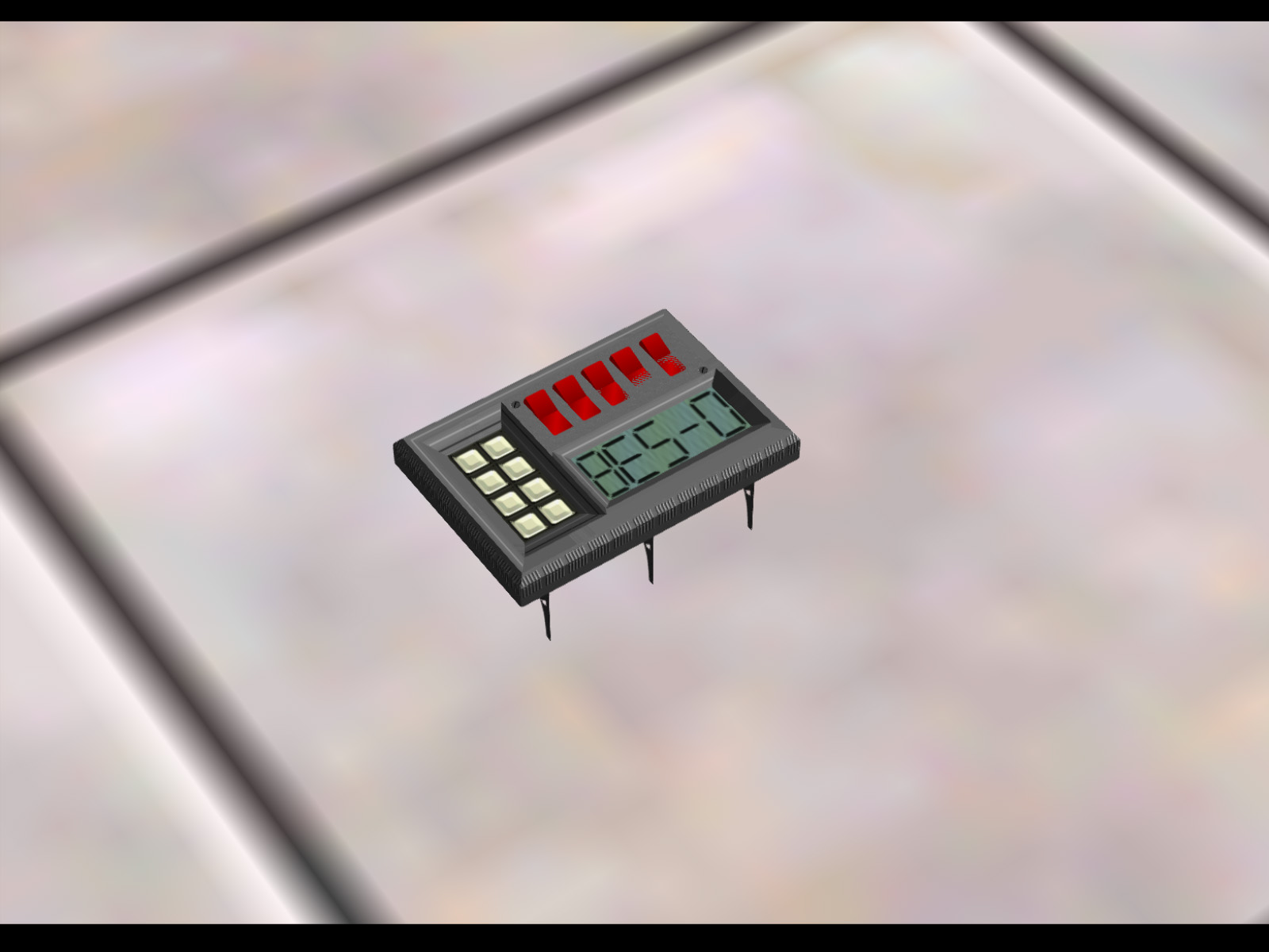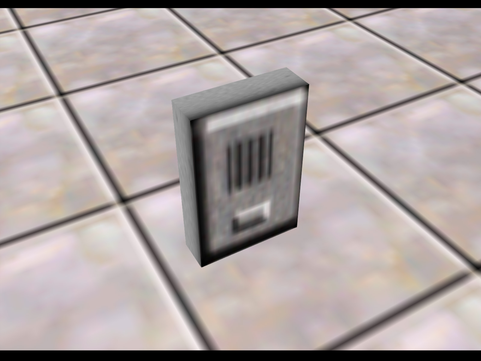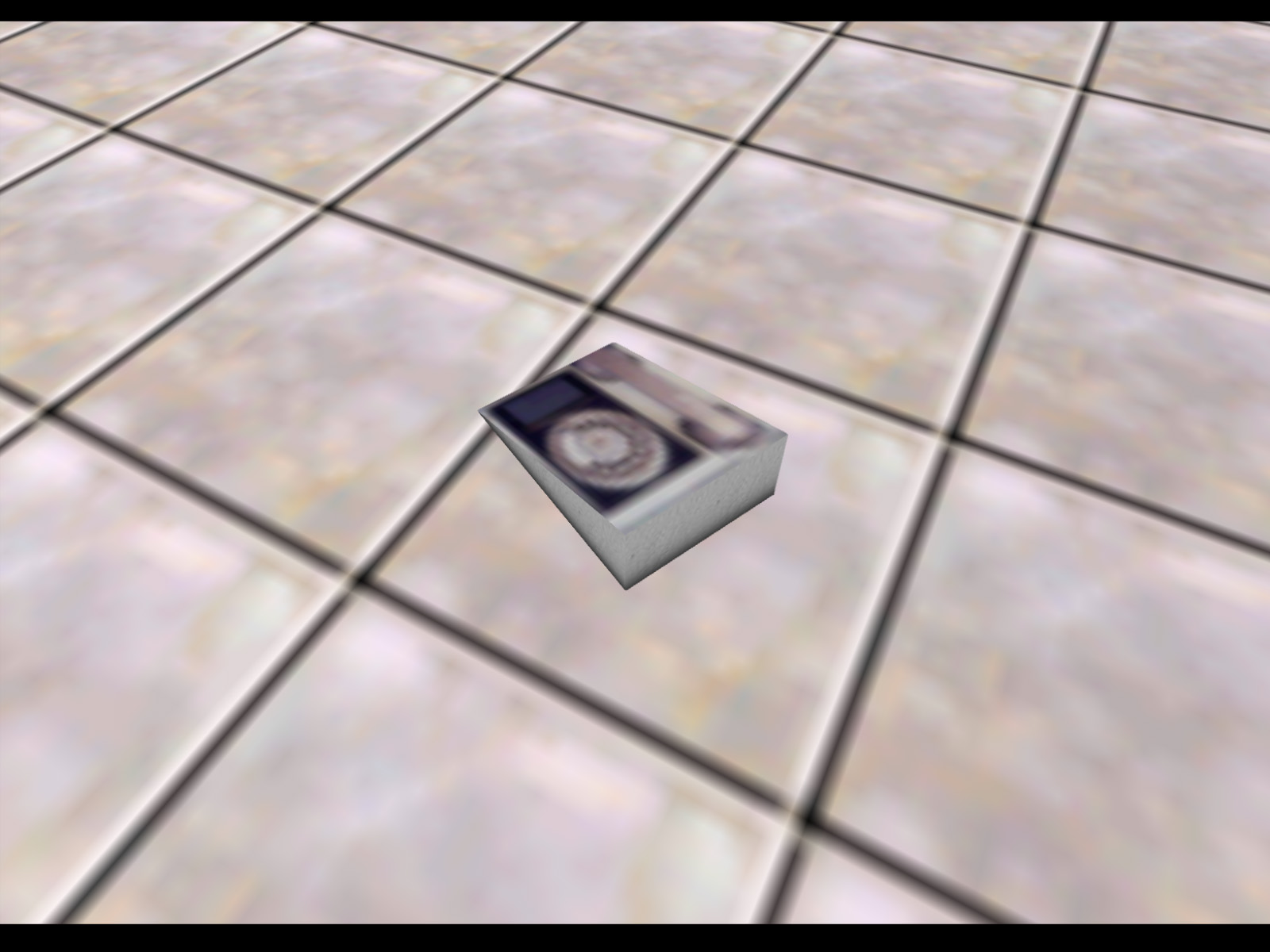 This is the very first model in the game's model list. It's an alarm with two small bells on the top. It has no polygons on the back. The texture on the front of this alarm is actually used as the back for the other alarm, but since the other alarm is always up against a wall, you never see it.