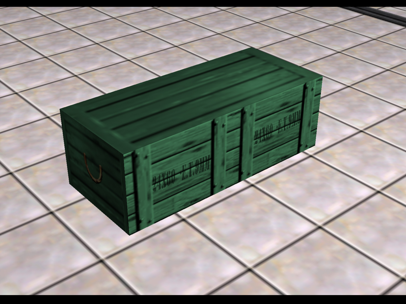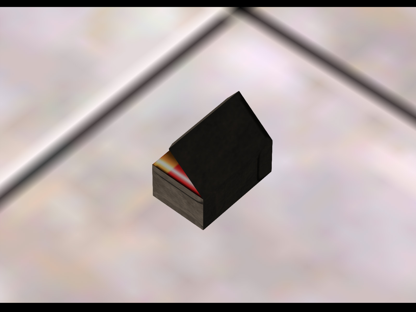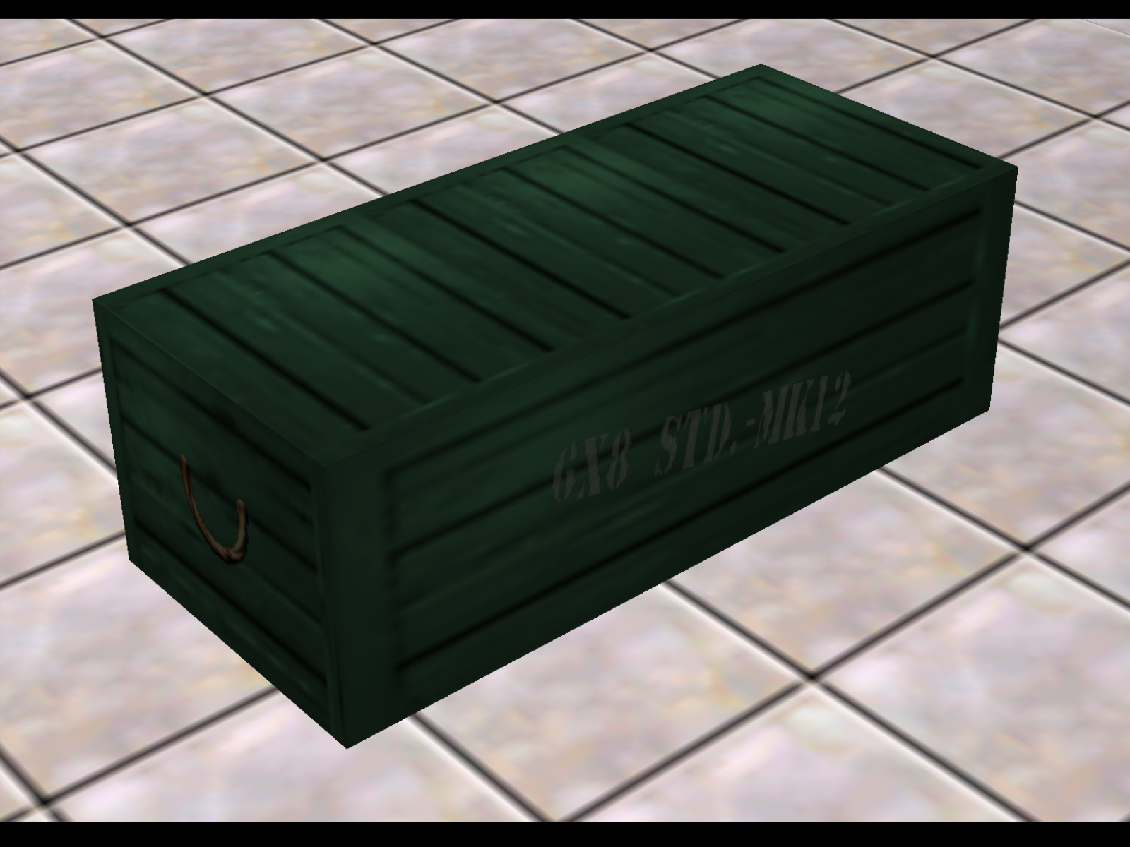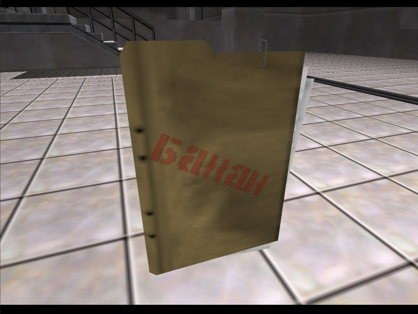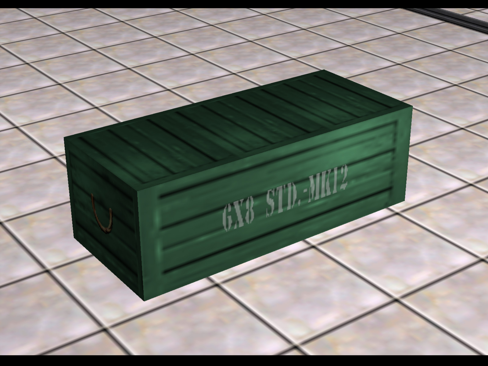 Same model as the previous gray briefcases, but oriented to stand upright by default. This was actually implemented as a working object. If you pick it up you will find it in your inventory. If you then equip and use it, it will give you two Throwing Knives, two Grenades, and a Sniper Rifle with eight rounds of ammo. It is not known where this was meant to be used.